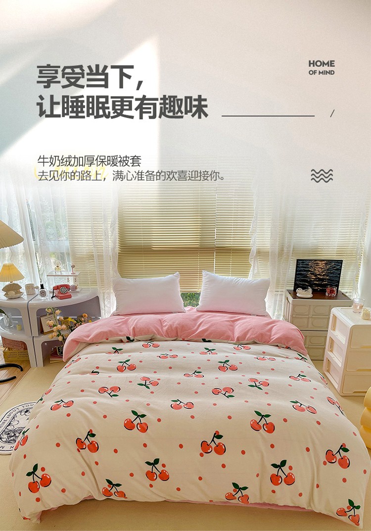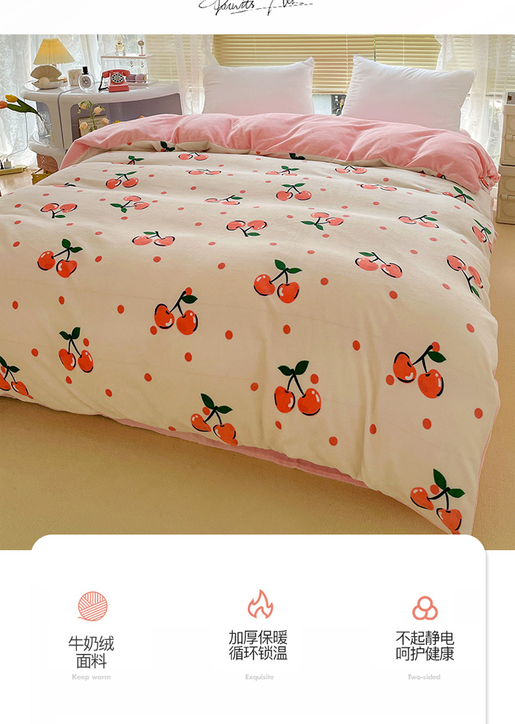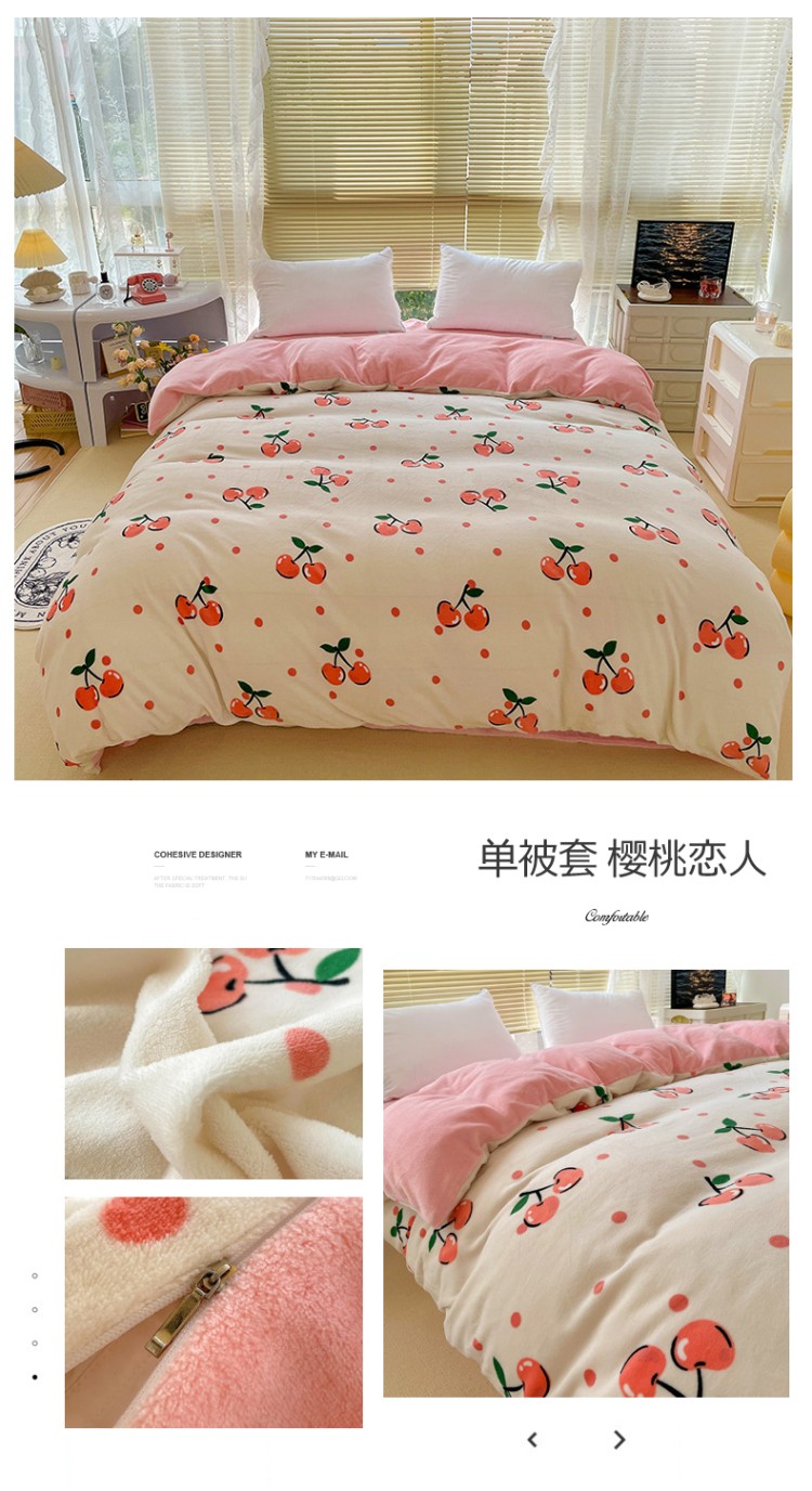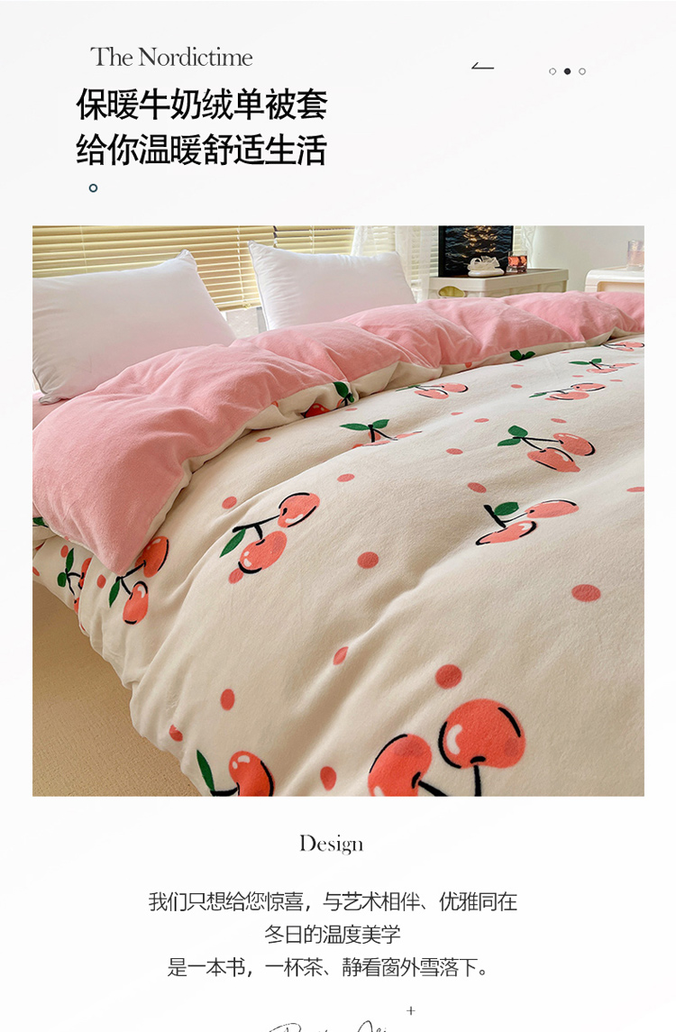 商品名称:慕尚 2022新款田园花卉类牛奶绒单被套 樱桃恋人