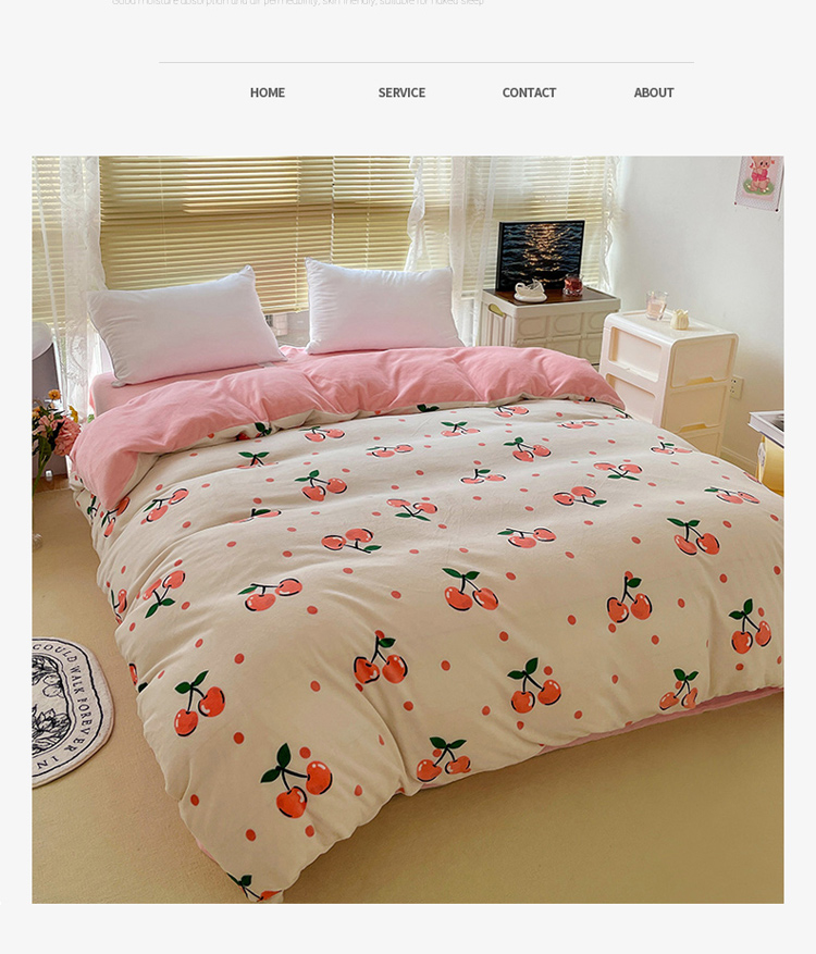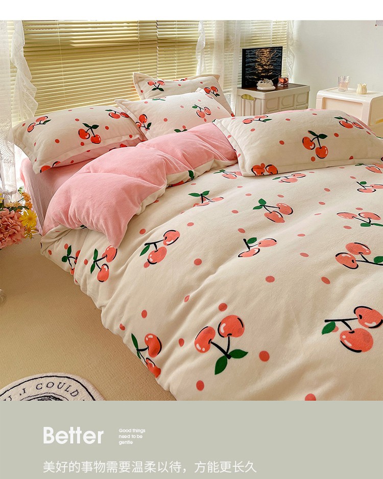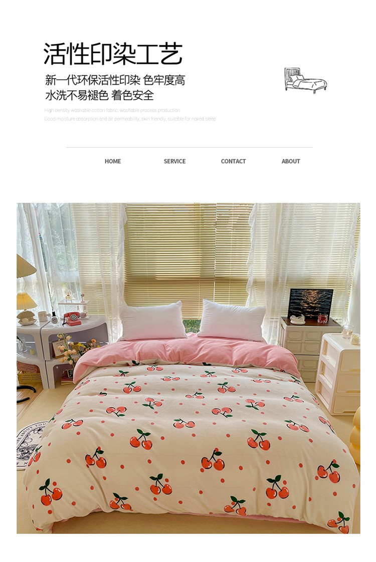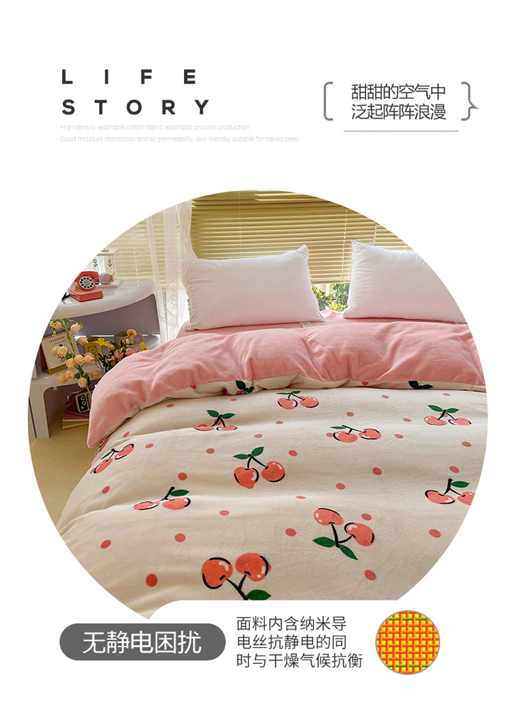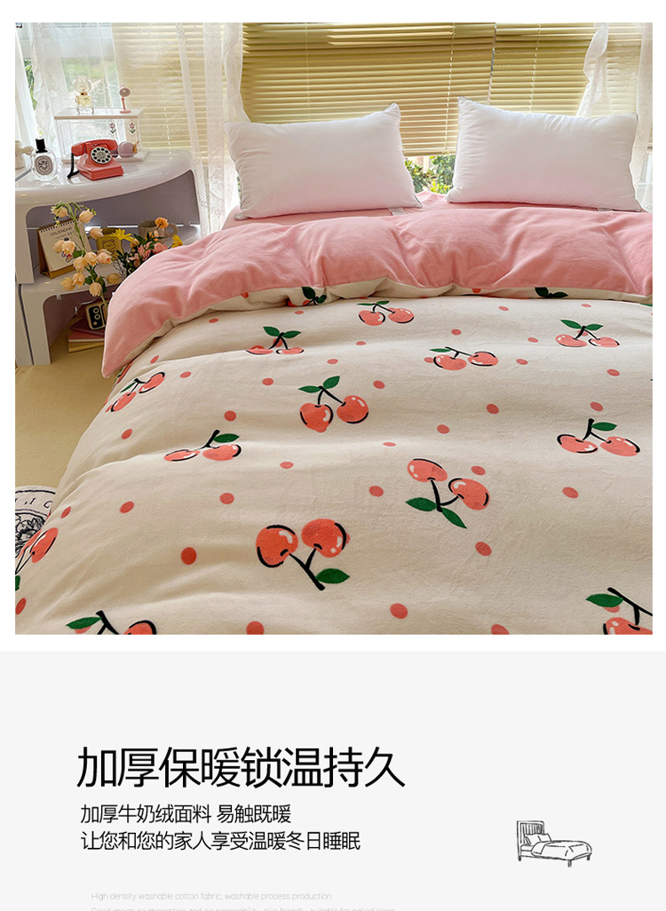 商品名称:慕尚 2022新款田园花卉类牛奶绒单被套 樱桃恋人