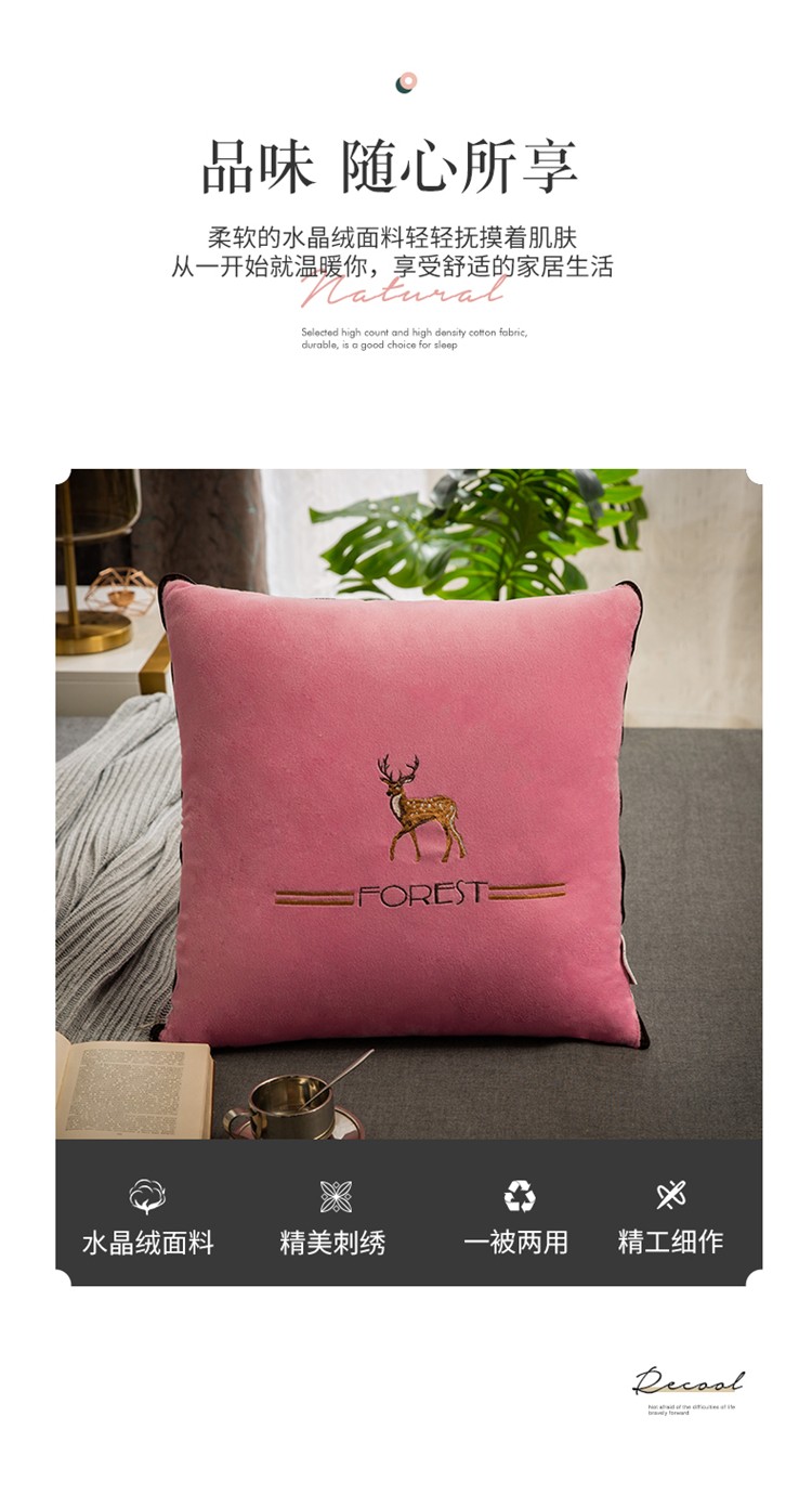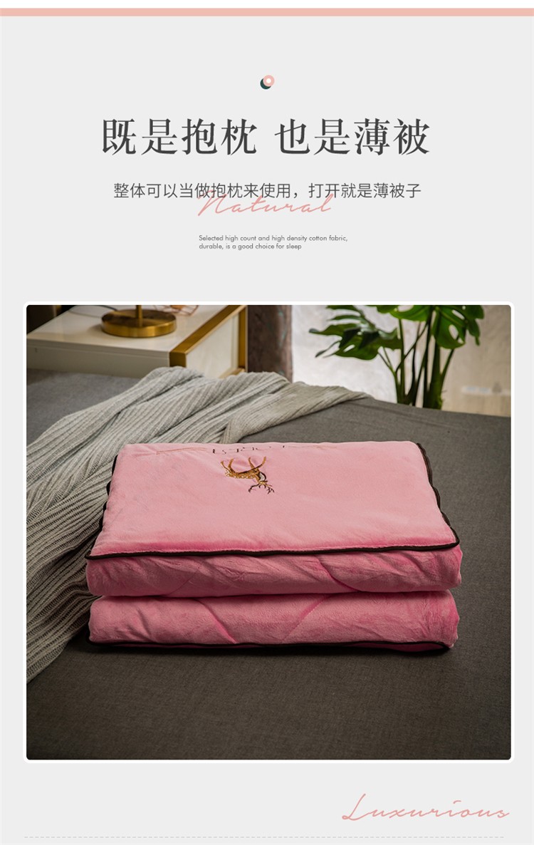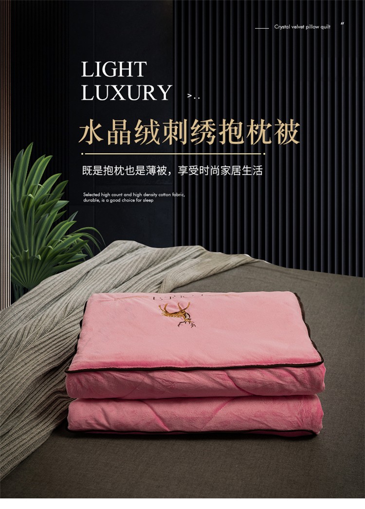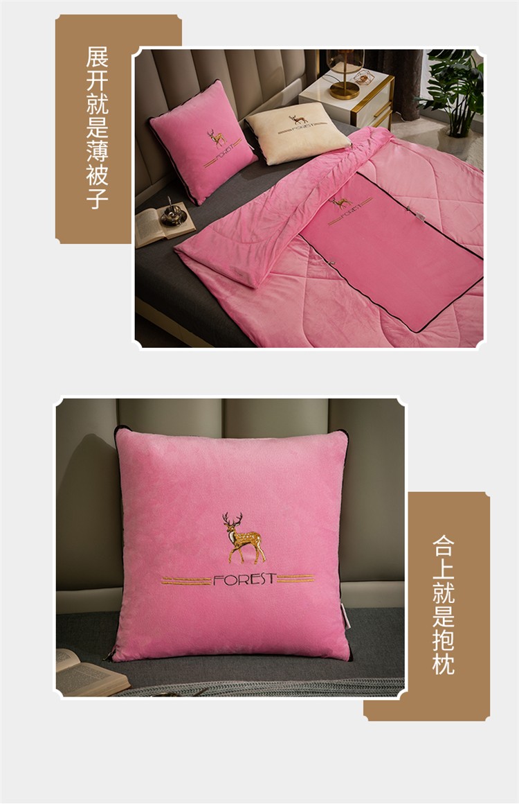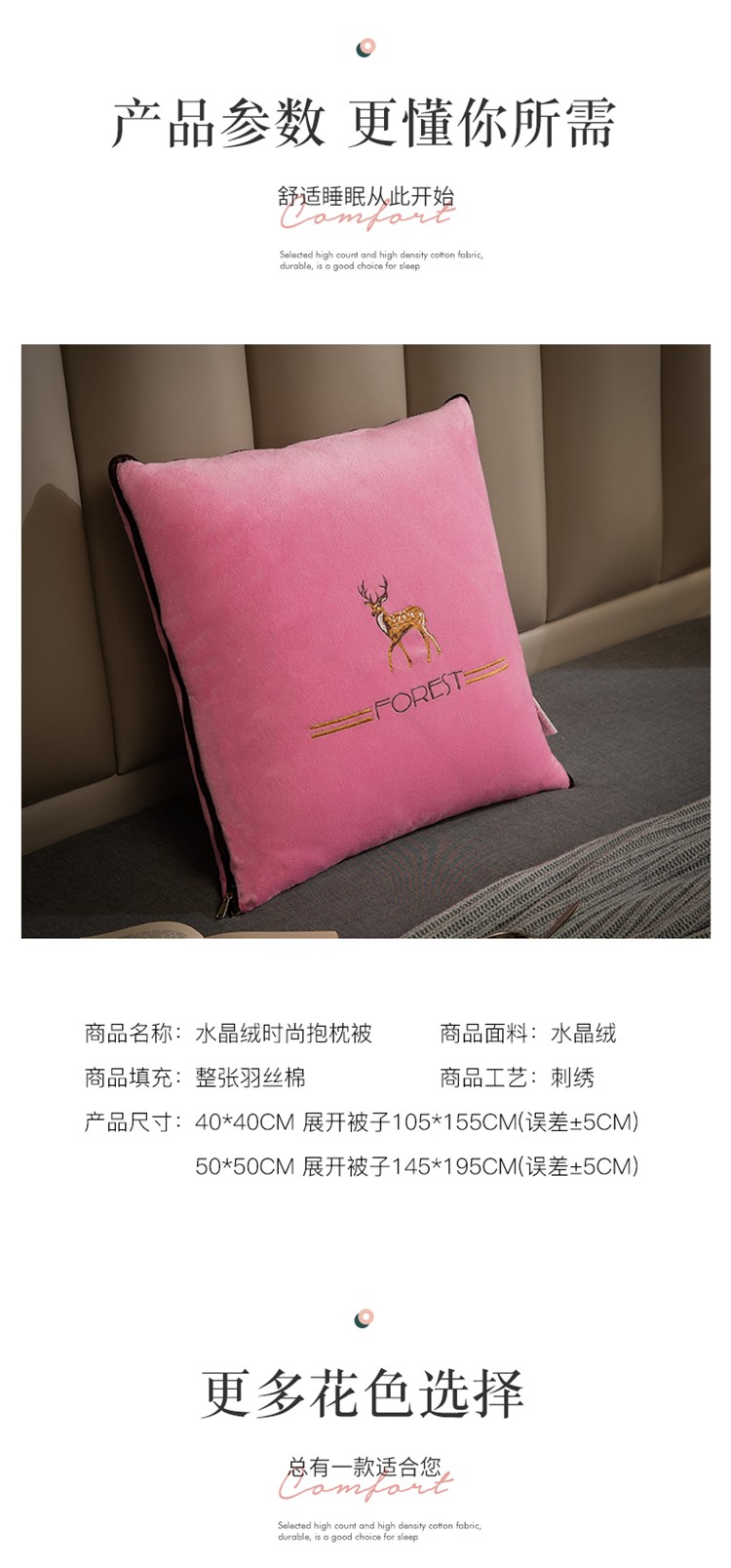 商品名称:翰轩家居 2021新款水晶绒绣花抱枕被 一鹿有你-公主粉