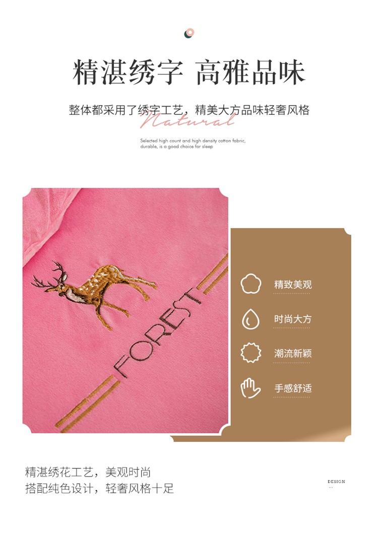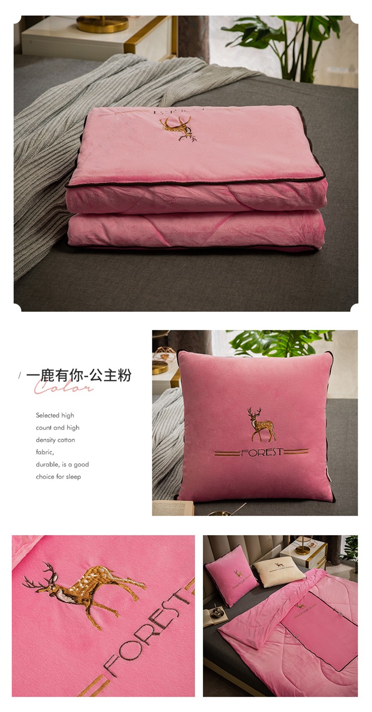 翰轩家居 2021新款水晶绒绣花抱枕被 一鹿有你-公主粉