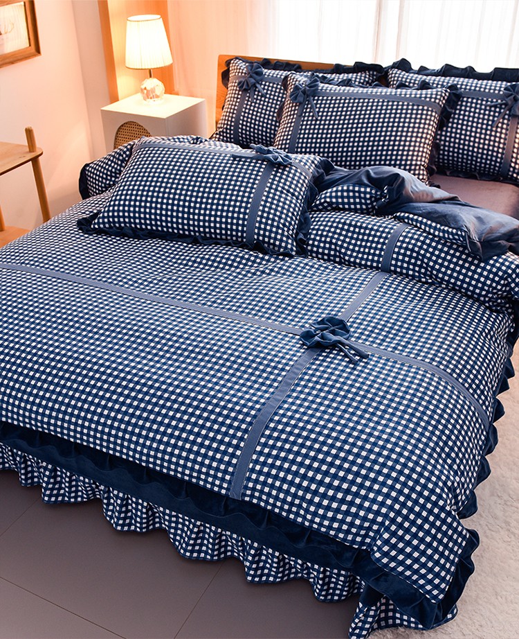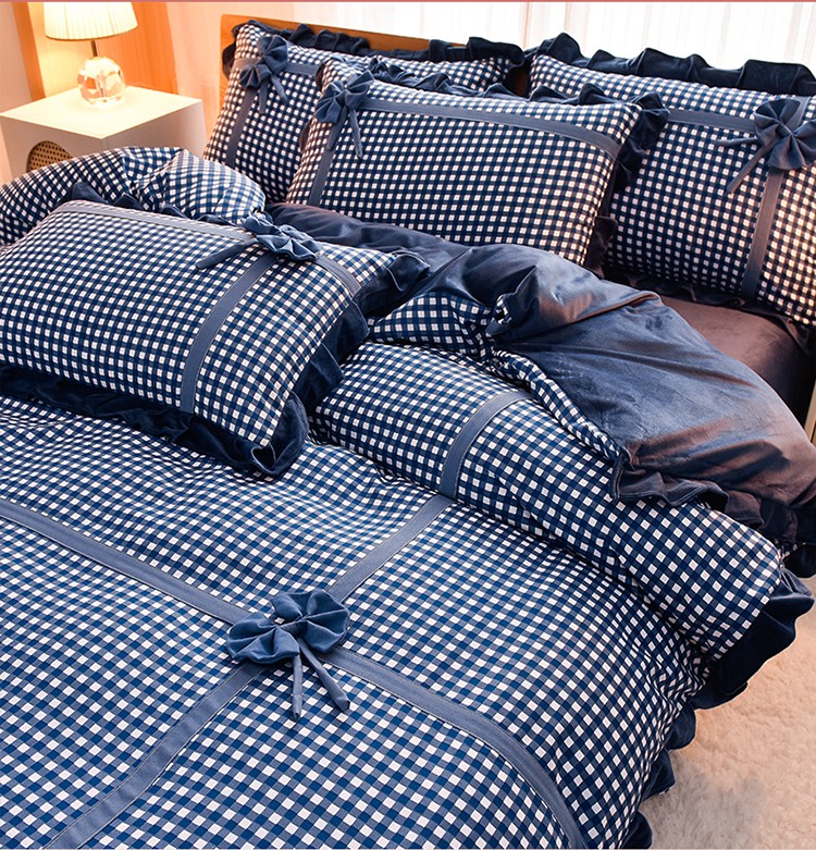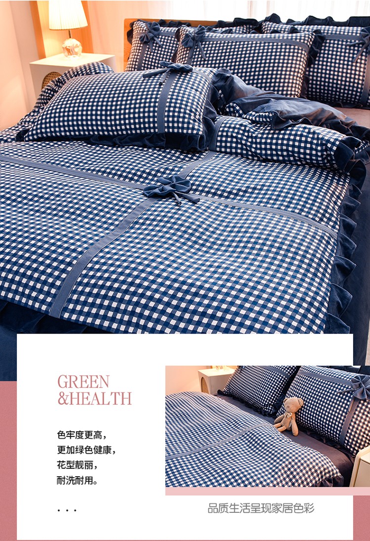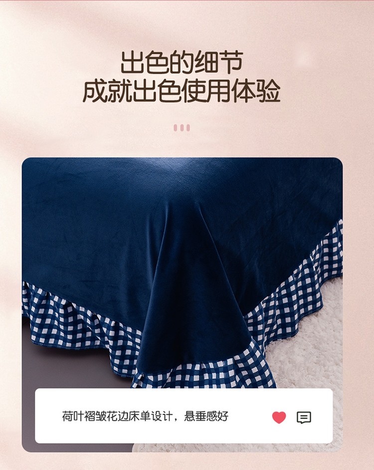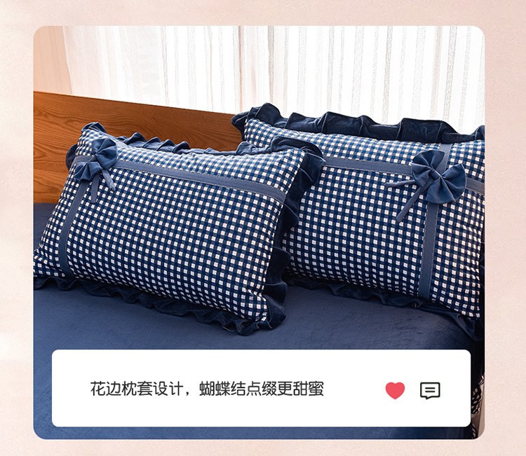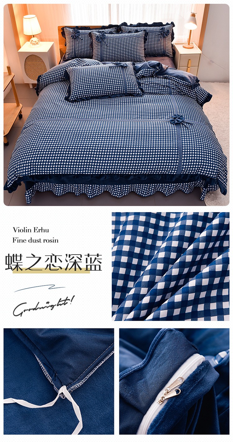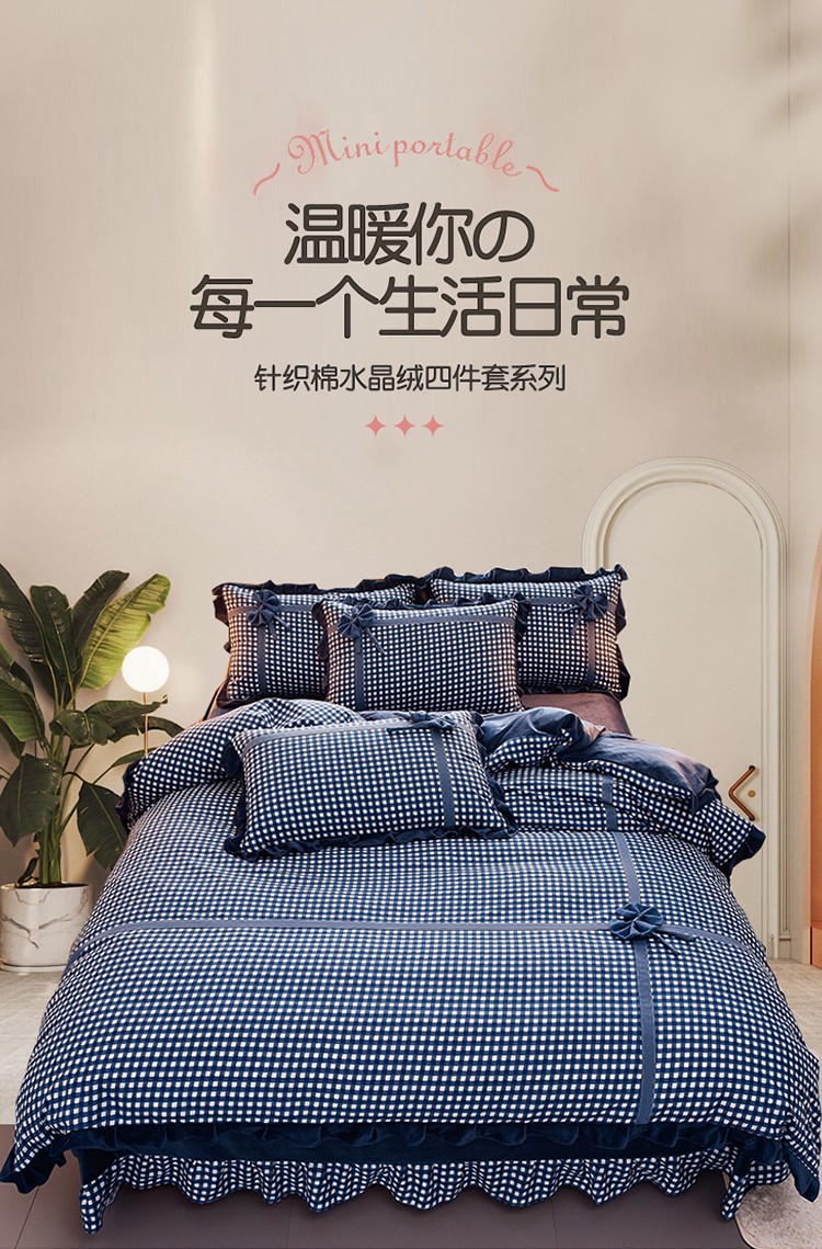 商品名称:金莎浪 2022新款A版针织棉B版水晶绒四件套 蝶之恋深蓝