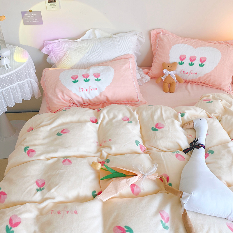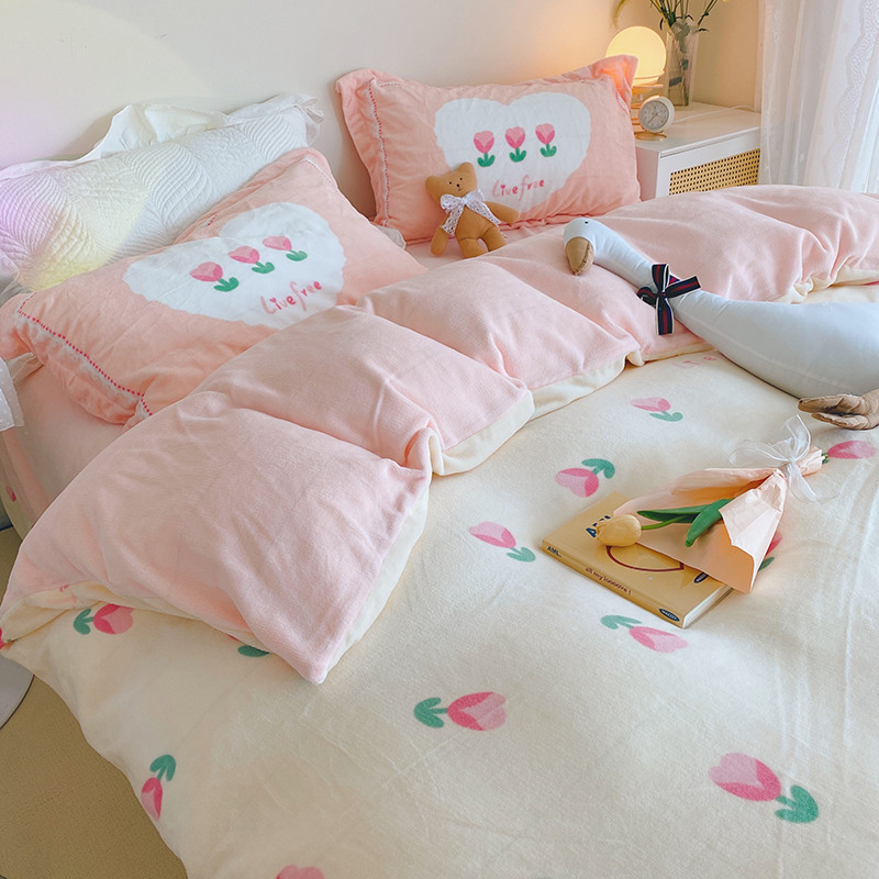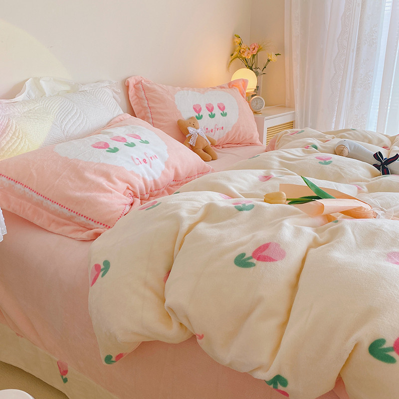 卡巴伦 2023新款大版数码印花牛奶绒四件套 淡香伊人