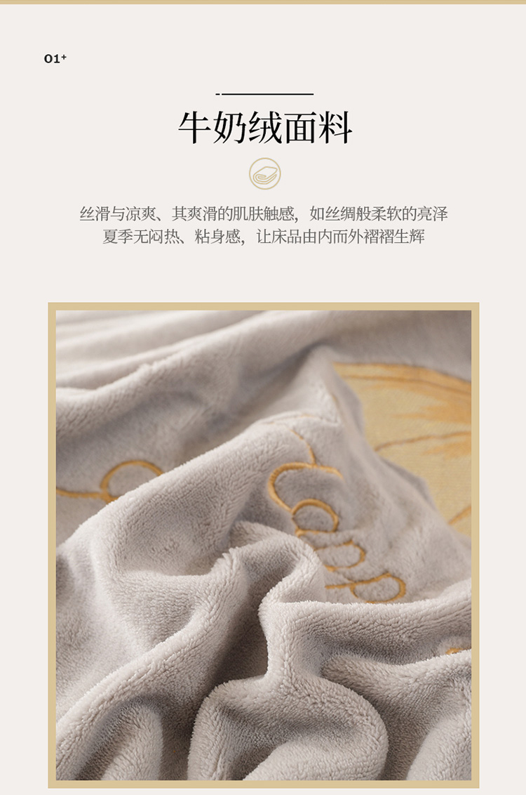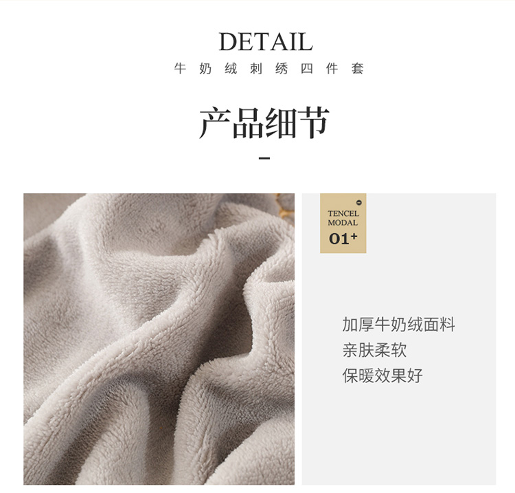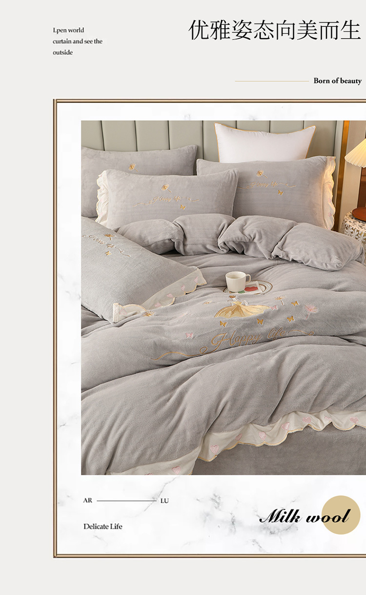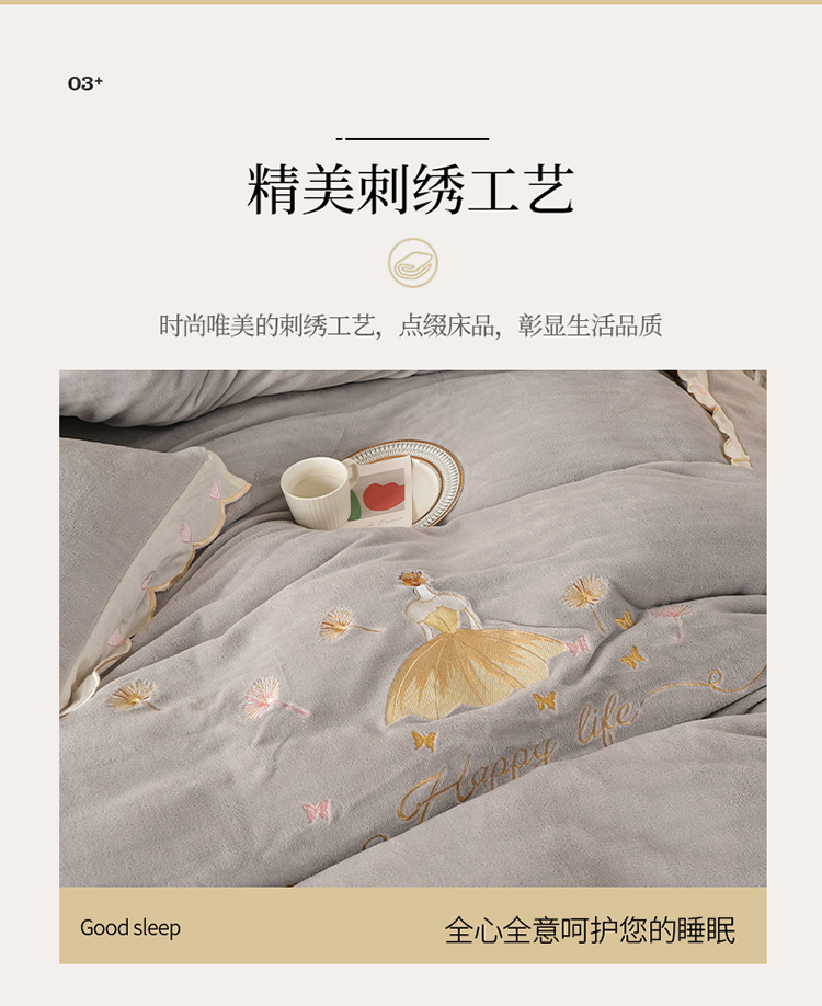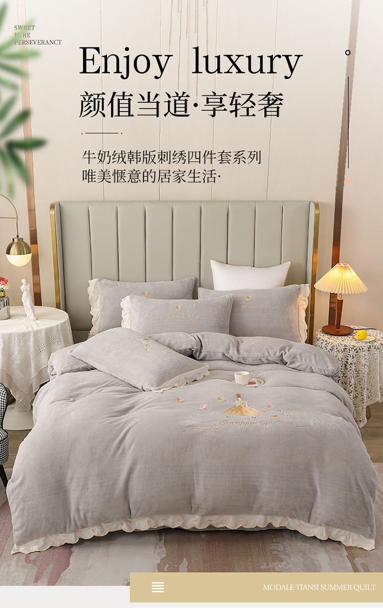 沐辰 2021新款牛奶绒刺绣四件套-舒蕾公主 舒蕾公主-灰