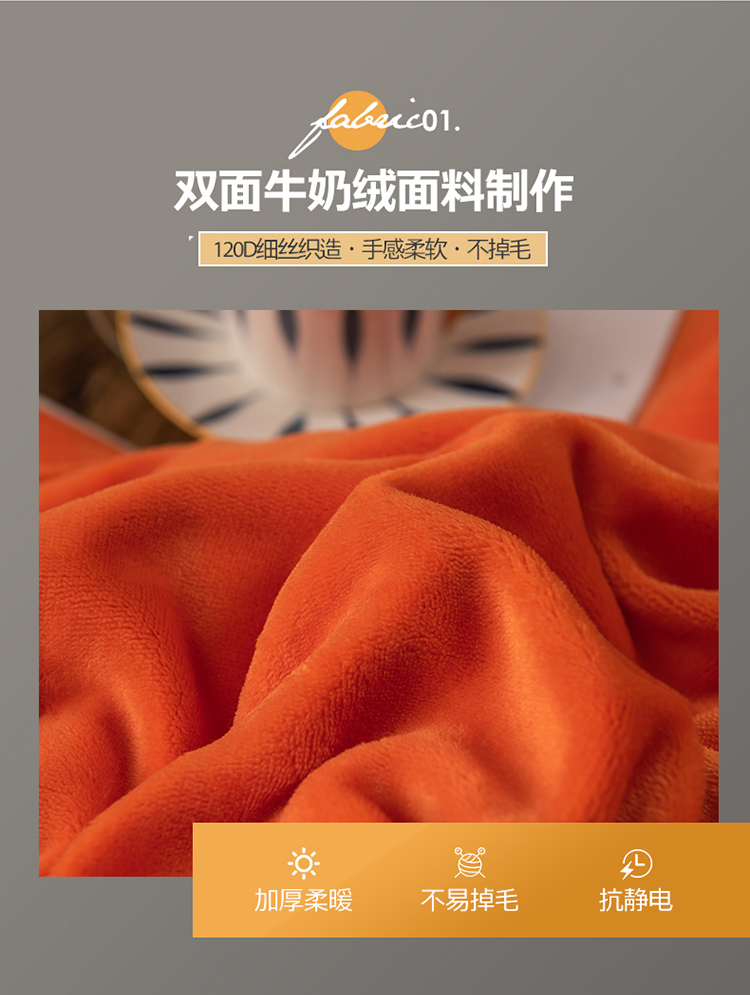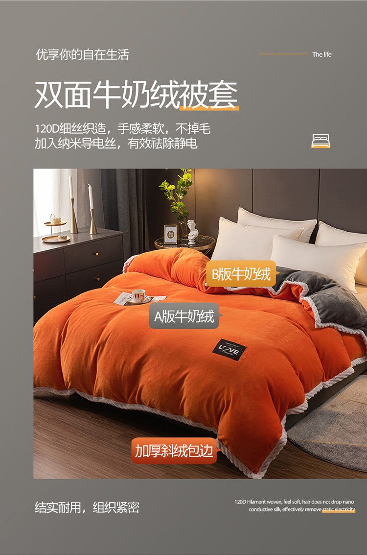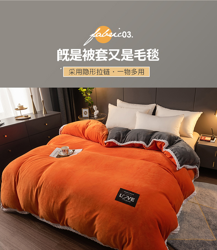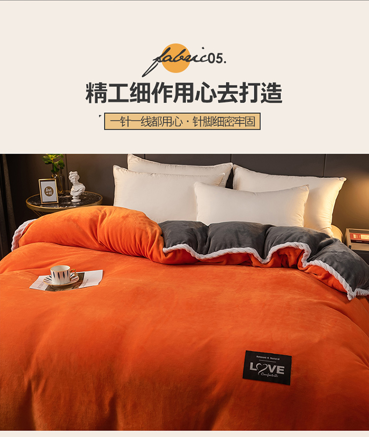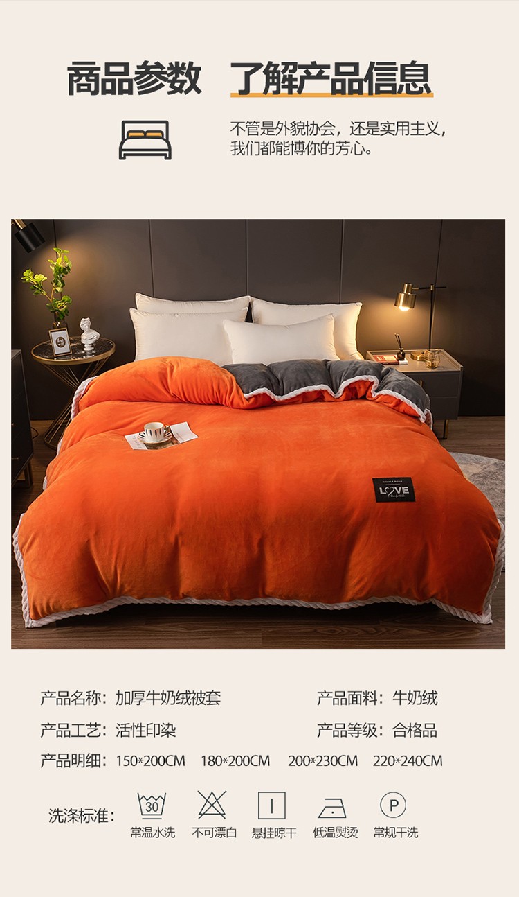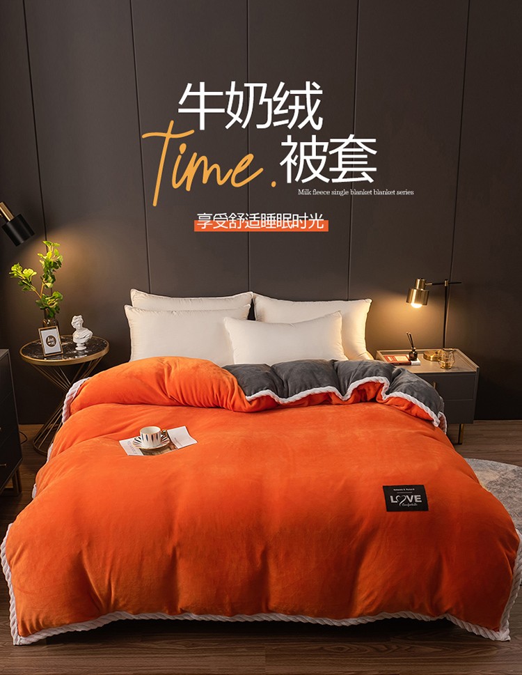 商品名称:宅部落 2021新款加厚牛奶绒被套 熔岩橙