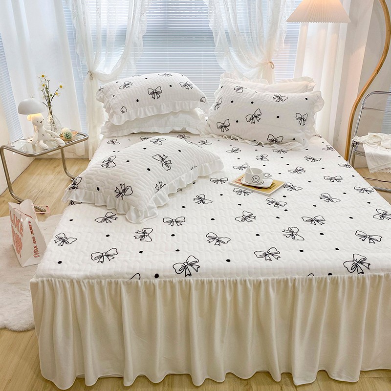 商品名称:米莱家纺 2021新款牛奶绒夹棉床裙三件套 黑白蝴蝶