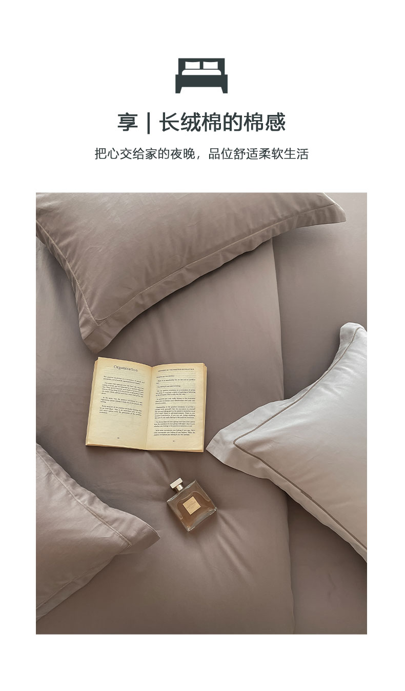 当前位置: 91家纺网 > 商品网购 > 床品套件 > 四件套 > 长绒棉四件套 > 蕊姿超柔水洗春夏新款50s双股新疆长绒棉纯色四件套大地棕