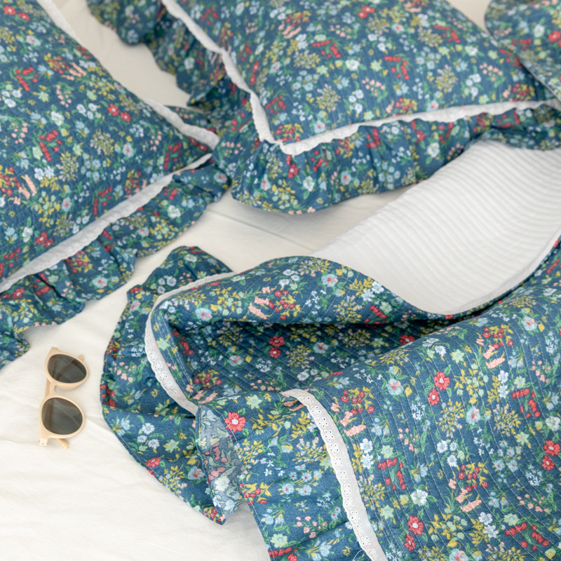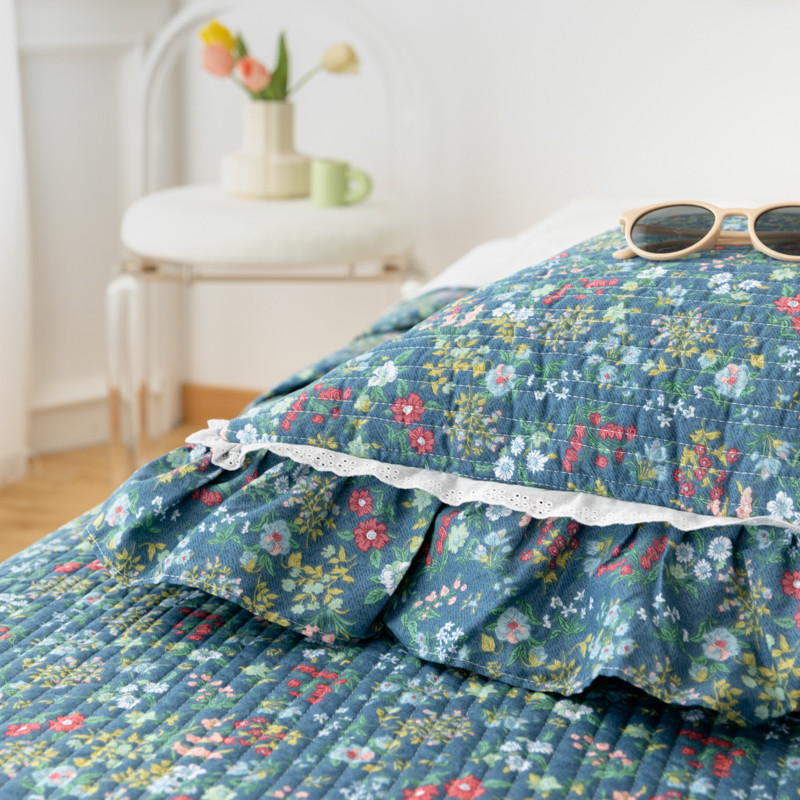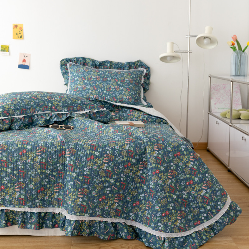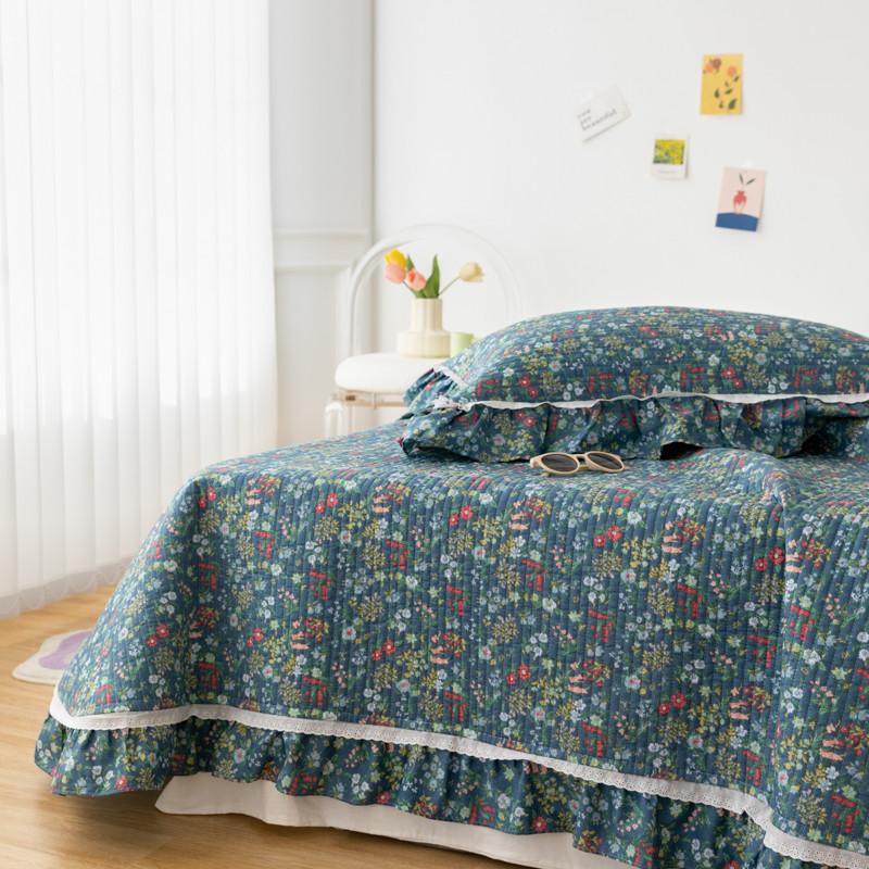 淑女公社家纺 2022新款纯棉13372韩版镂空小花边床盖 绿肥红瘦