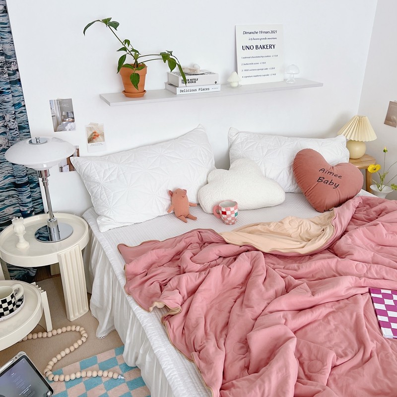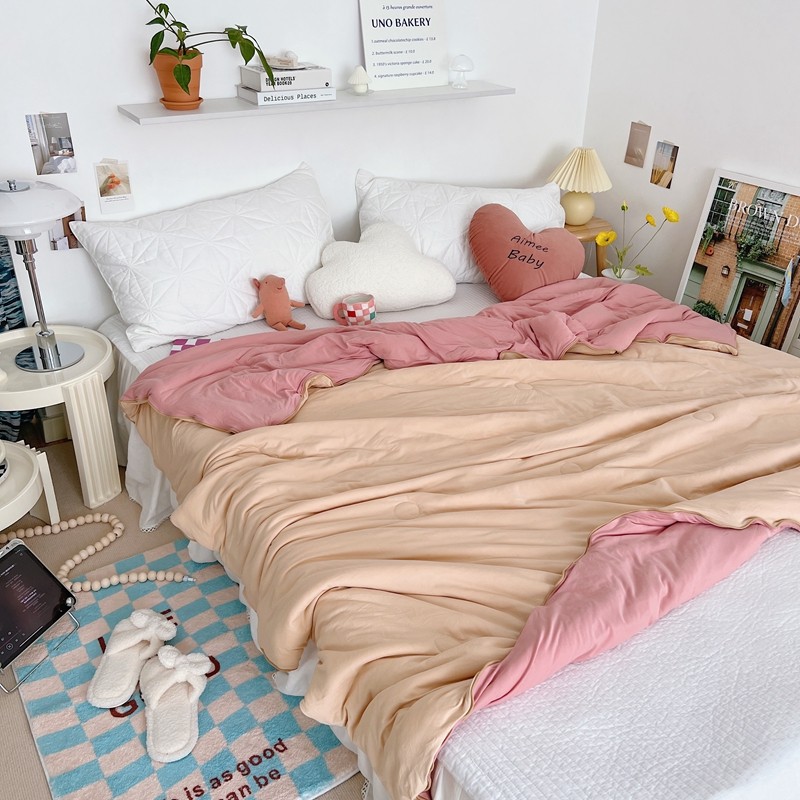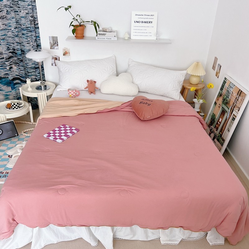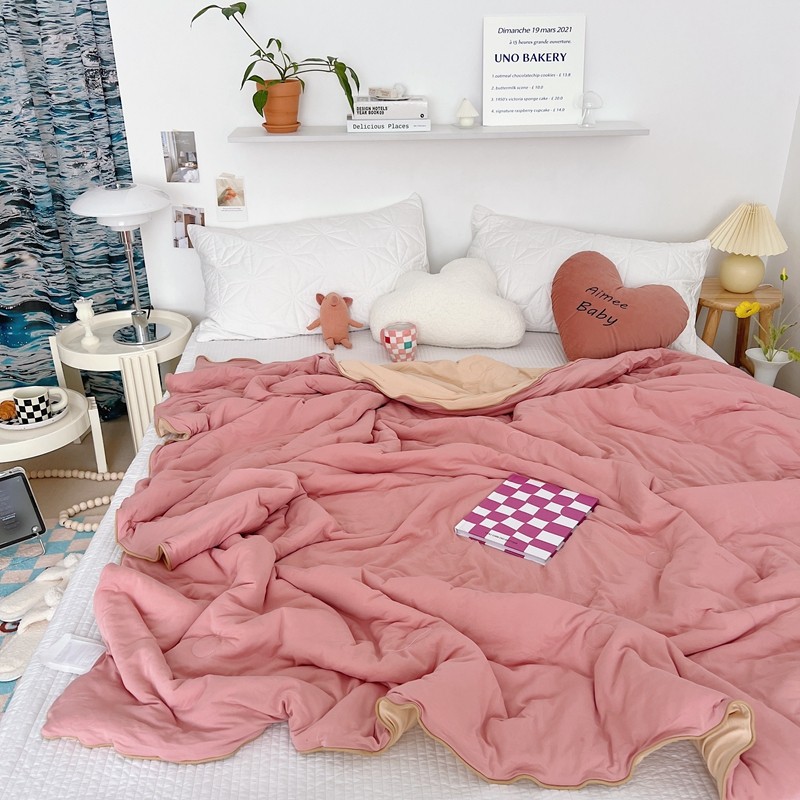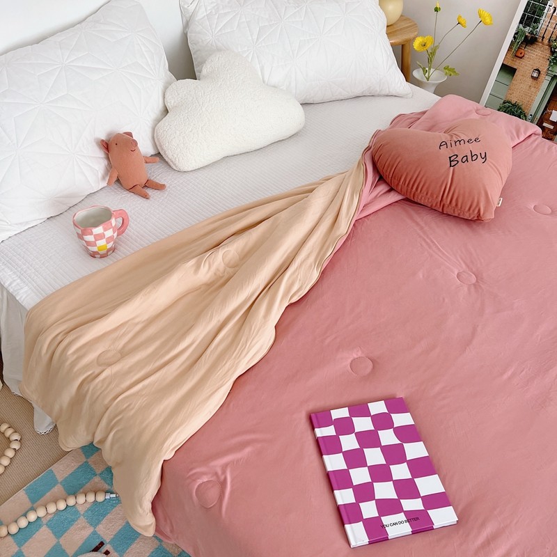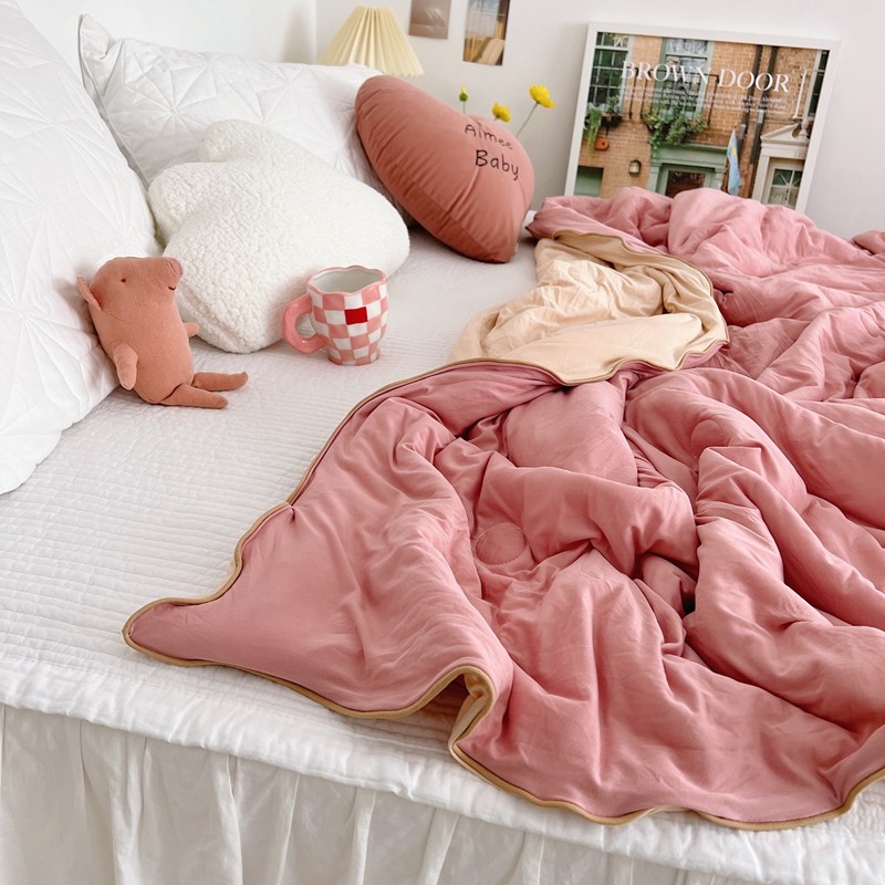 星期八 2022新款马卡龙针织棉大豆夏被 深粉浅粉