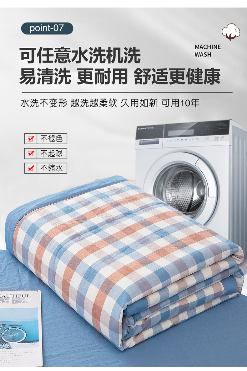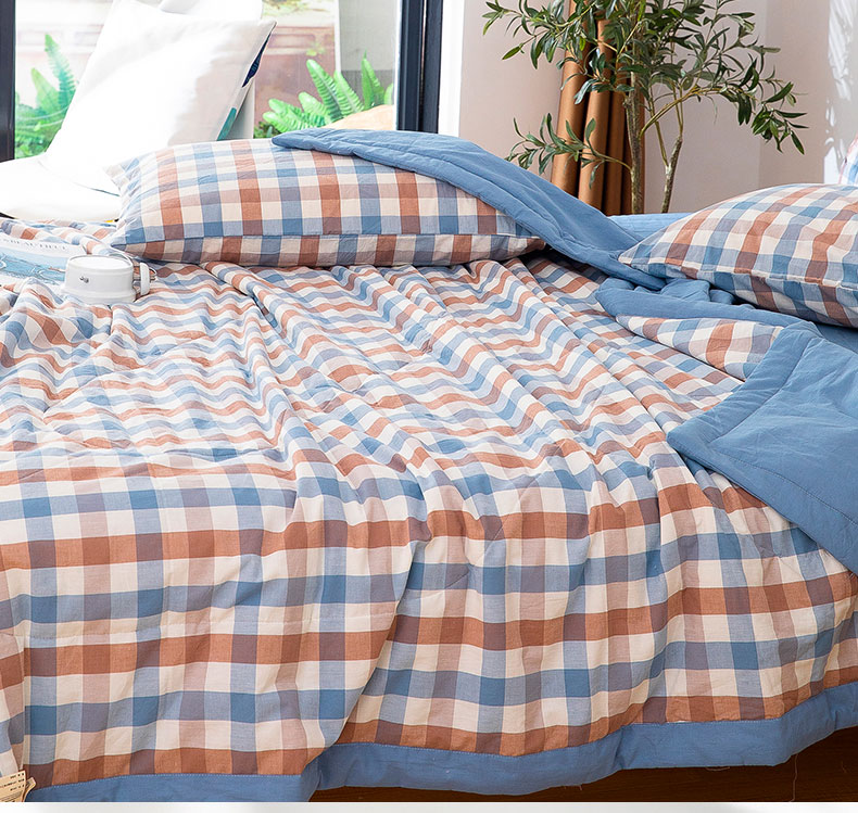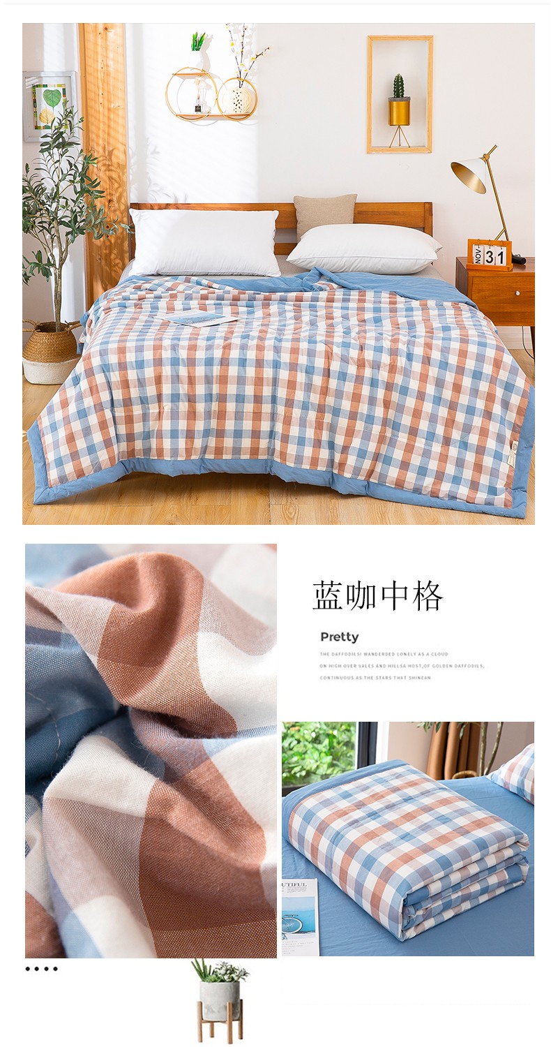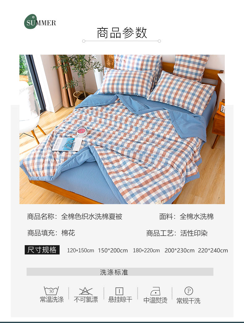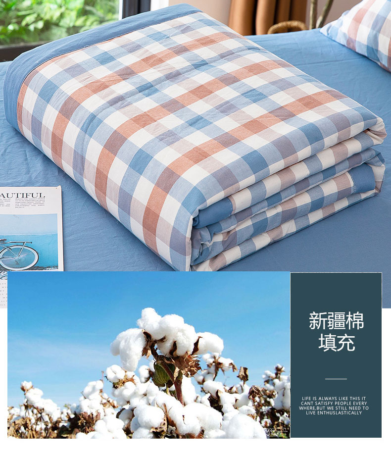 商品名称:天瑜 2024新款棉花芯色织水洗棉夏被 蓝咖中格