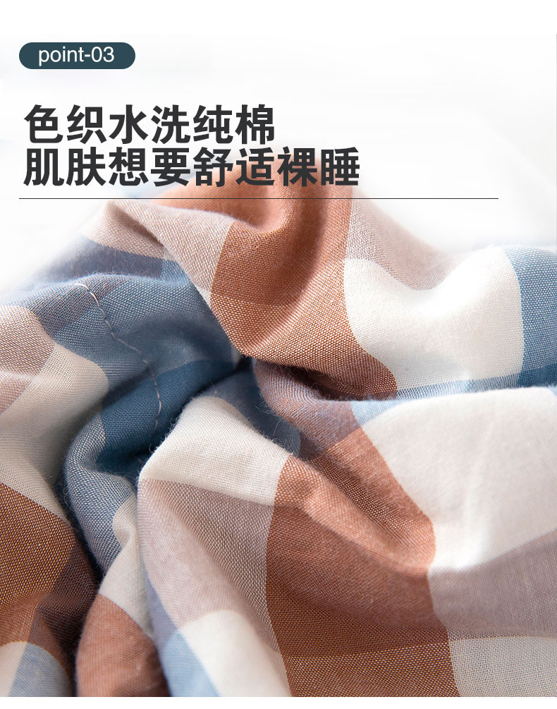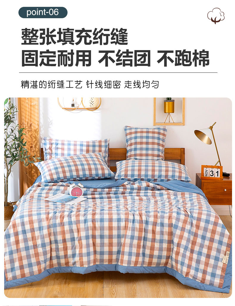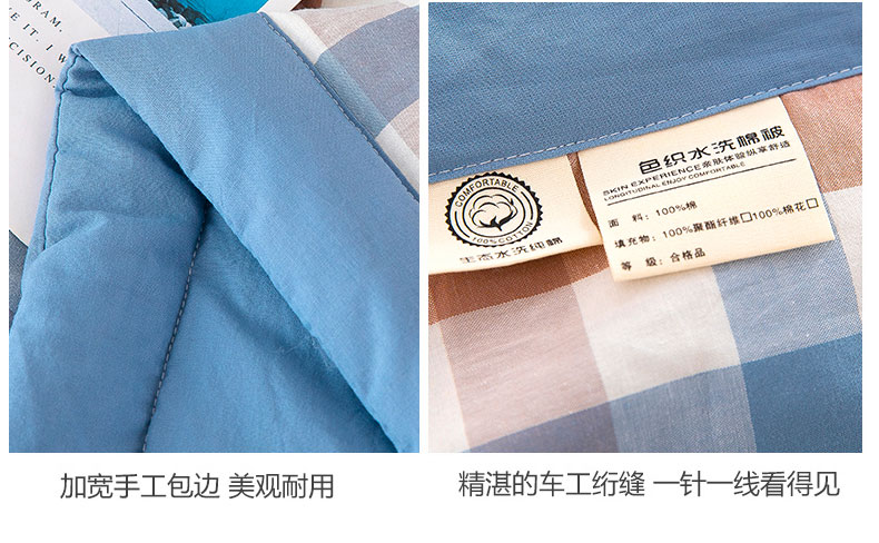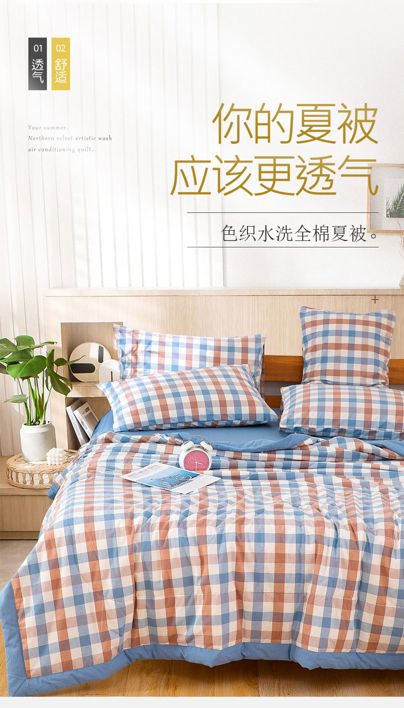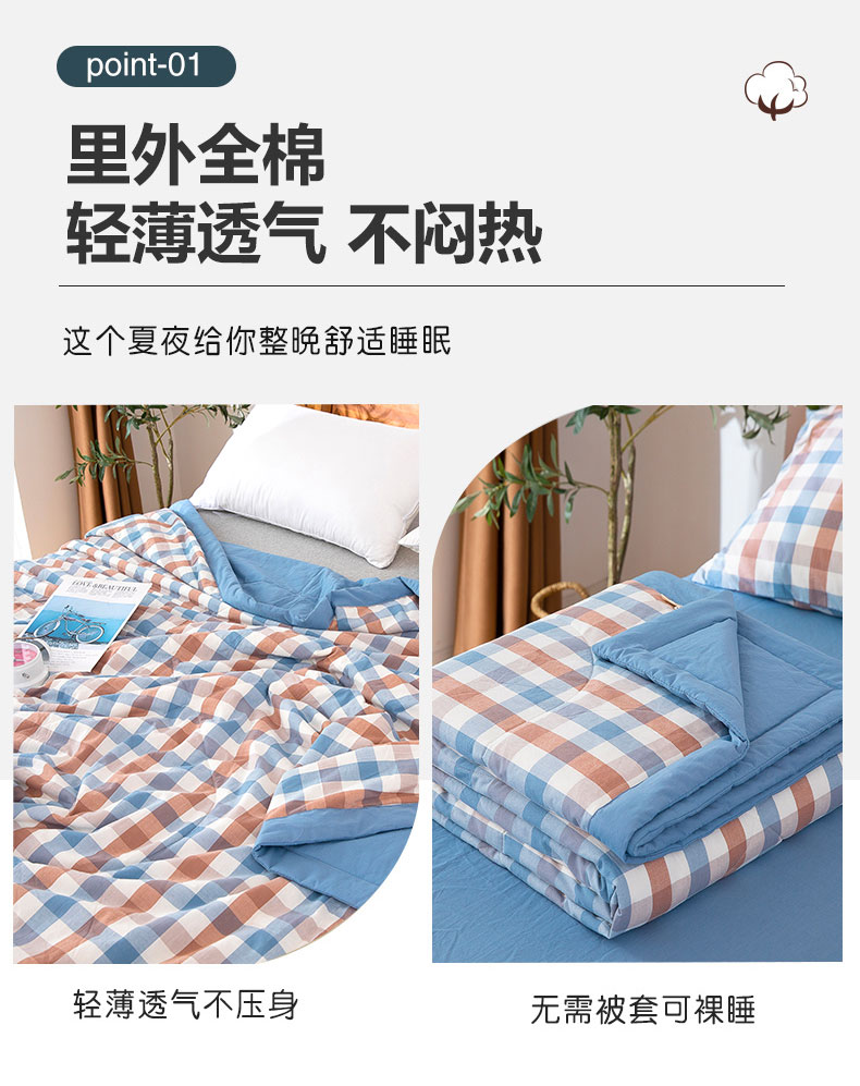 商品名称:天瑜 2024新款棉花芯色织水洗棉夏被 蓝咖中格