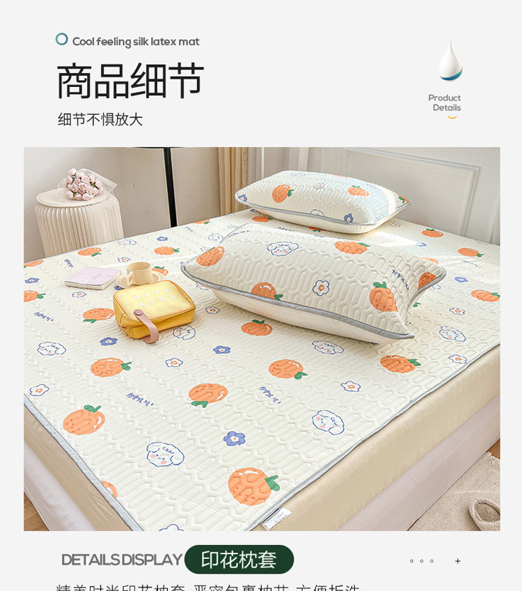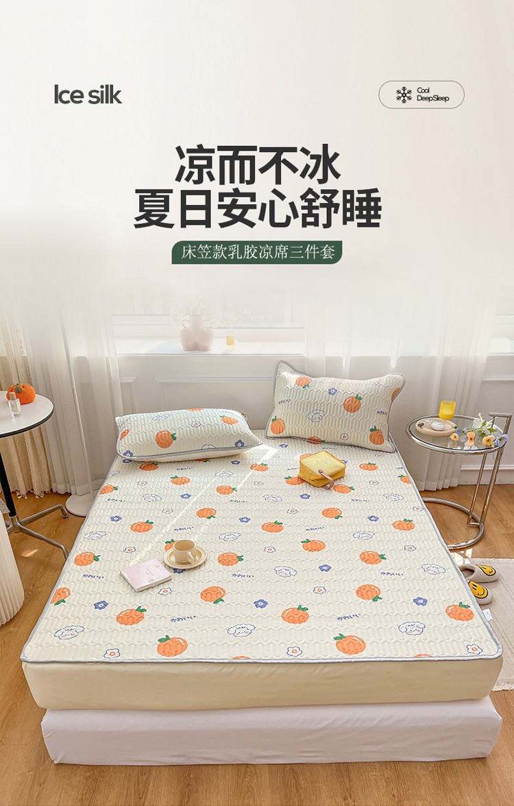 商品名称:寐居 2022新款0.5凉感丝床笠款乳胶凉席三件套 床笠款-梦幻甜橙