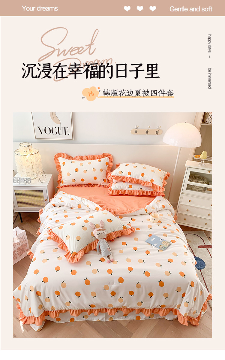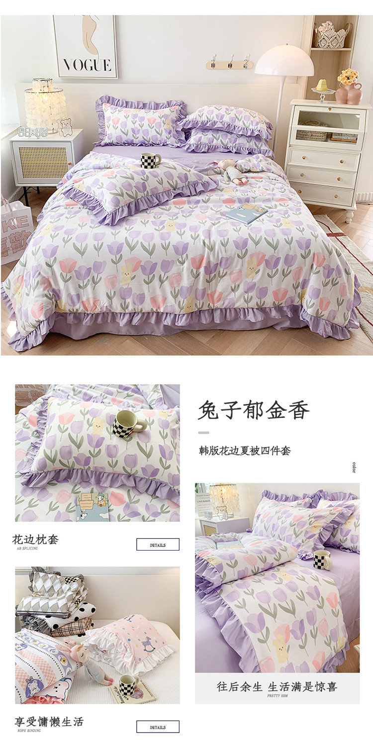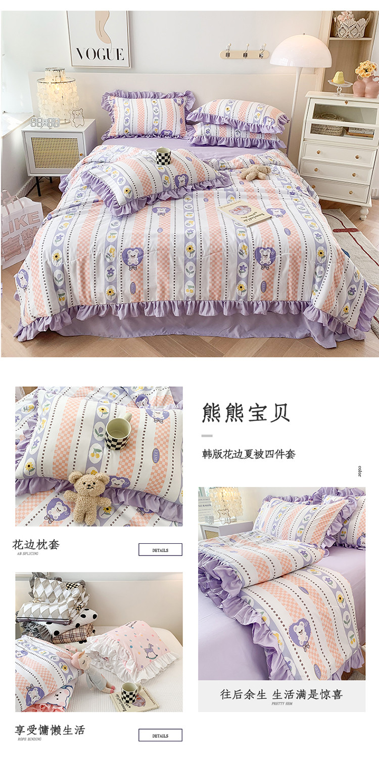 (总)吾欢心 2024新款茶萃棉韩版花边夏被四件套