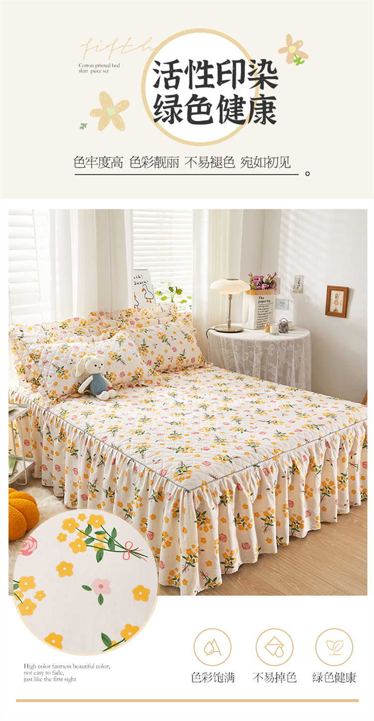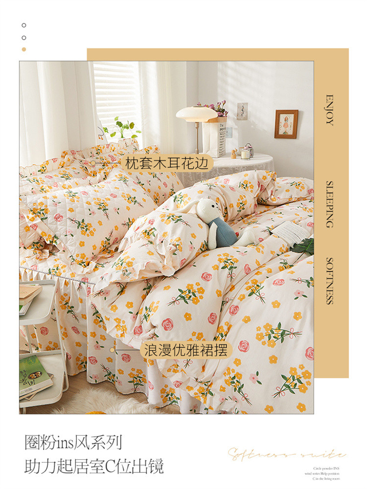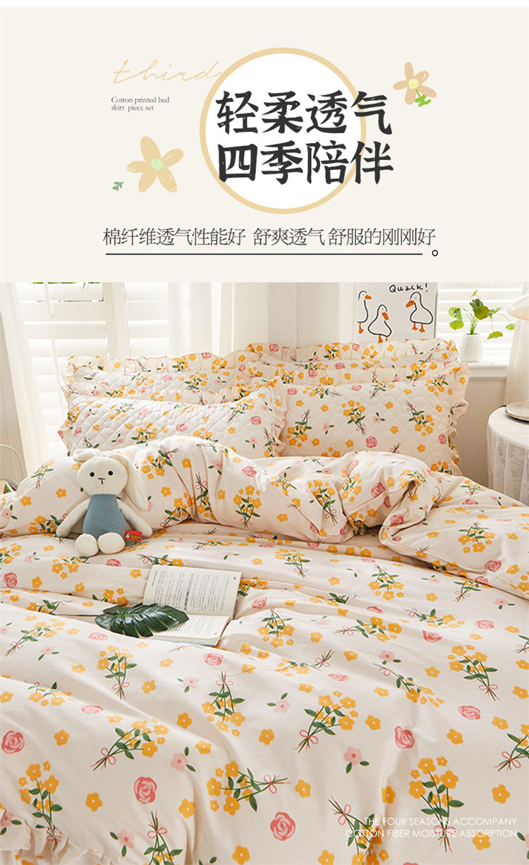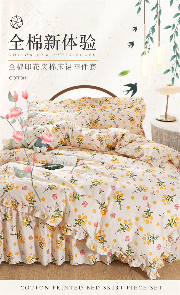 当前位置: 91家纺网 > 商品网购 > 床品套件 > 四件套 > 全棉普通四件套 > 十个点 2022新款全棉夹棉印花床裙四件套 秋枝
