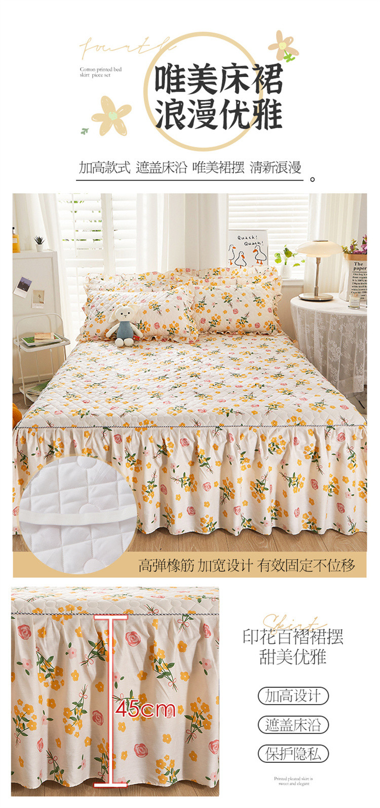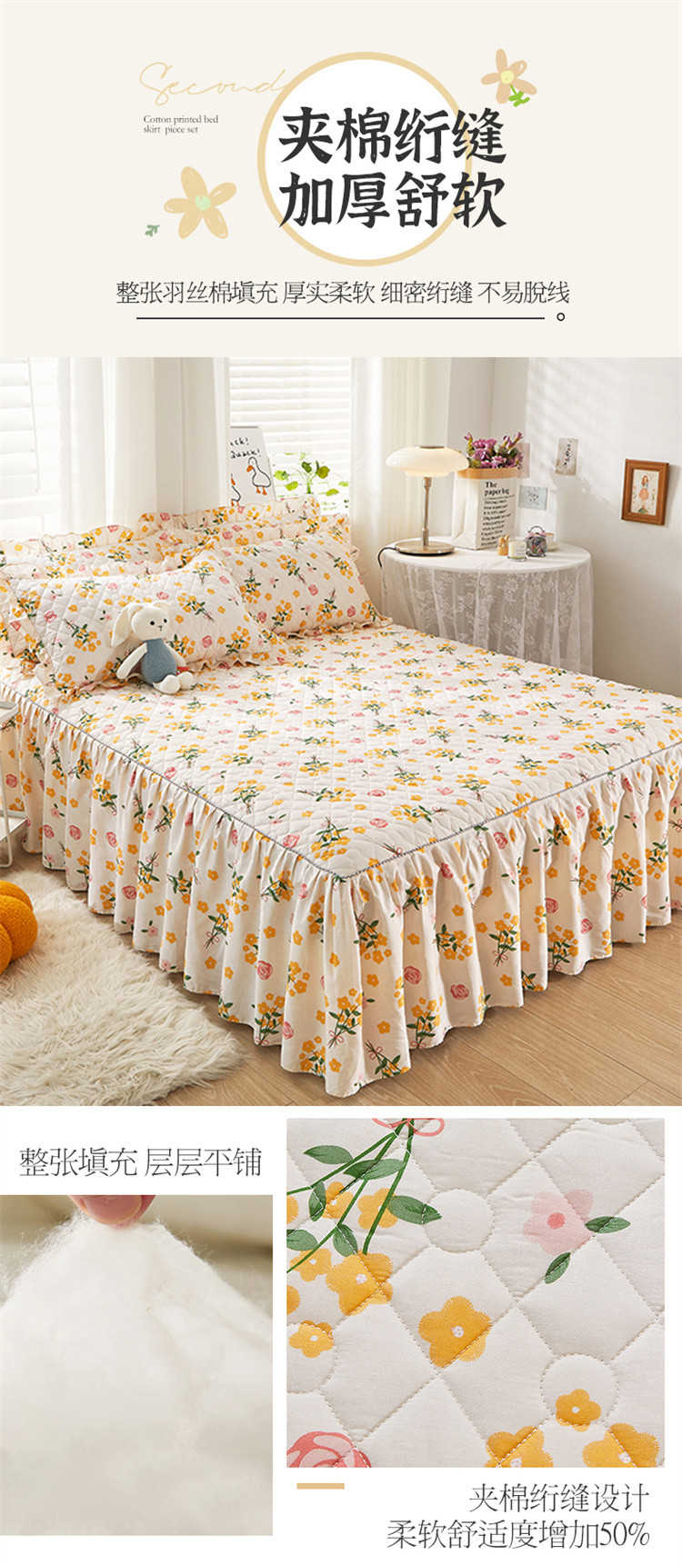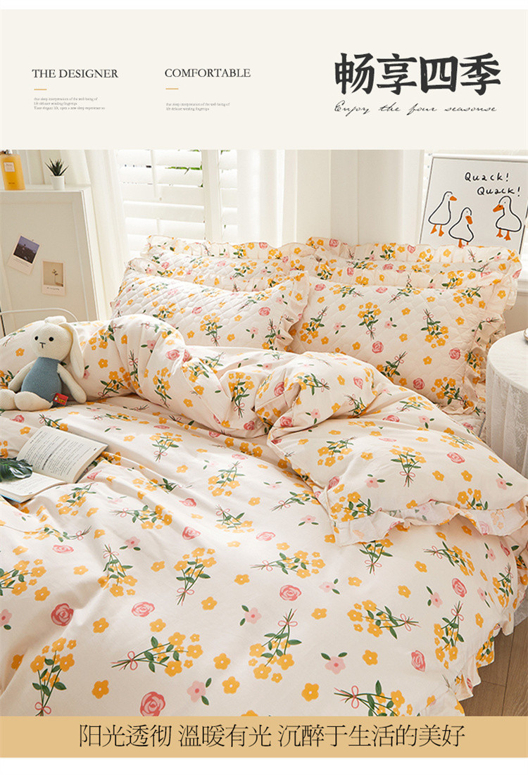 当前位置: 91家纺网 > 商品网购 > 床品套件 > 四件套 > 全棉普通四件套 > 十个点 2022新款全棉夹棉印花床裙四件套 秋枝