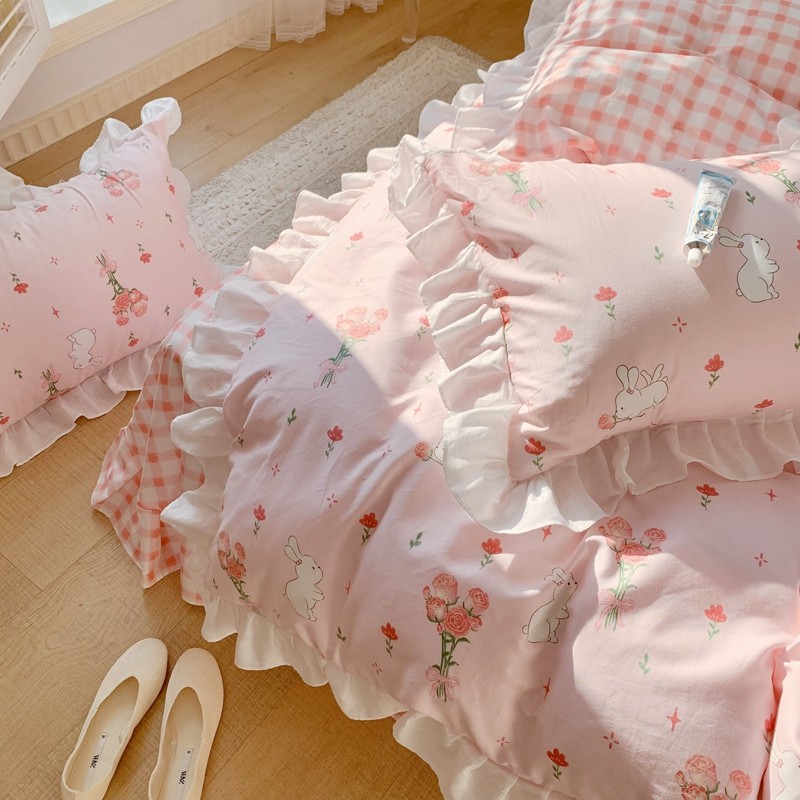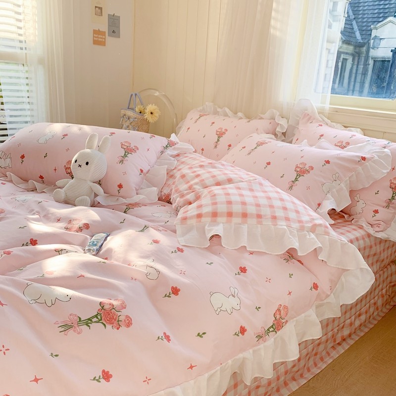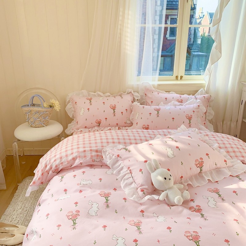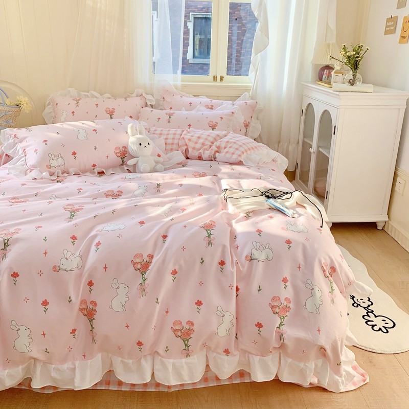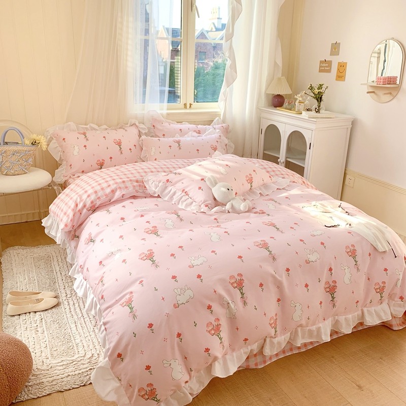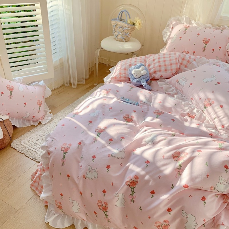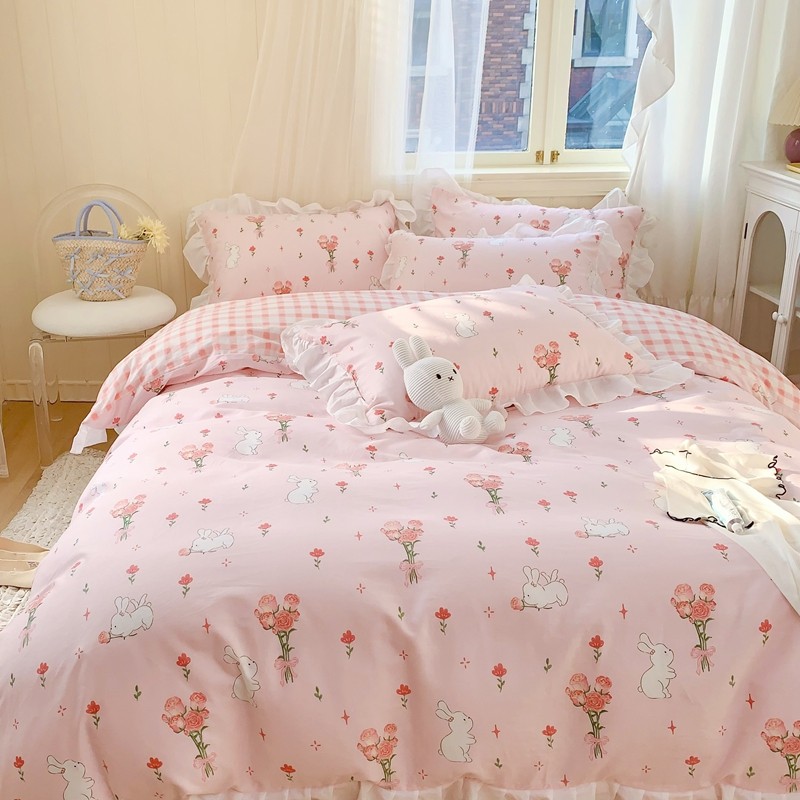 眠屿 2022春夏新品全棉印花花边款四件套 花小兔