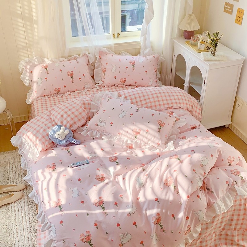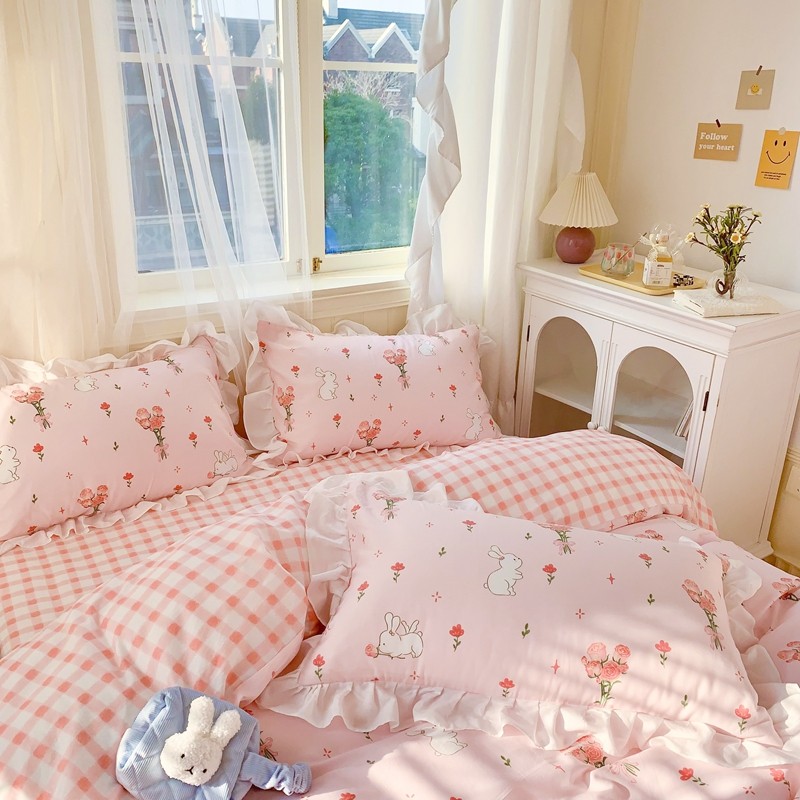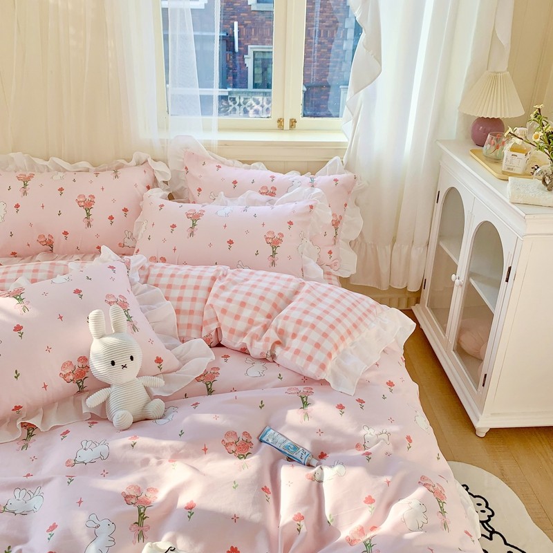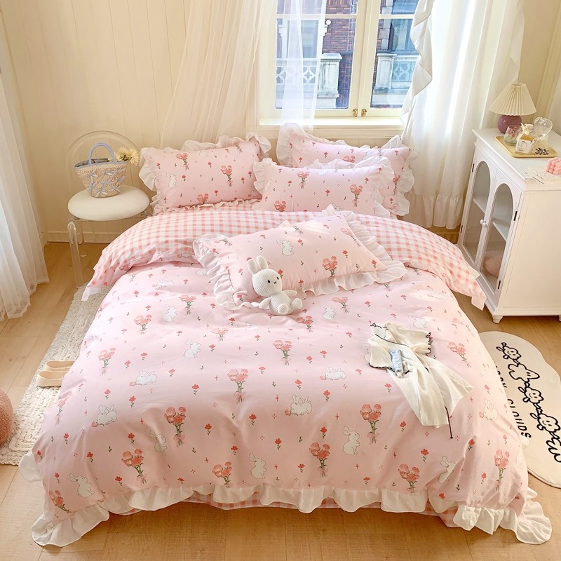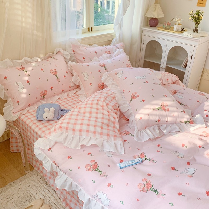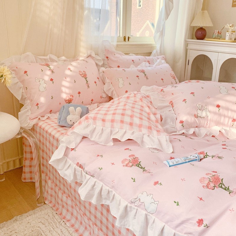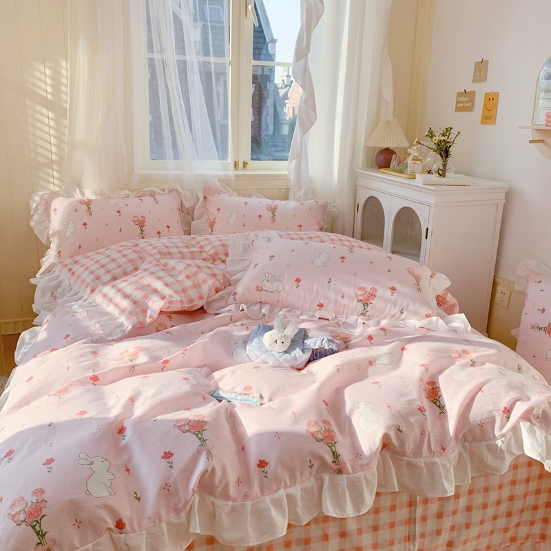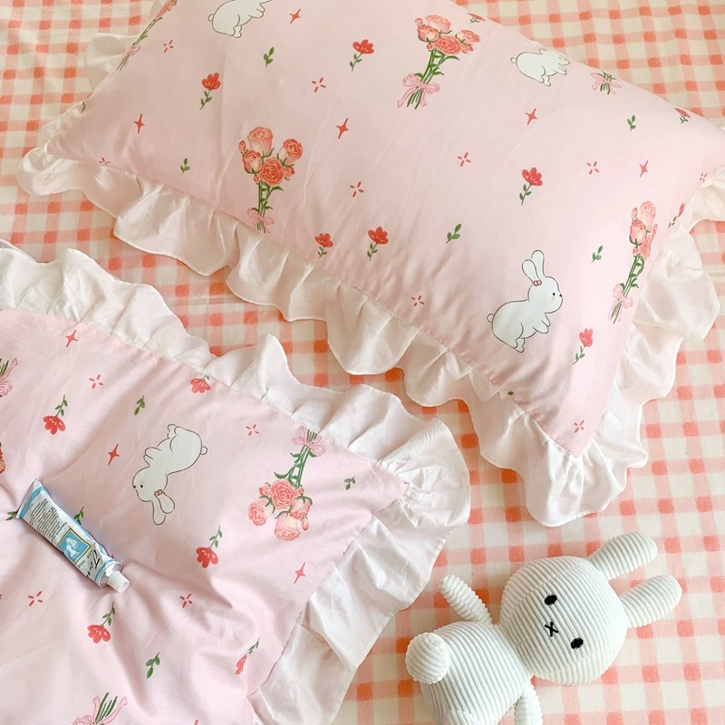 眠屿 2022春夏新品全棉印花花边款四件套 花小兔