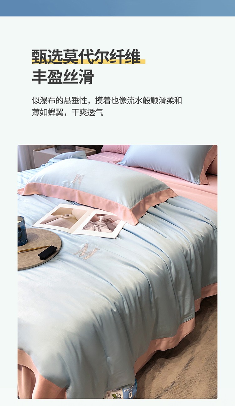 商品名称:初拾 2022新款莫代尔零度夏被—知夏系列 知夏-温泉蓝