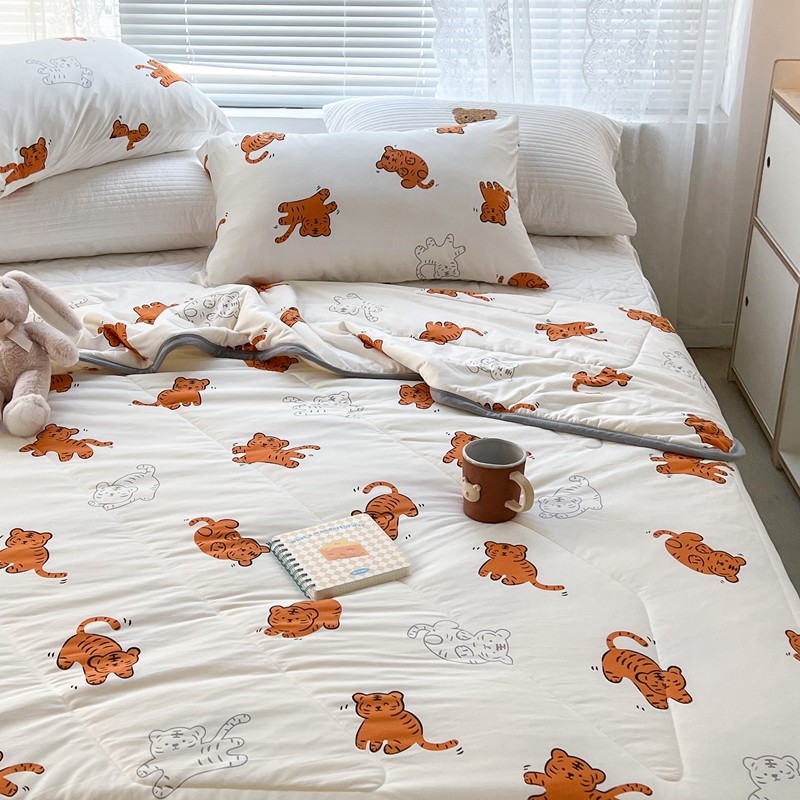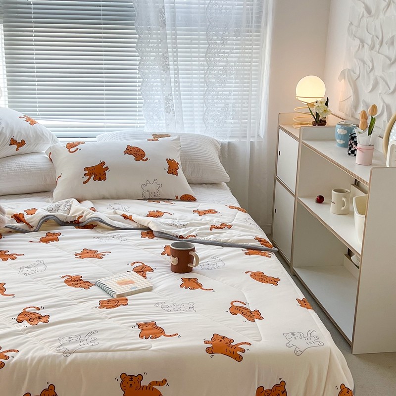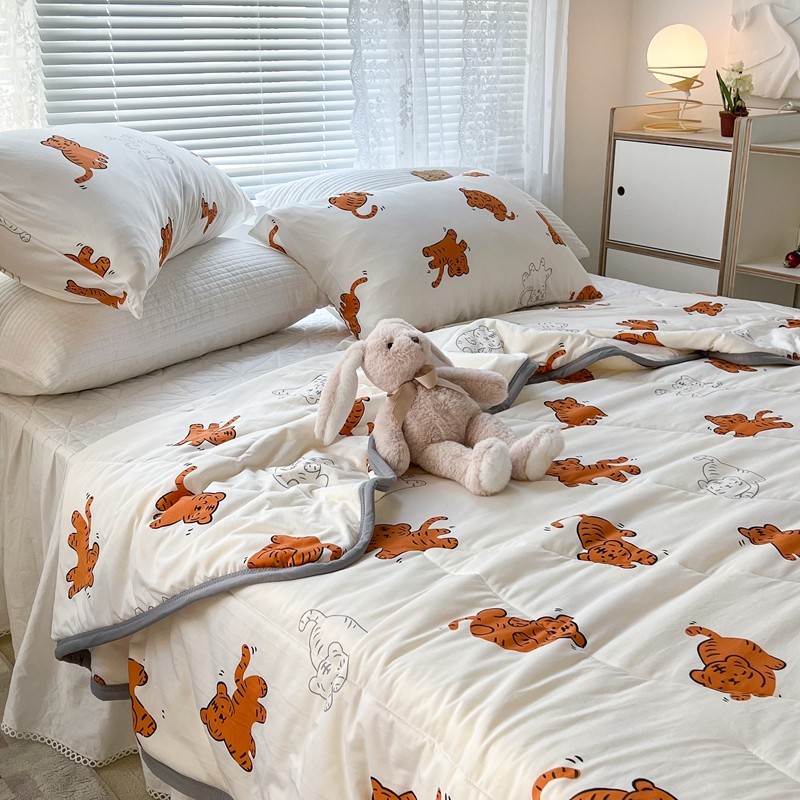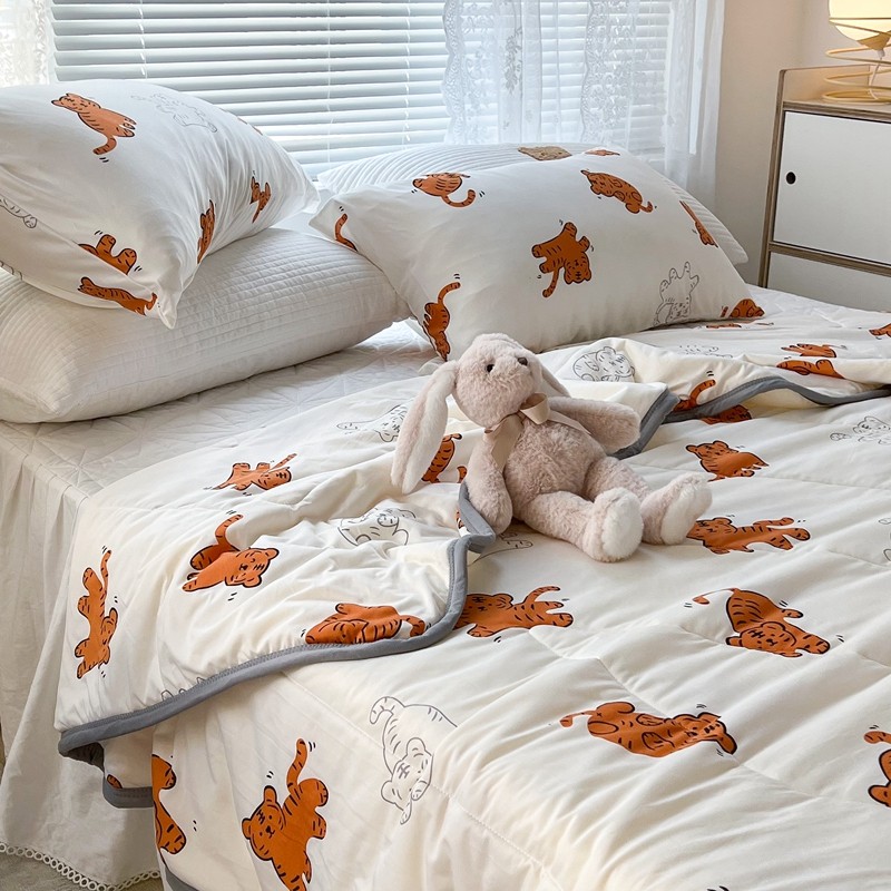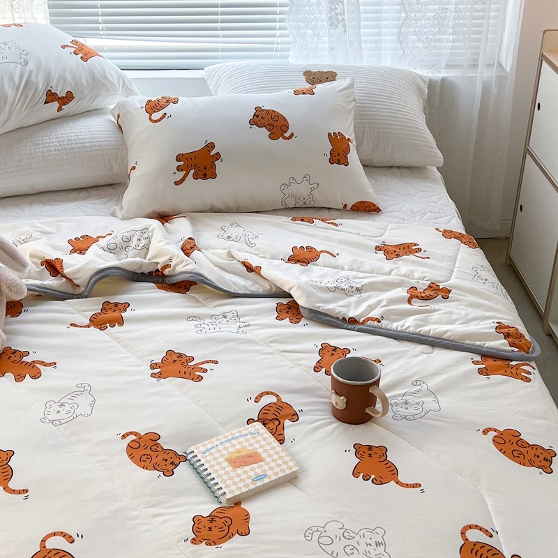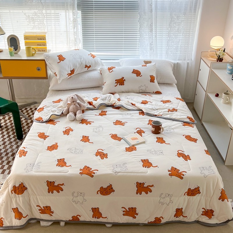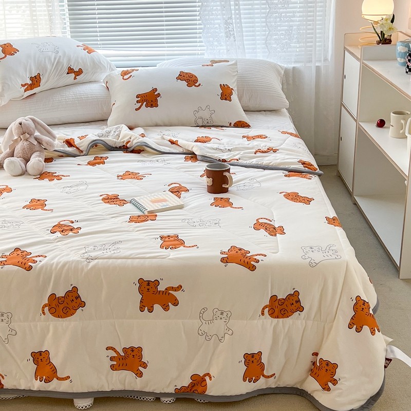 商品名称:昔可 2022新款包边牛奶丝针织夏被 橙色小老虎