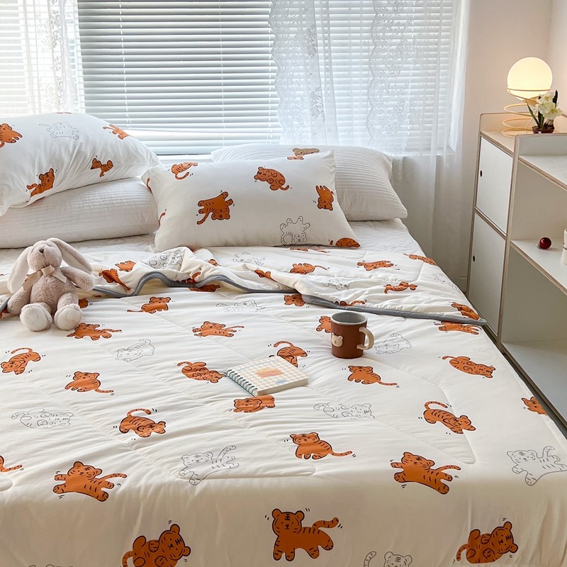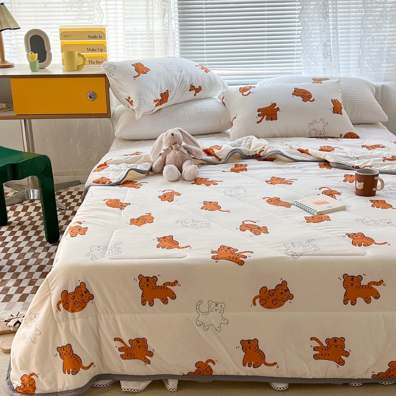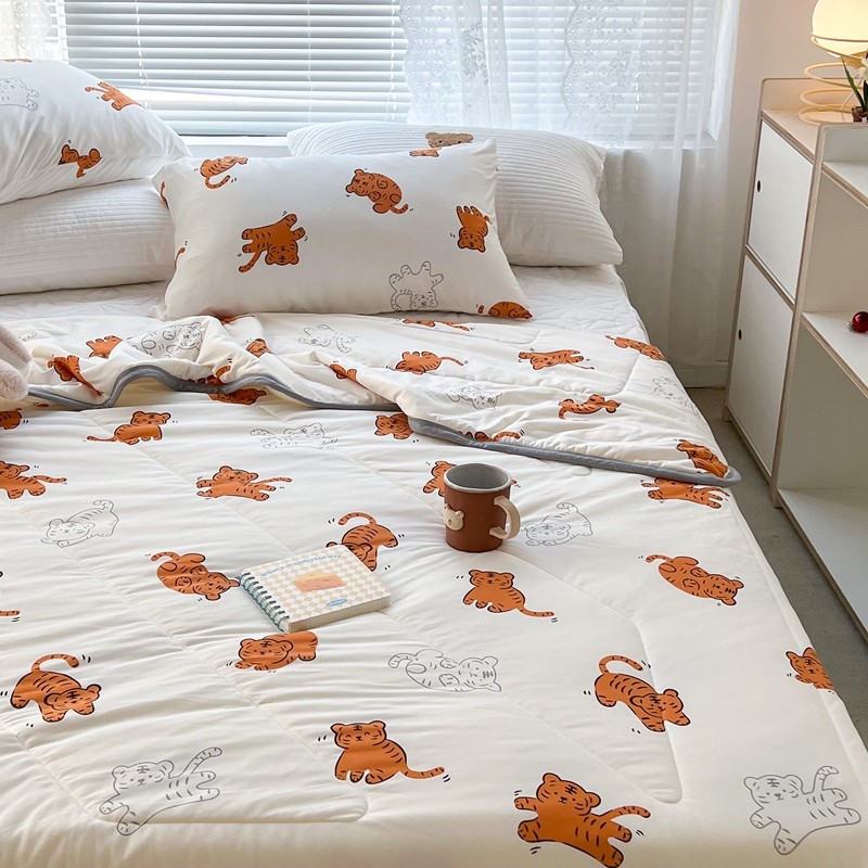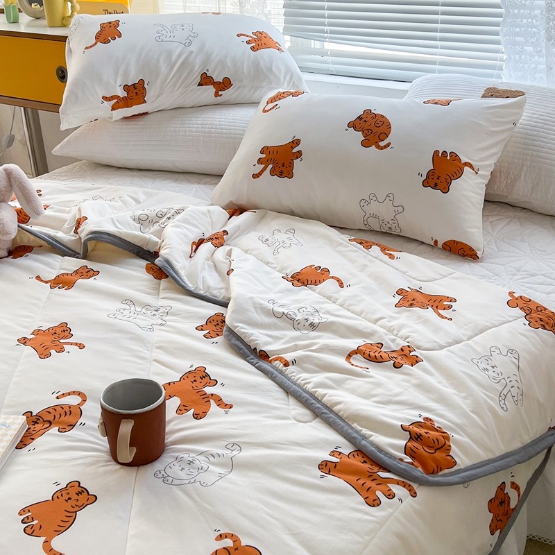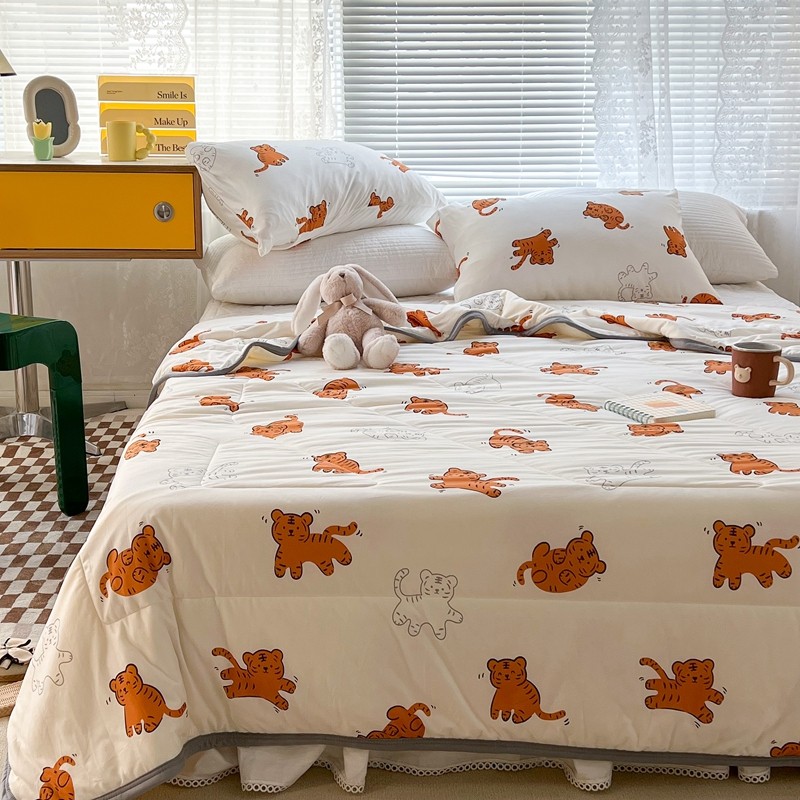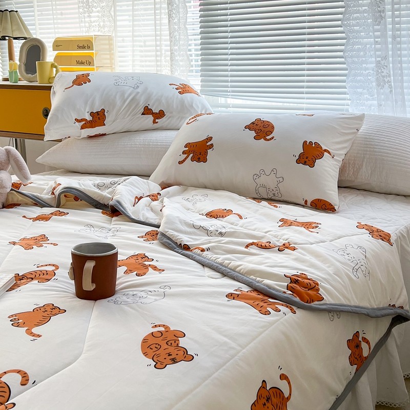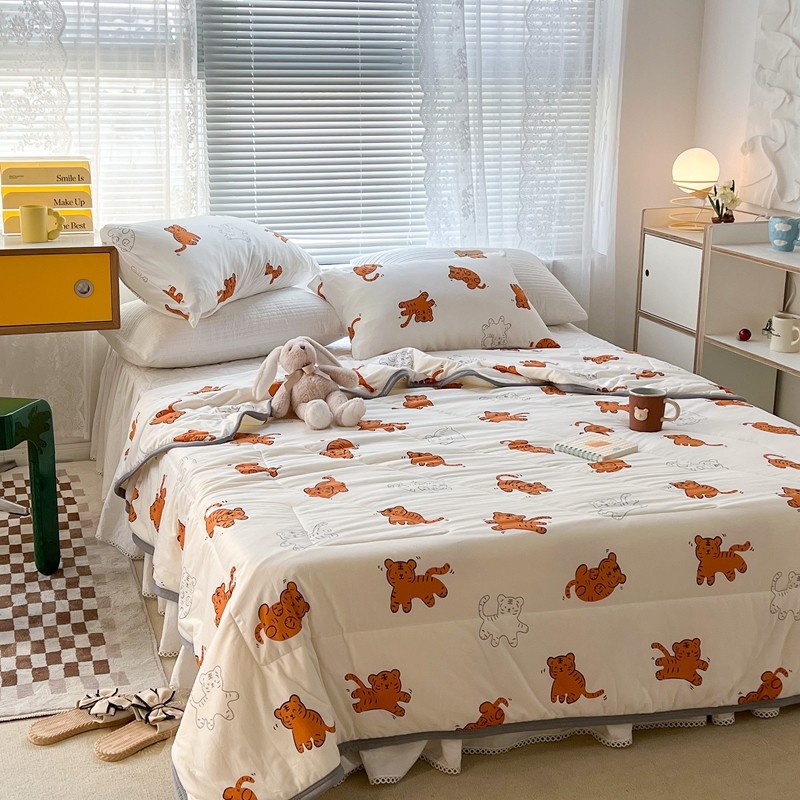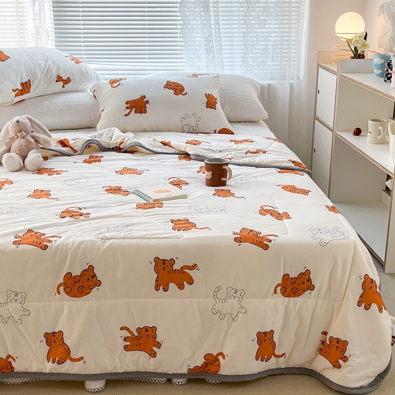 商品名称:昔可 2022新款包边牛奶丝针织夏被 橙色小老虎