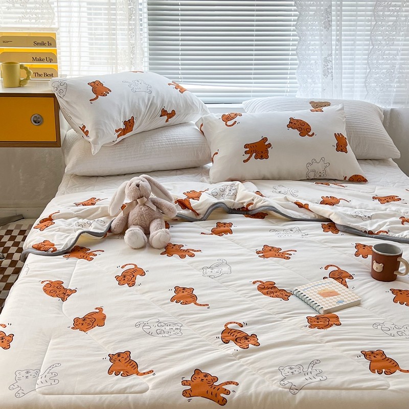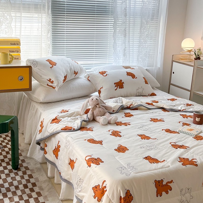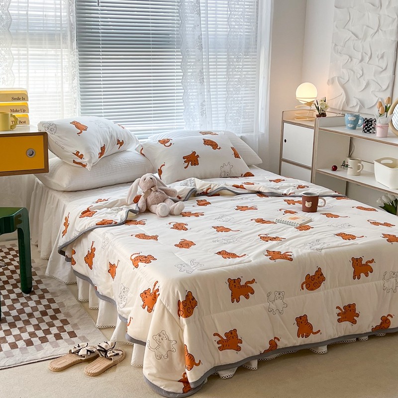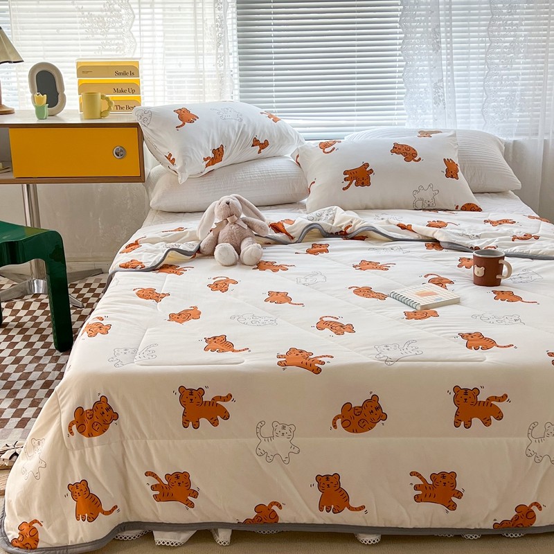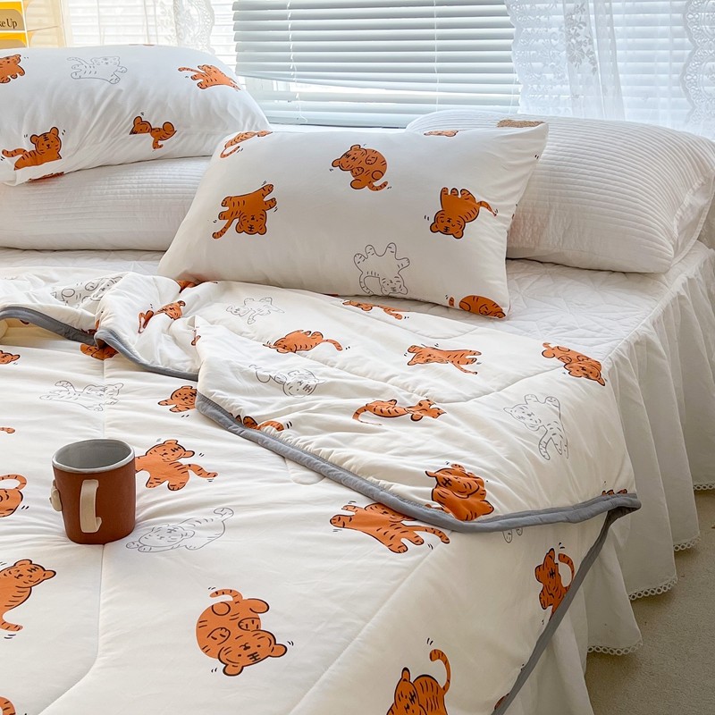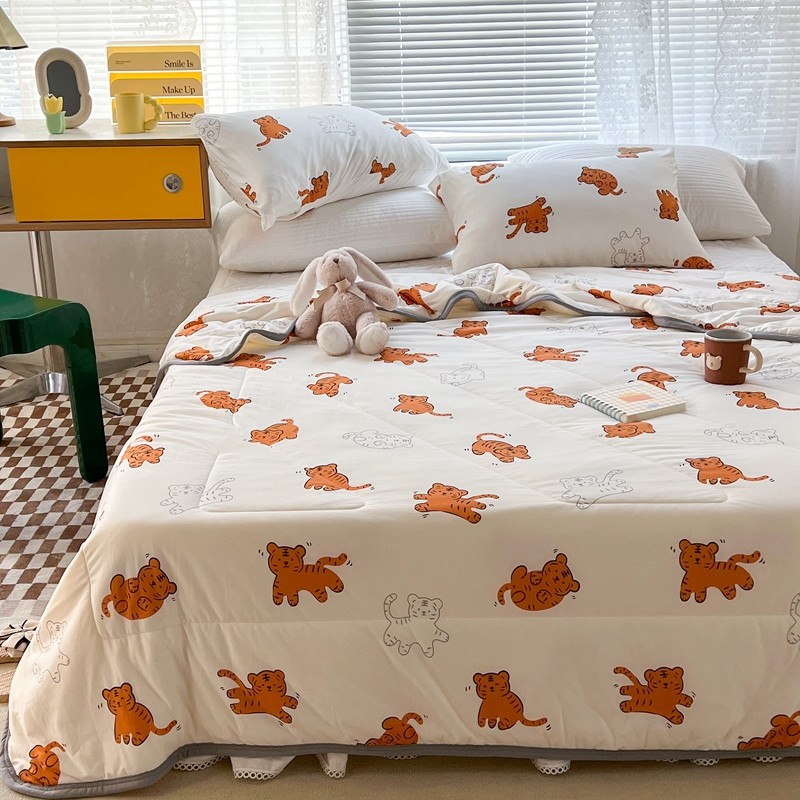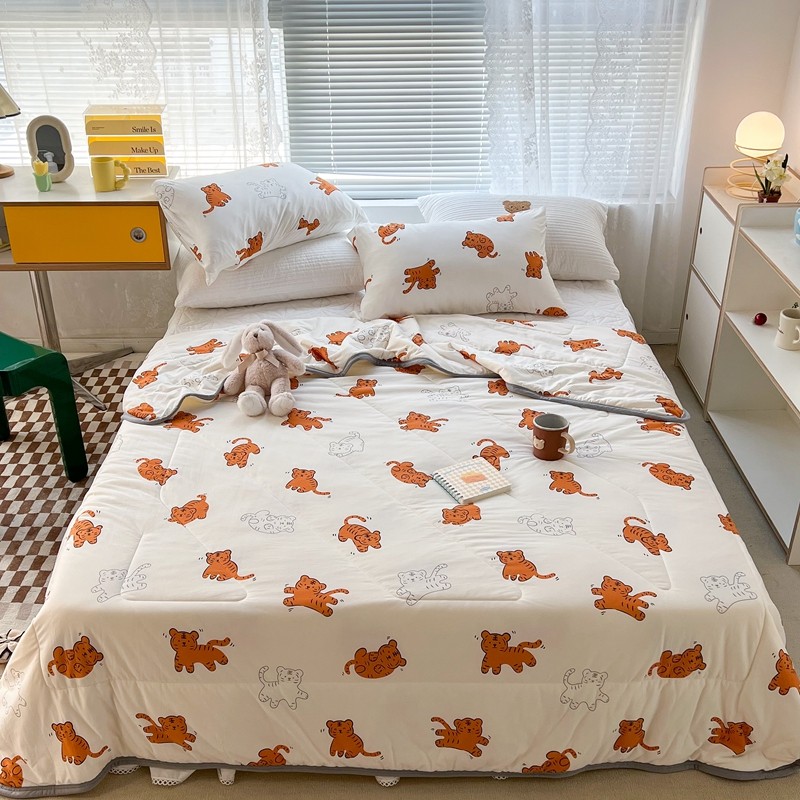 商品名称:昔可 2022新款包边牛奶丝针织夏被 橙色小老虎