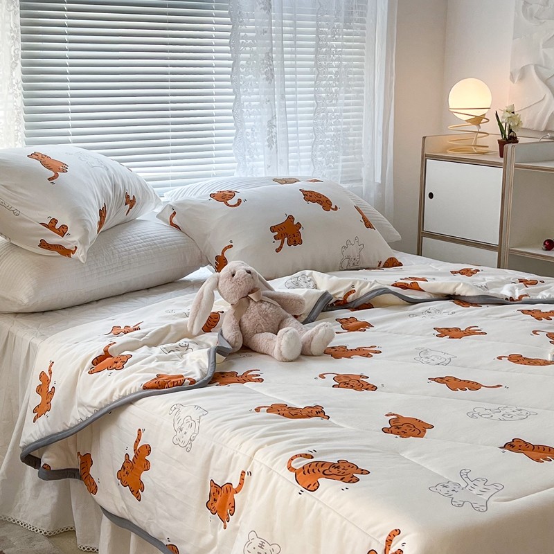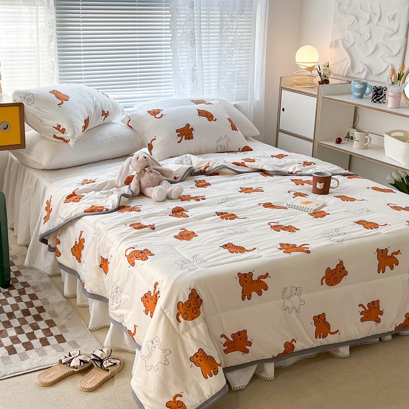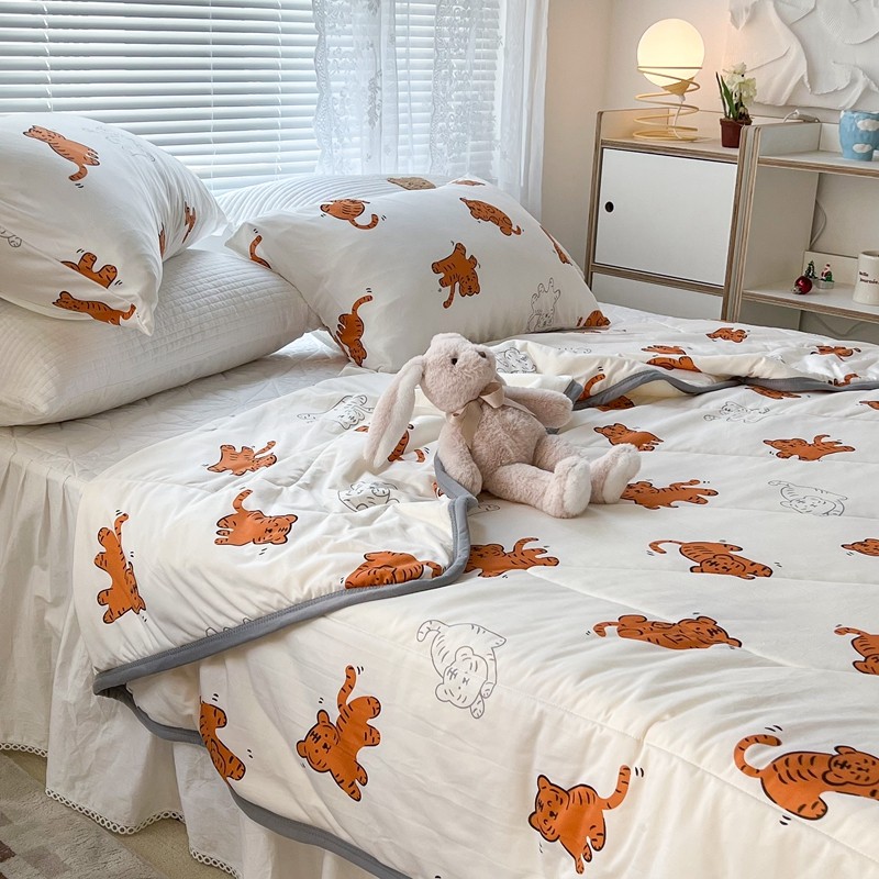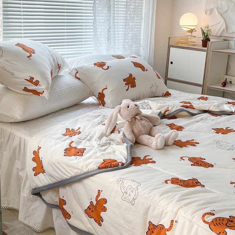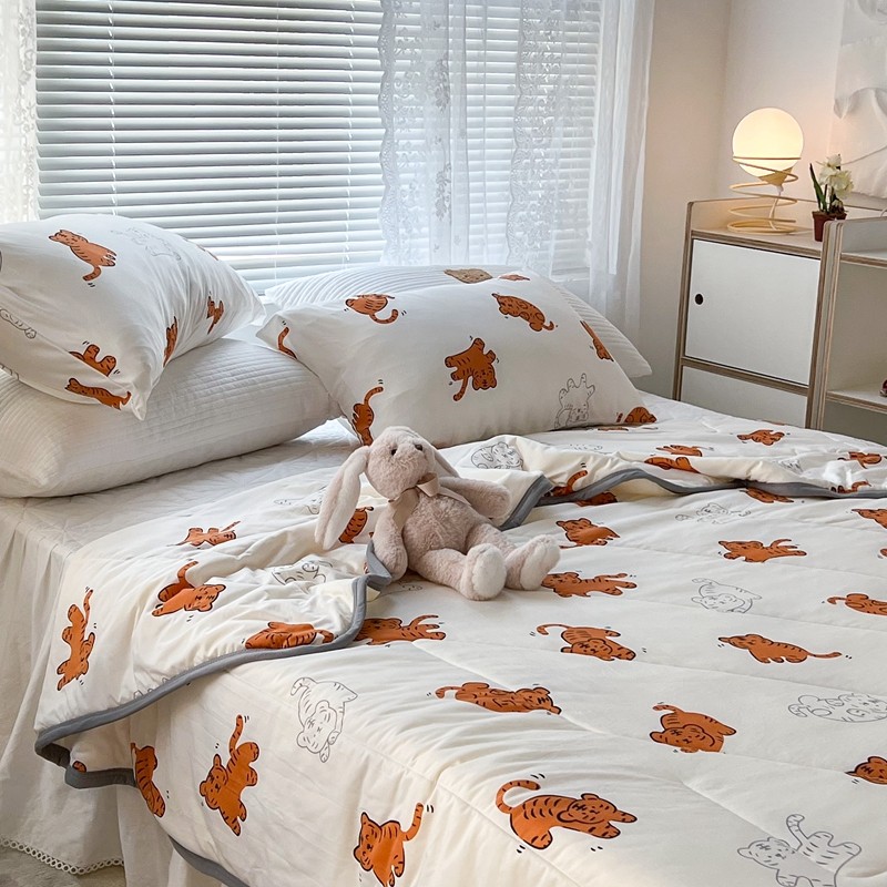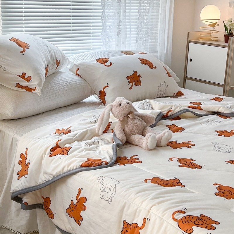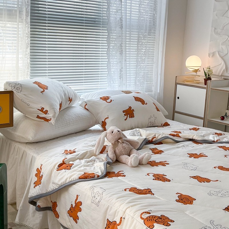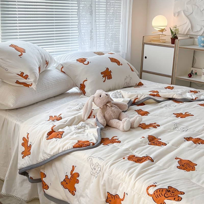 昔可 2022新款包边牛奶丝针织夏被 橙色小老虎