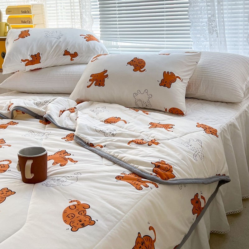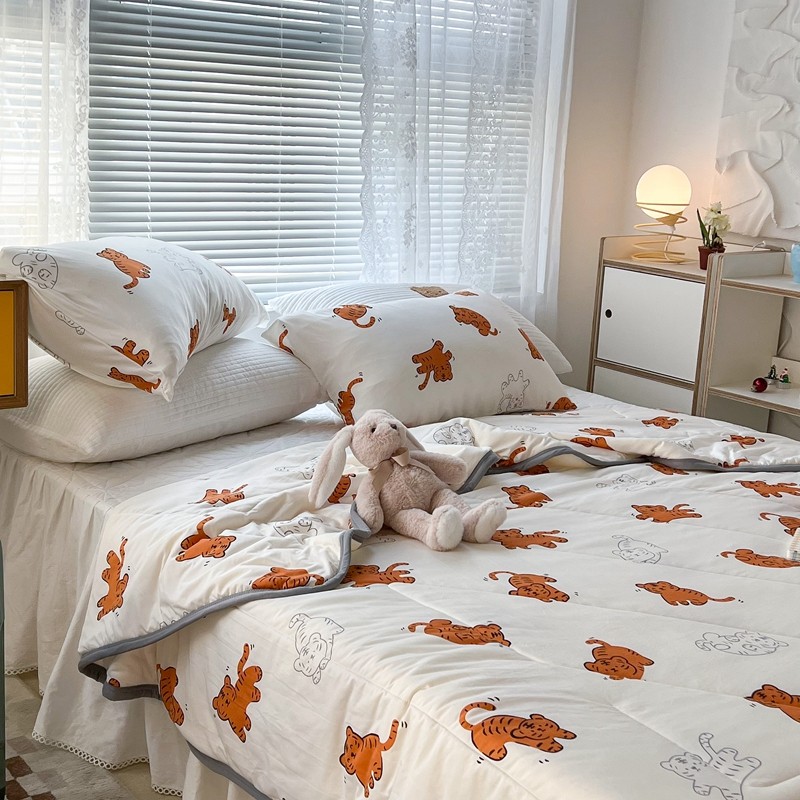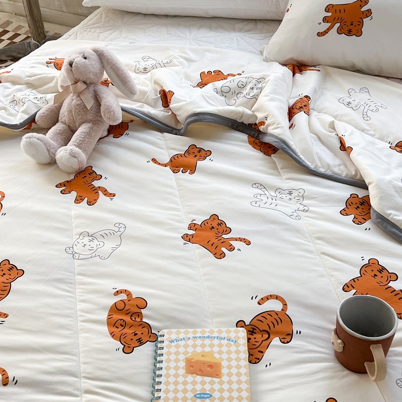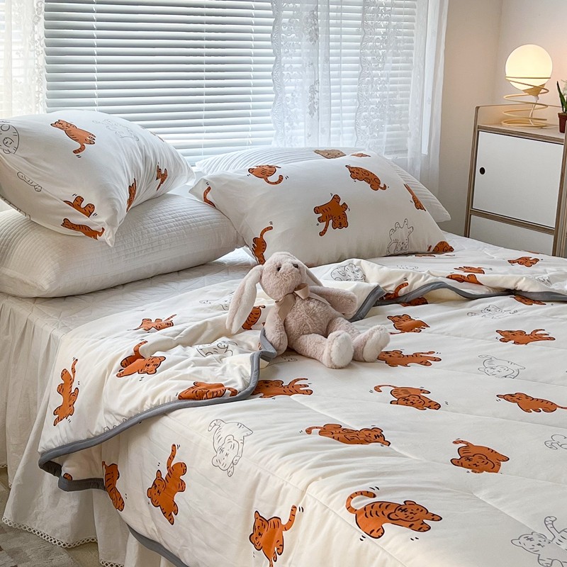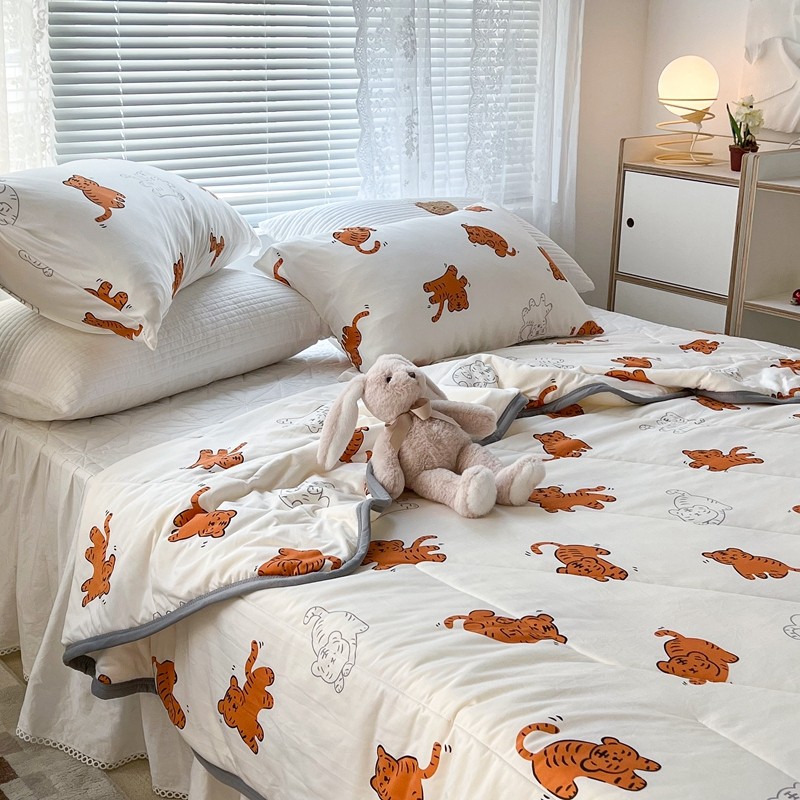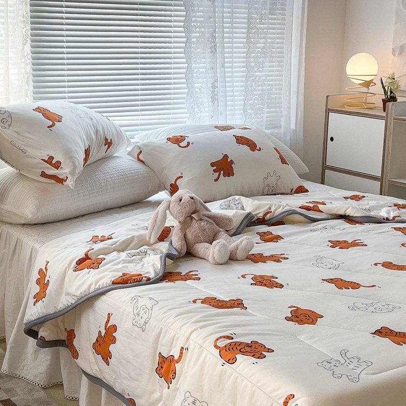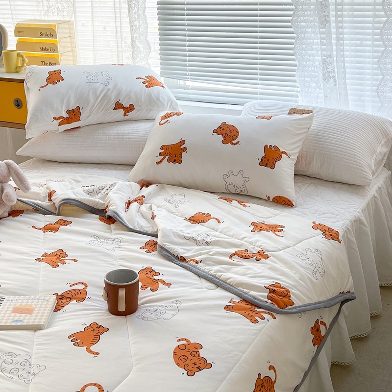 昔可 2022新款包边牛奶丝针织夏被 橙色小老虎