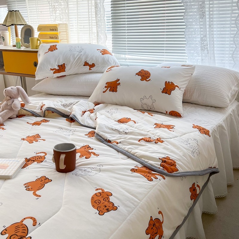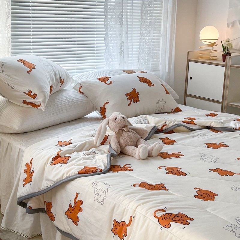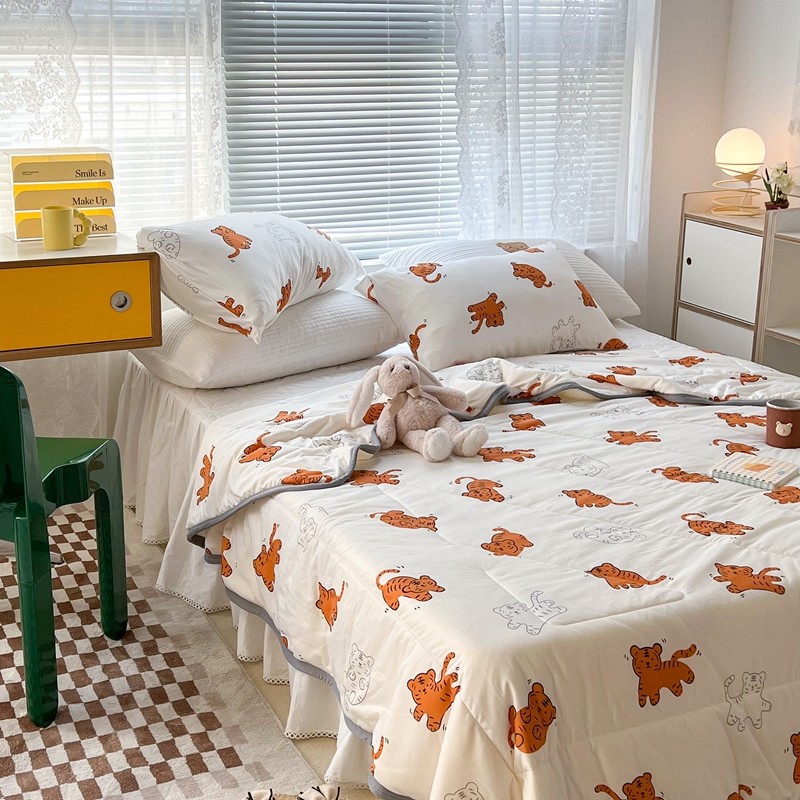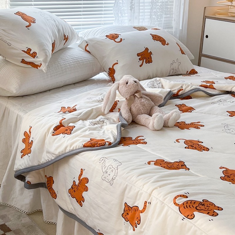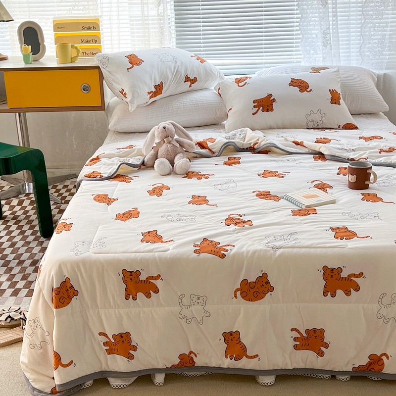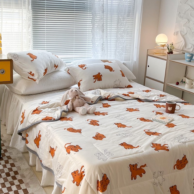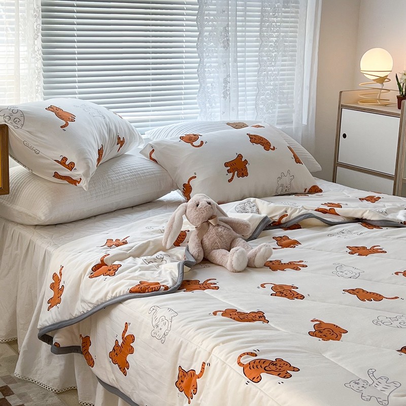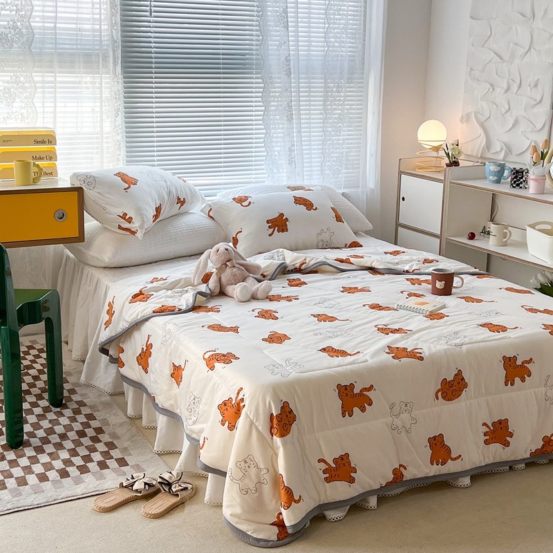 昔可 2022新款包边牛奶丝针织夏被 橙色小老虎