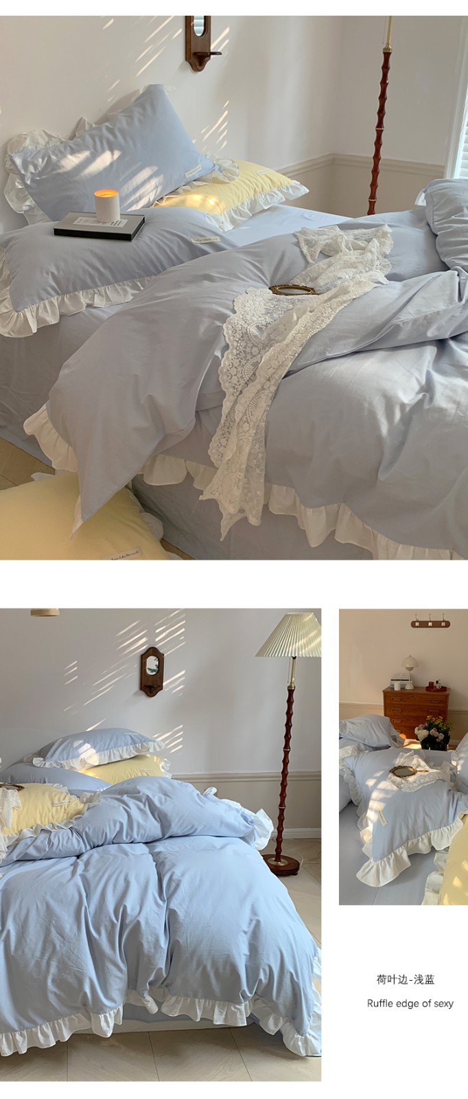 荷叶边全棉水洗棉四件套奶油纯色韩系公主风被套ins网红,荷叶边鹅黄,荷叶边琥珀,荷叶边螺旋藻绿,荷叶边藕荷,荷叶边千夏紫色,荷叶边浅蓝,荷叶边薇薇紫