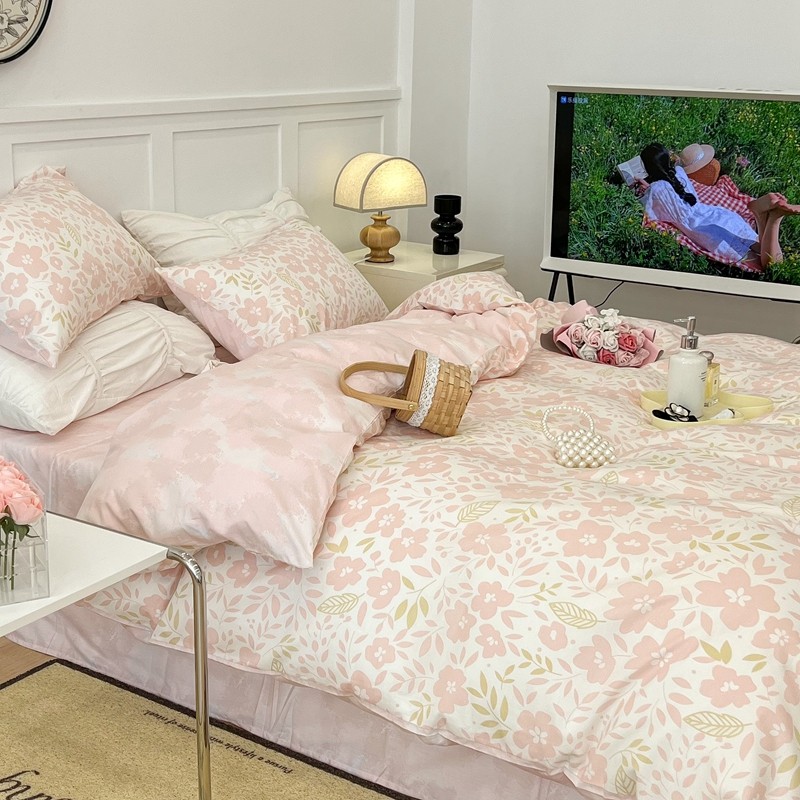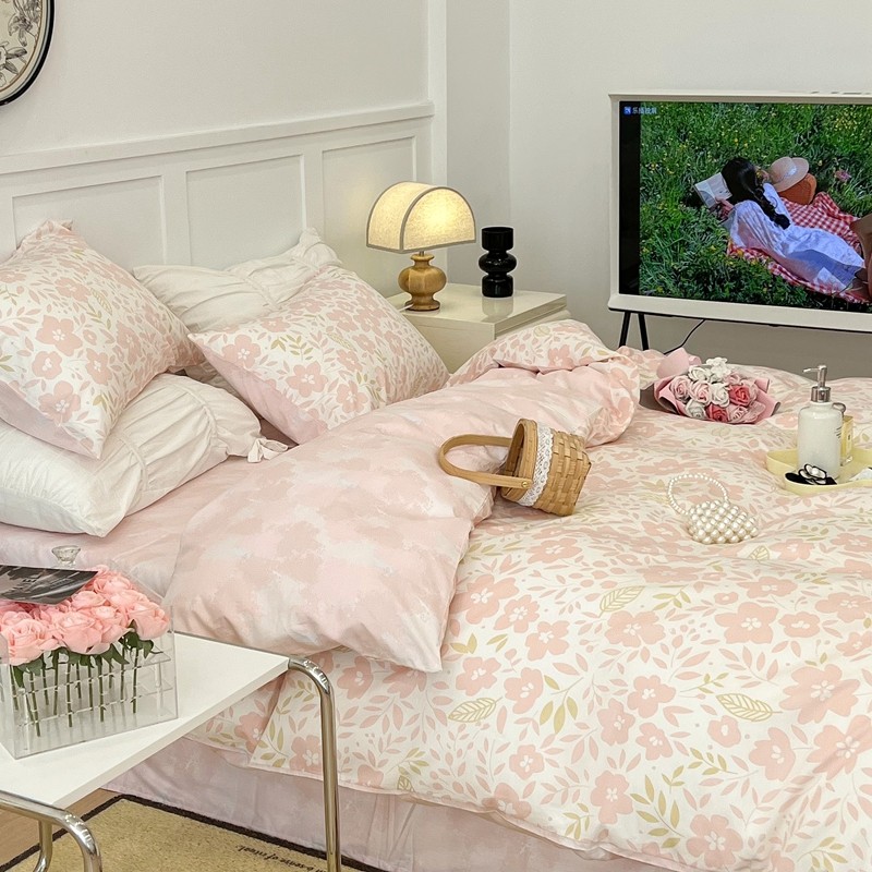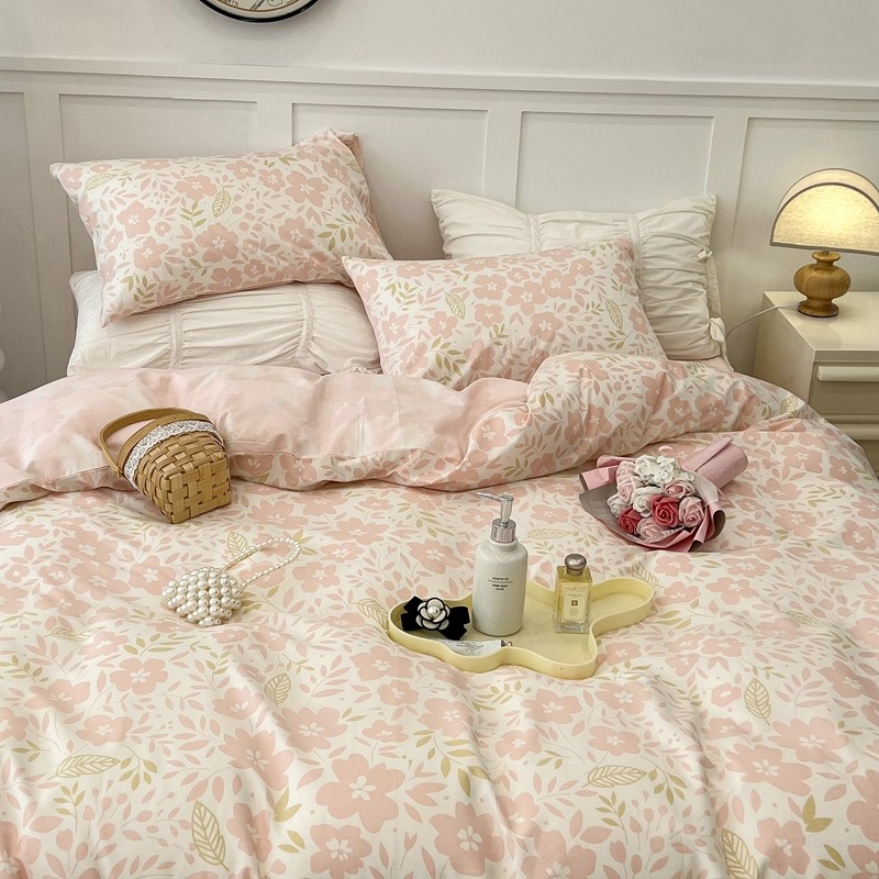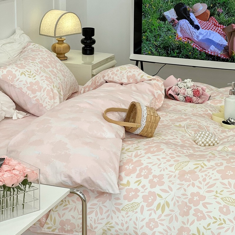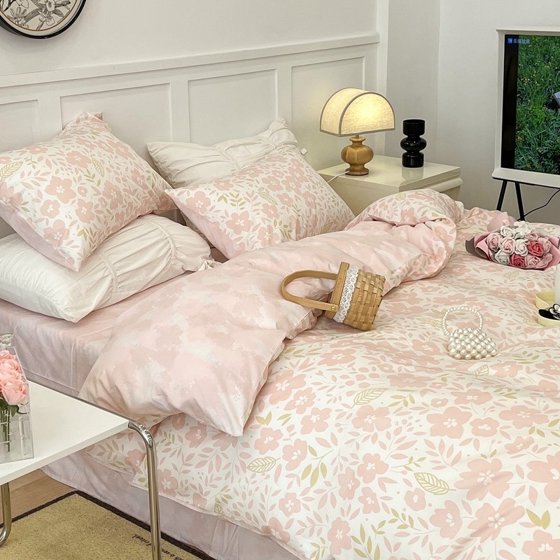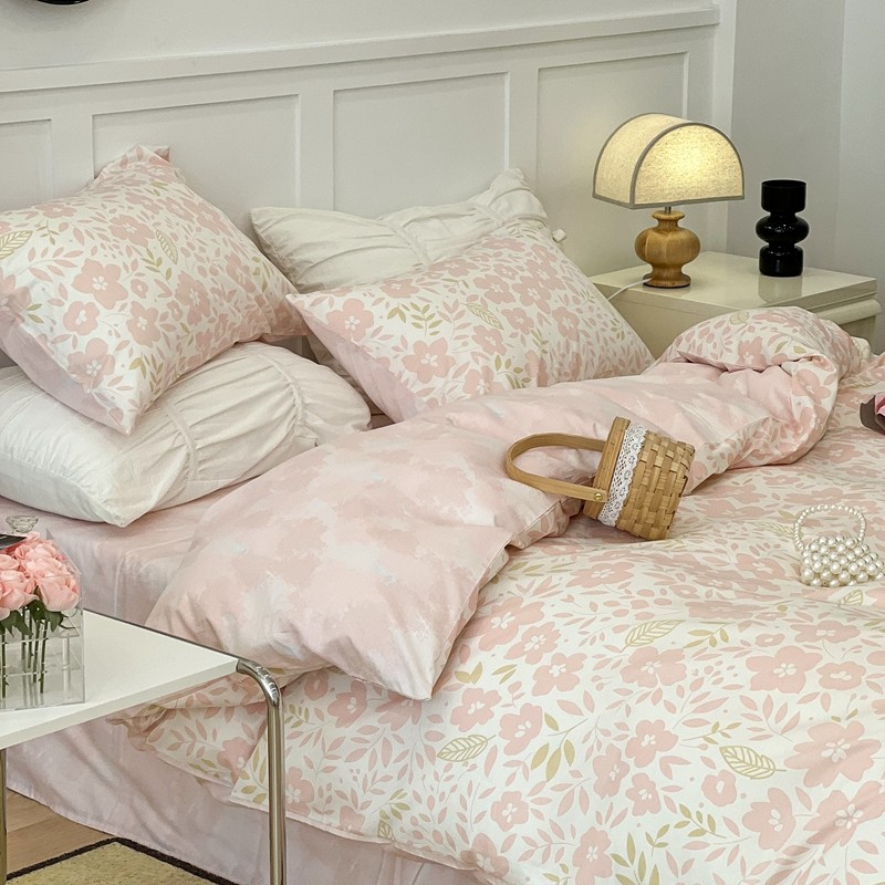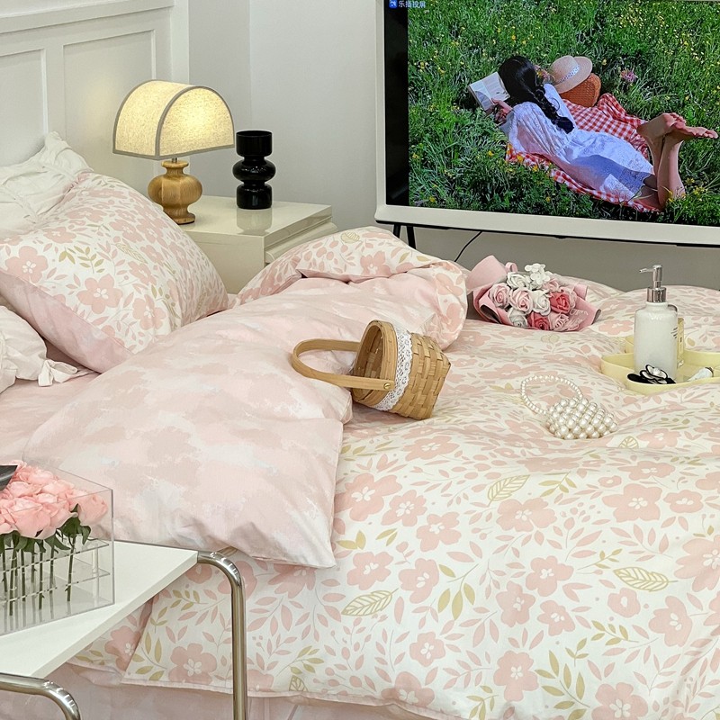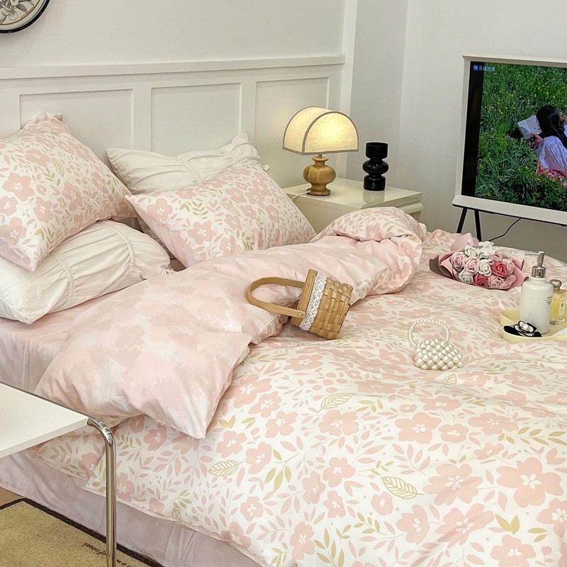 昔可 2022新款全棉梦幻花园系列印花四件套 春日小粉花