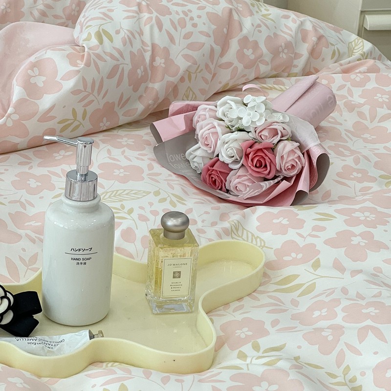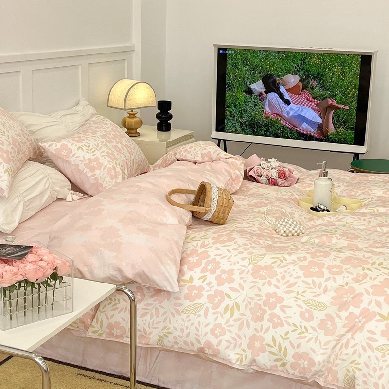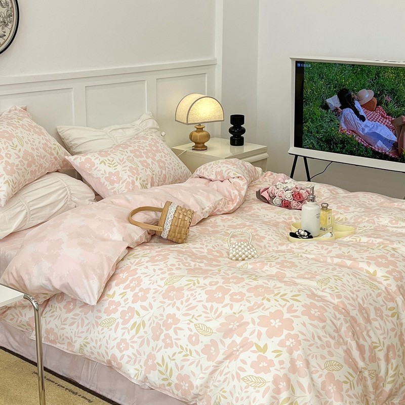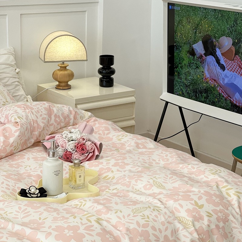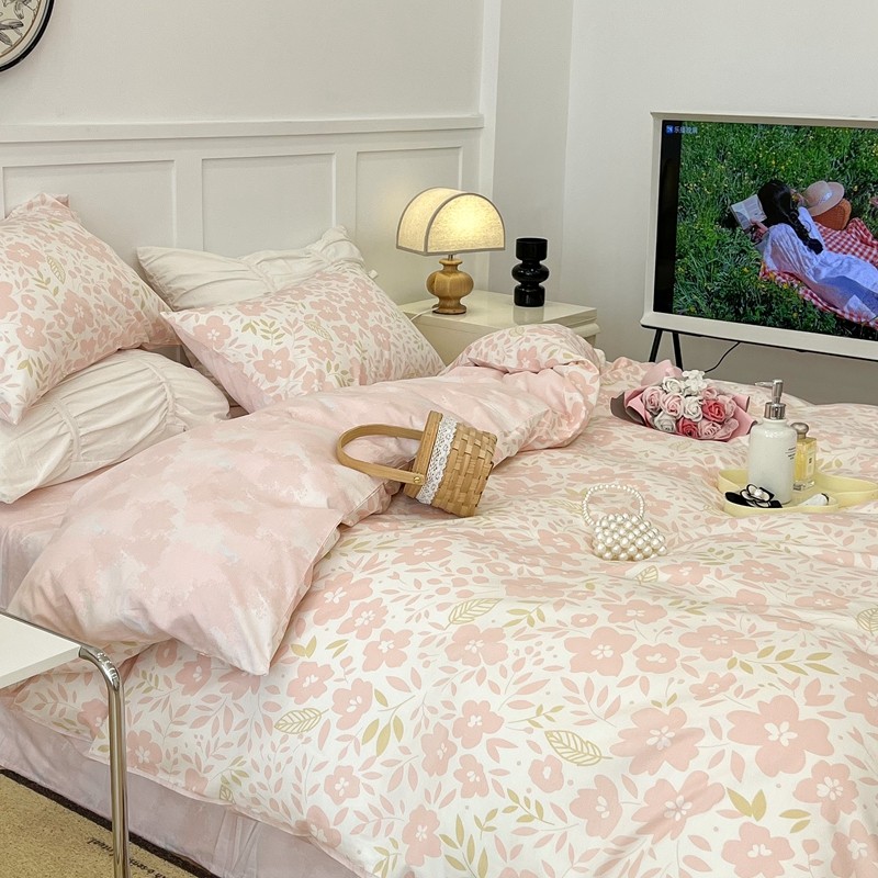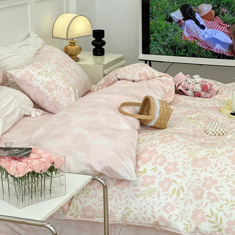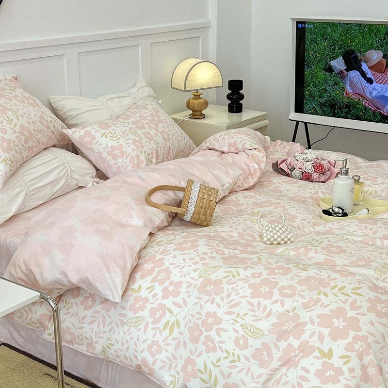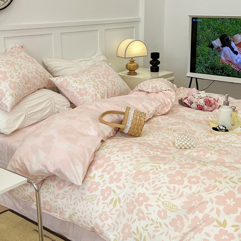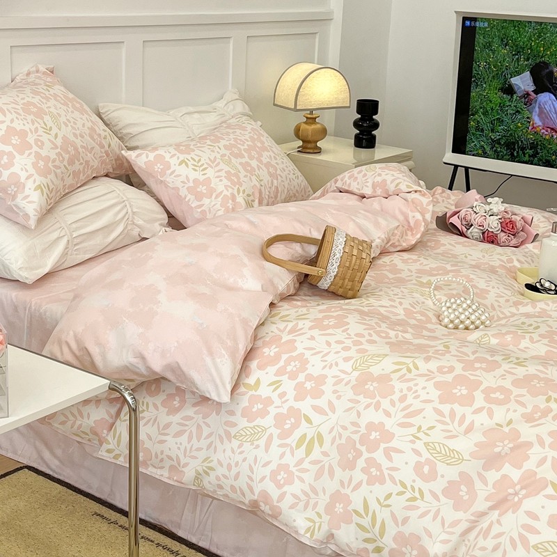 昔可 2022新款全棉梦幻花园系列印花四件套 春日小粉花