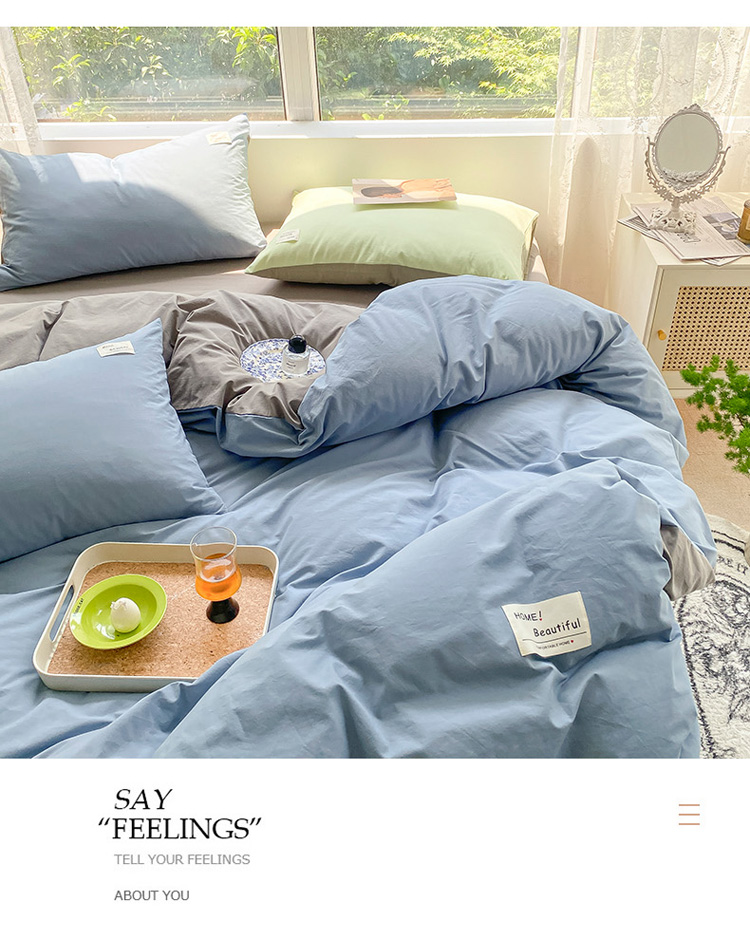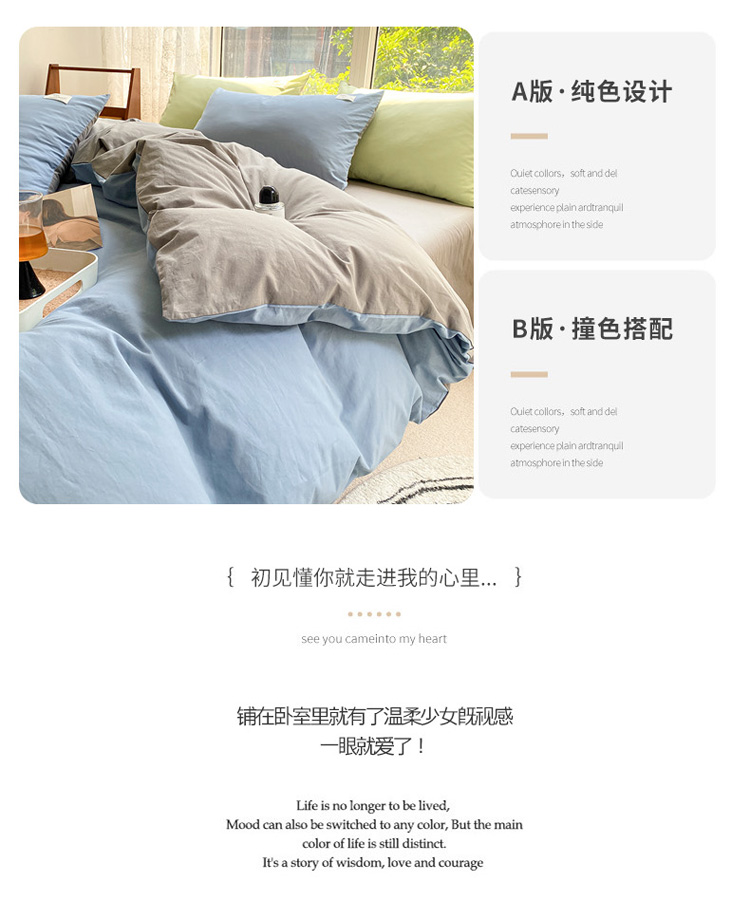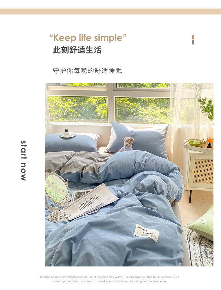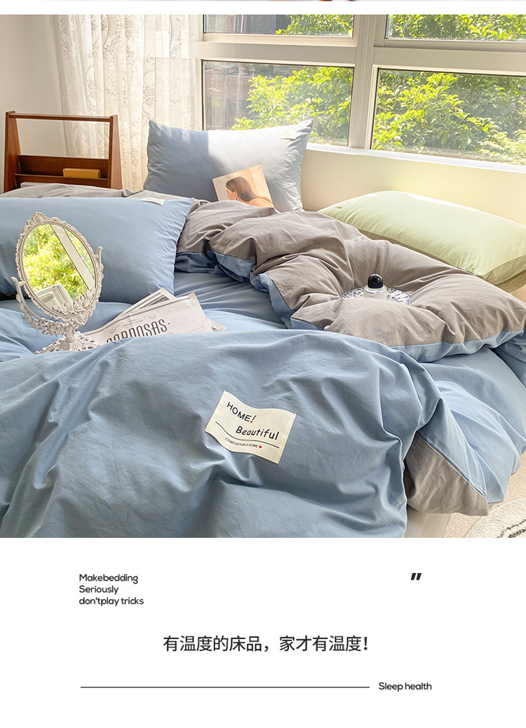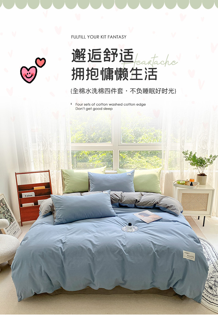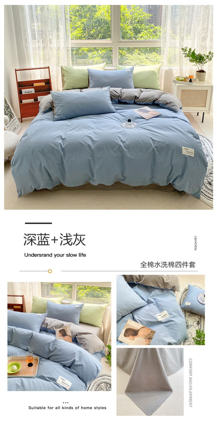 当前位置: 91家纺网 > 商品网购 > 床品套件 > 四件套 > 全棉普通四件套 > 寐居 2023新款全棉水洗棉四件套 深蓝+灰