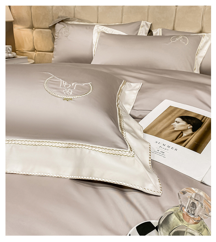 爱缦 2022新款爱莎公主系列100支长绒棉四件套 山灰