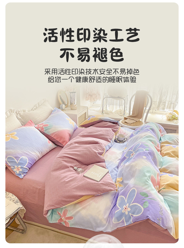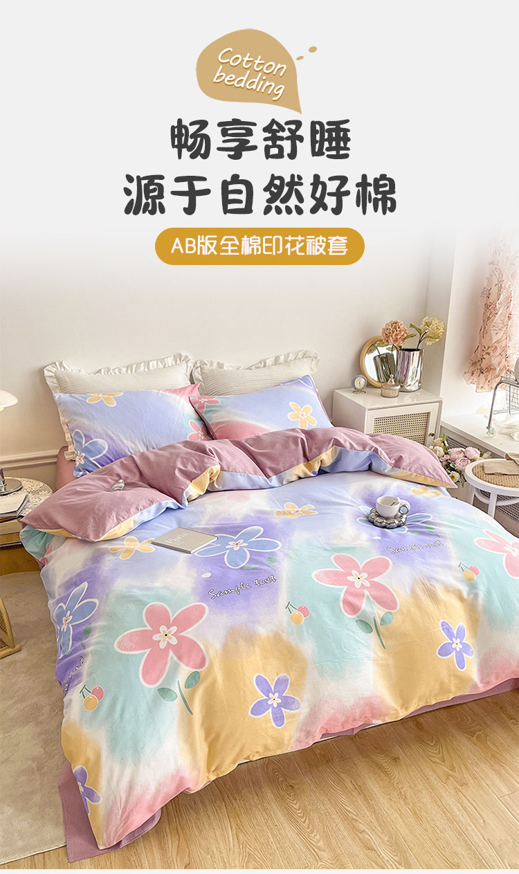 黑马家居2023新款全棉印花喷气12868套件-单被套 七色花语,七色花语