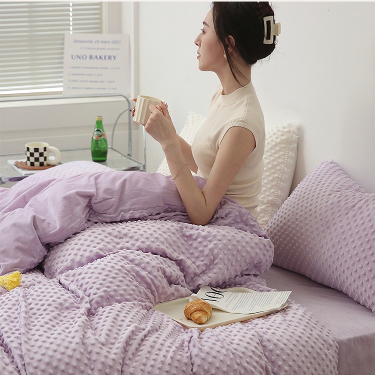 玛奇朵 2022升级版A类豆豆绒流苏系列三件套四件套 豆豆绒-香芋紫