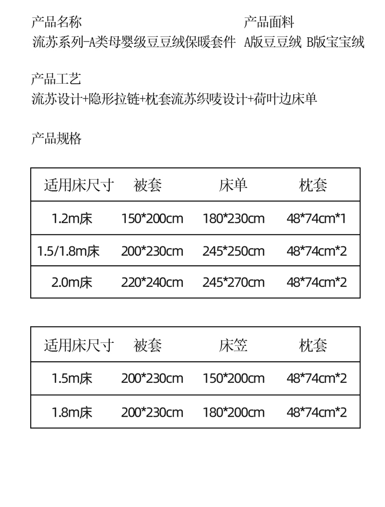 [{"sp_id":11,"sp_name":"\u989c\u8272\u5206\u7c7b","sp_format":2,"sp_list":[{"sp_value_id":657,"sp_value_name":"\u8c46\u8c46\u7ed2-\u9999\u828b\u7d2b","sp_value_image":{"id":999,"path":"https:\/\/img3.91jf.com\/qcloud\/goods\/20220803\/1659525216G97Do4.jpg_30_30.jpg"},"sp_value_video":{"id":0,"img":"","path":"","time":0,"download_num":0,"play_num":0},"price":"120.00","storage":2997,"weight":"2.340","is_check_weight":1,"plus_price":"","sp_sort":158082087}]},{"sp_id":10,"sp_name":"\u9002\u7528\u5e8a\u5c3a\u5bf8","sp_format":1,"sp_list":[{"sp_value_id":765,"sp_value_name":"1.2m\u5e8a\u5355\u6b3e\u4e09\u4ef6\u5957","sp_value_image":{"id":0,"path":""},"sp_value_video":{"id":0,"img":"","path":"","time":0,"download_num":0,"play_num":0},"price":"120.00","storage":499,"weight":"2.340","is_check_weight":1,"plus_price":"","sp_sort":158082087},{"sp_value_id":766,"sp_value_name":"1.5m\u5e8a\u5355\u6b3e\u56db\u4ef6\u5957","sp_value_image":{"id":0,"path":""},"sp_value_video":{"id":0,"img":"","path":"","time":0,"download_num":0,"play_num":0},"price":"140.00","storage":500,"weight":"3.500","is_check_weight":0,"plus_price":"","sp_sort":158082088},{"sp_value_id":771,"sp_value_name":"1.8m\u5e8a\u5355\u6b3e\u56db\u4ef6\u5957","sp_value_image":{"id":0,"path":""},"sp_value_video":{"id":0,"img":"","path":"","time":0,"download_num":0,"play_num":0},"price":"140.00","storage":498,"weight":"3.500","is_check_weight":0,"plus_price":"","sp_sort":158082089},{"sp_value_id":772,"sp_value_name":"2.0m\u5e8a\u5355\u6b3e\u56db\u4ef6\u5957","sp_value_image":{"id":0,"path":""},"sp_value_video":{"id":0,"img":"","path":"","time":0,"download_num":0,"play_num":0},"price":"155.00","storage":500,"weight":"3.700","is_check_weight":0,"plus_price":"","sp_sort":158082090},{"sp_value_id":778,"sp_value_name":"1.5m\u5e8a\u7b20\u6b3e\u56db\u4ef6\u5957","sp_value_image":{"id":0,"path":""},"sp_value_video":{"id":0,"img":"","path":"","time":0,"download_num":0,"play_num":0},"price":"150.00","storage":500,"weight":"3.400","is_check_weight":0,"plus_price":"","sp_sort":158082091},{"sp_value_id":779,"sp_value_name":"1.8m\u5e8a\u7b20\u6b3e\u56db\u4ef6\u5957","sp_value_image":{"id":0,"path":""},"sp_value_video":{"id":0,"img":"","path":"","time":0,"download_num":0,"play_num":0},"price":"150.00","storage":500,"weight":"3.500","is_check_weight":0,"plus_price":"","sp_sort":158082092}]}]
