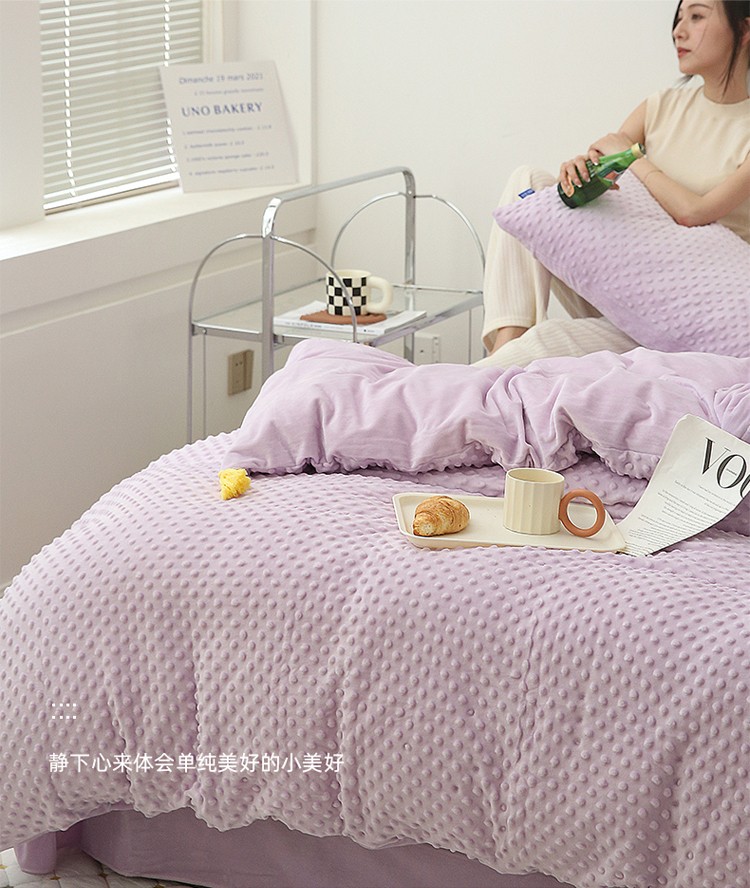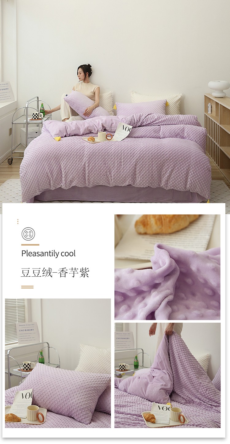 商品名称:玛奇朵 2022升级版A类豆豆绒流苏系列三件套四件套 豆豆绒-香芋紫