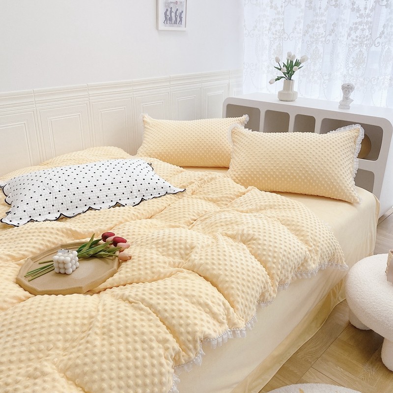 商品名称:玛奇朵 2022升级版A类豆豆绒梦露系列四件套 梦露-亮丽黄