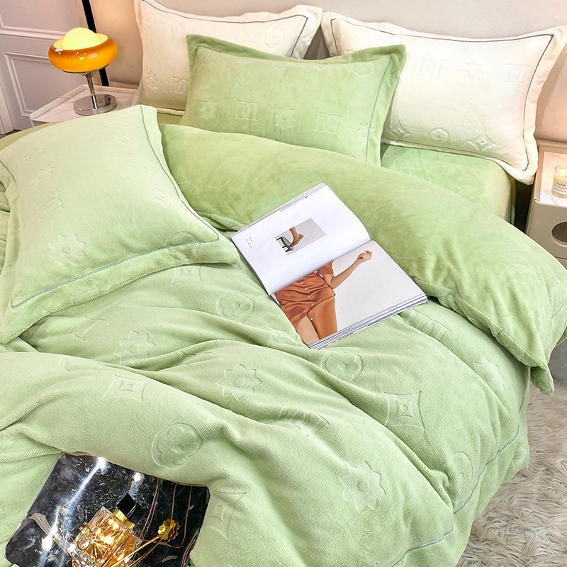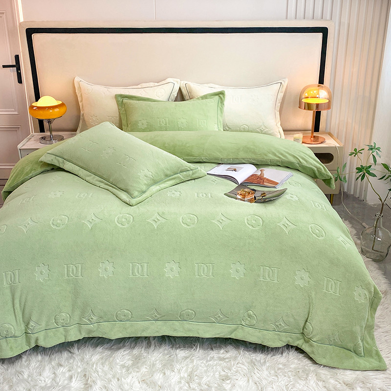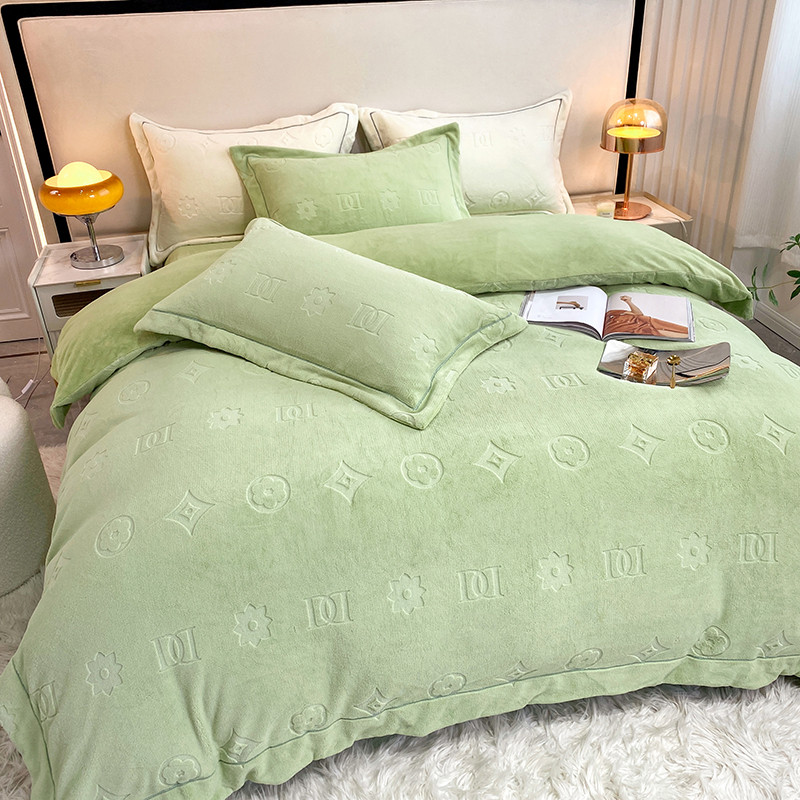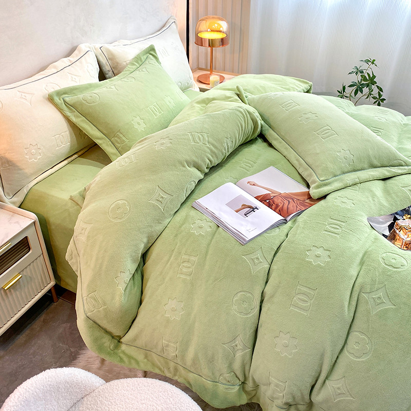 凡客家居 2022新款牛奶绒雕花系列四件套 布兰特-草绿色
