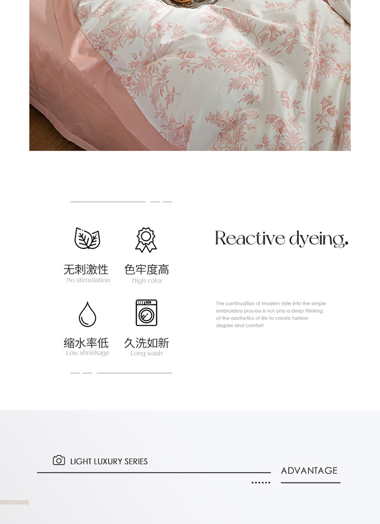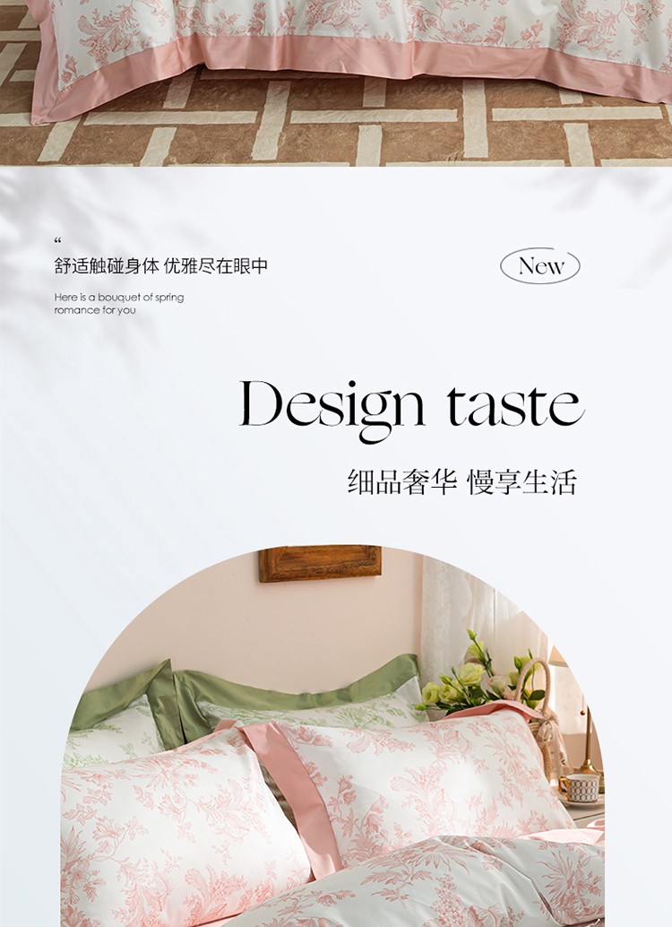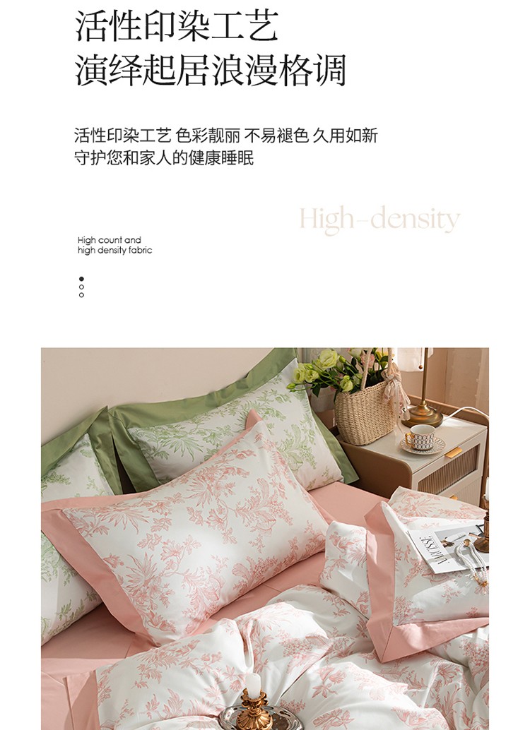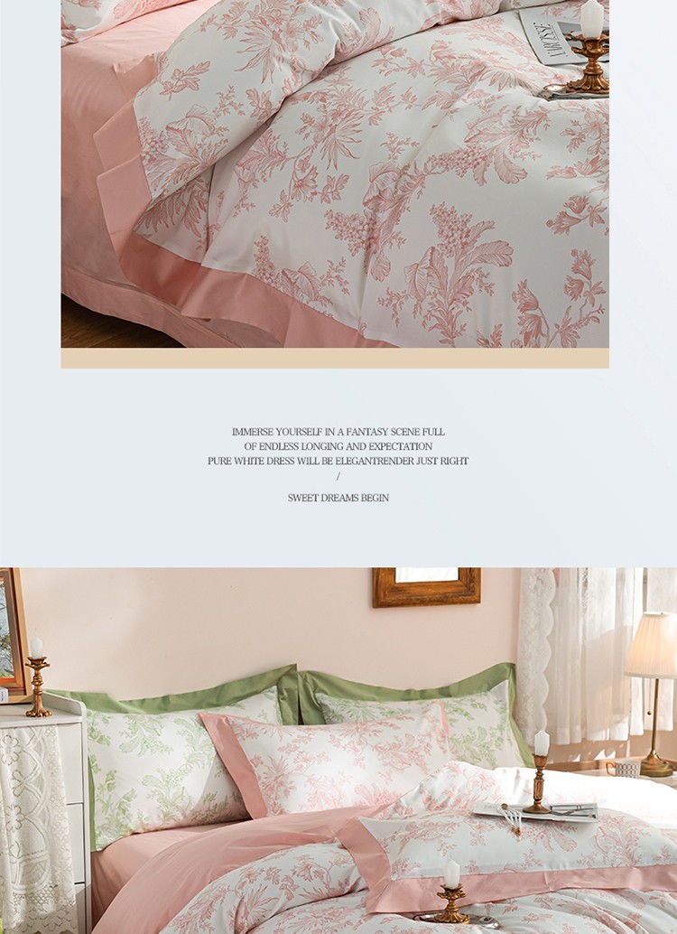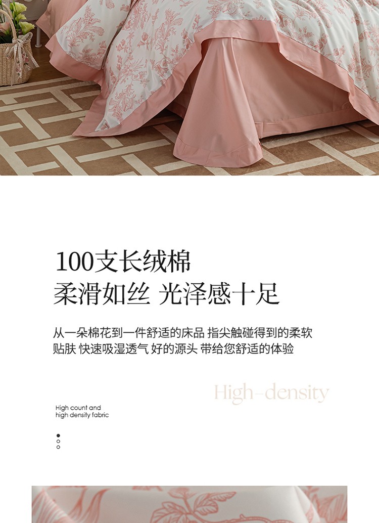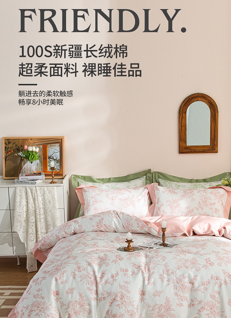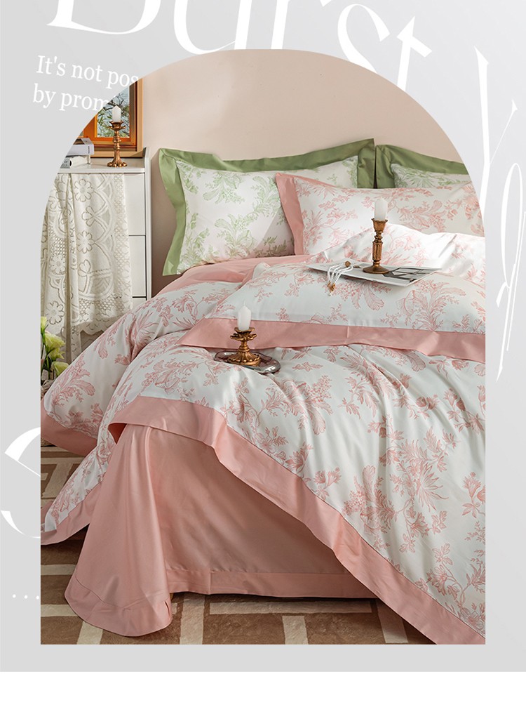 商品名称:安莱 2022新款100支长绒棉数码印花四件套-花屿 香芋粉