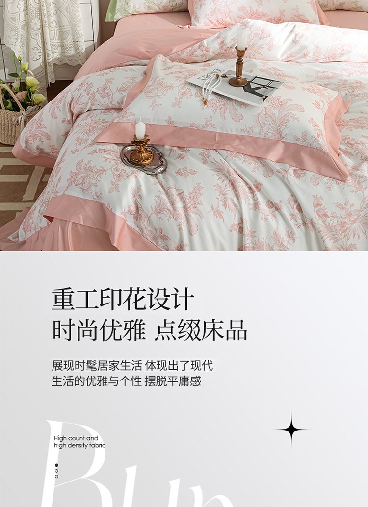 (总)安莱生活 2025新品天丝棉磨毛四件套-暖漾系列(风格二),暖漾-粉,暖漾-蓝