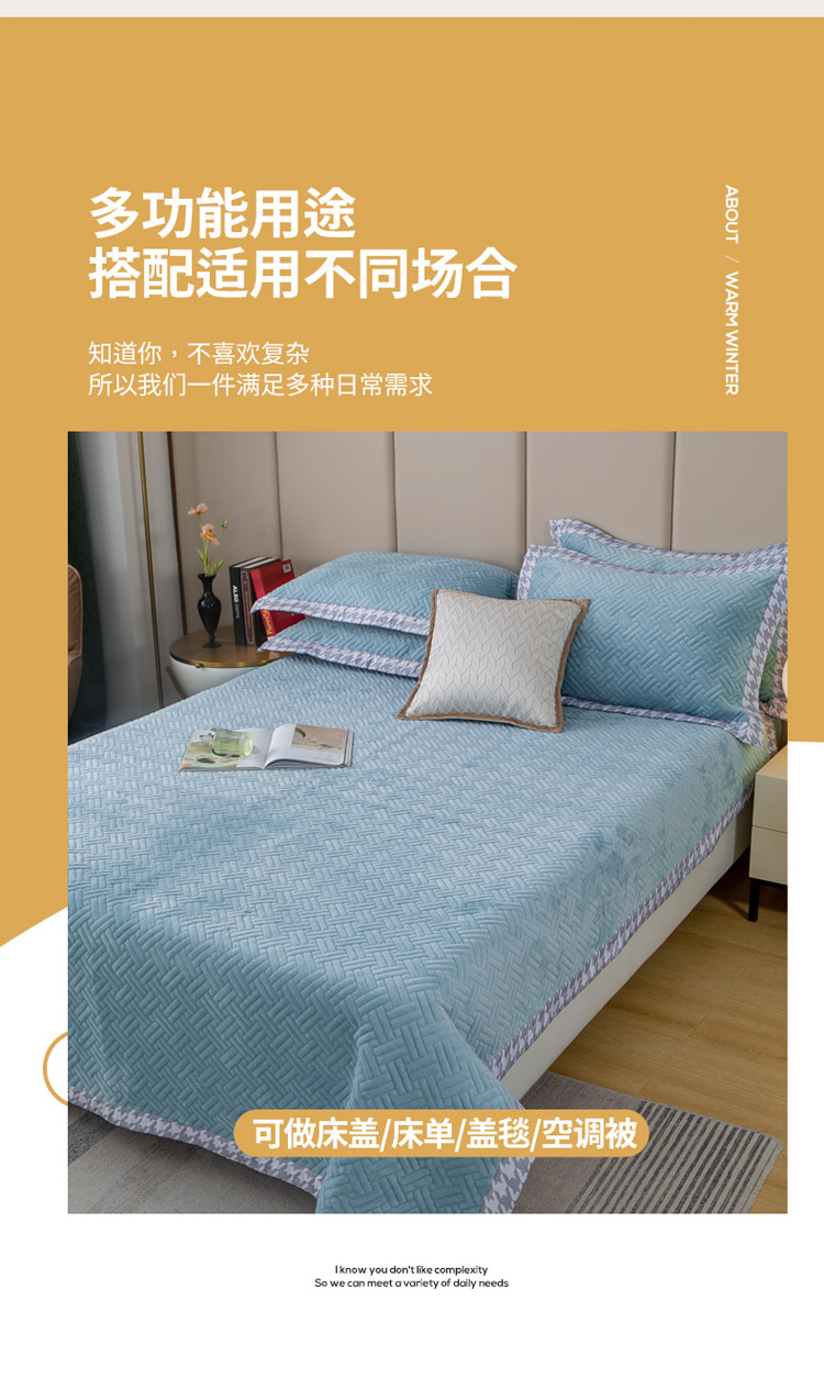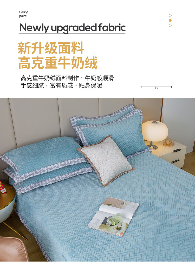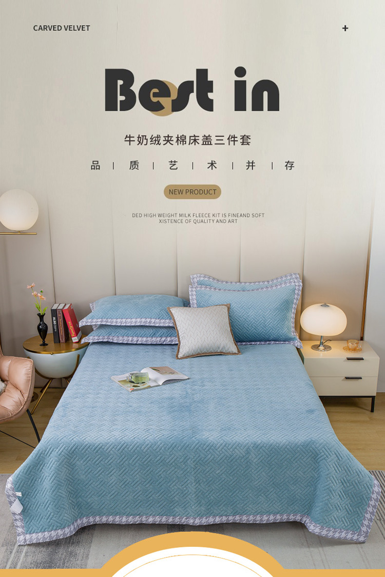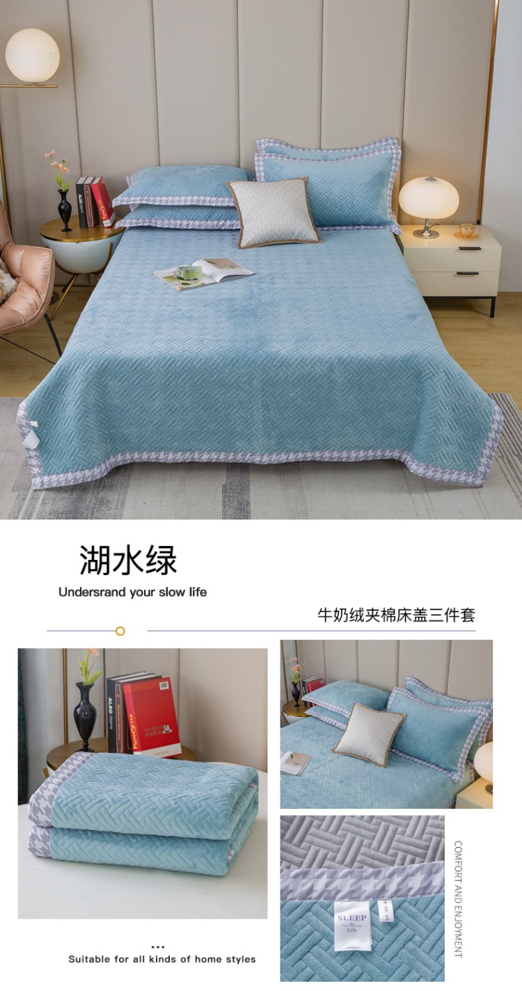 商品名称:羋多 2023新款数码边素色牛奶绒床盖三件套 湖水绿