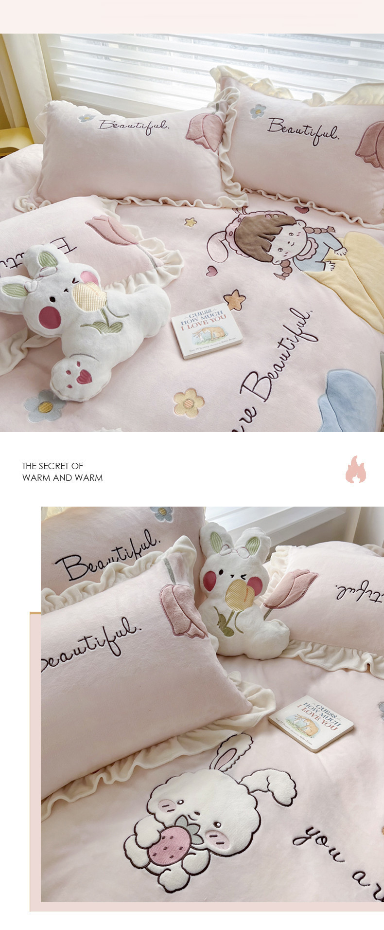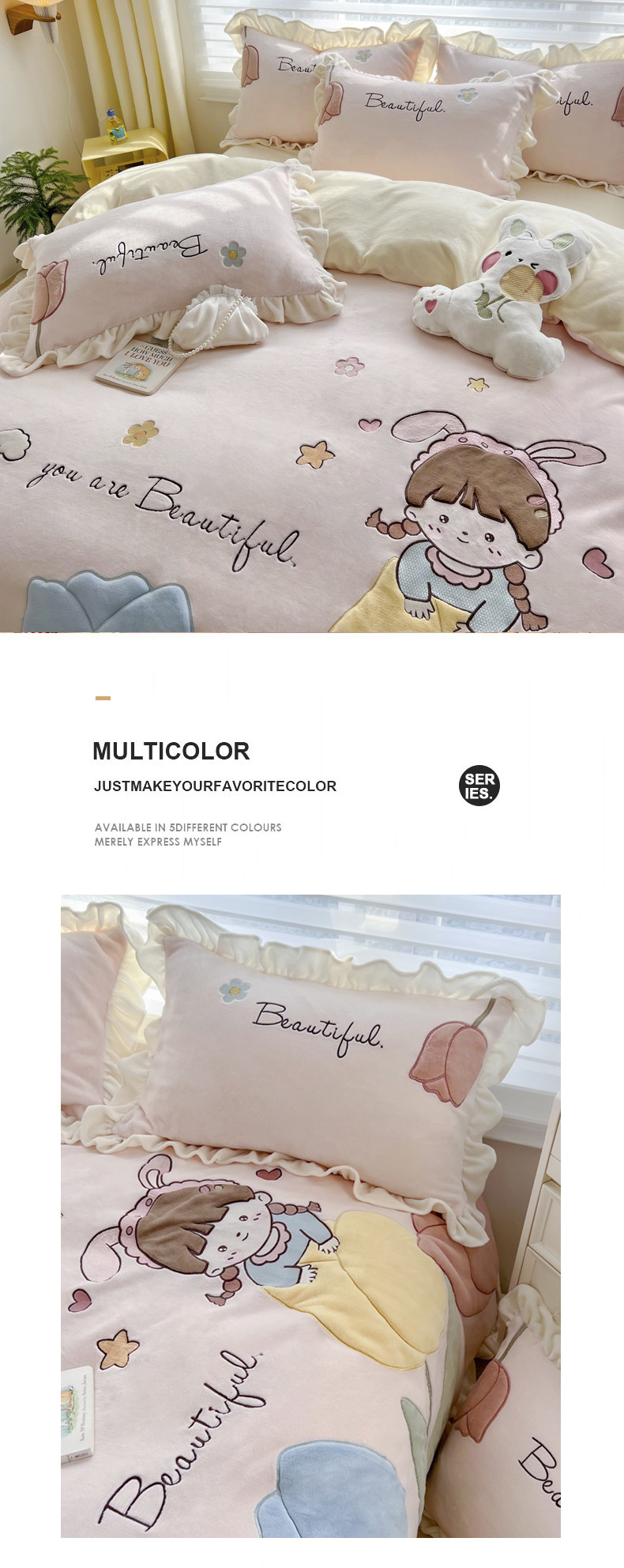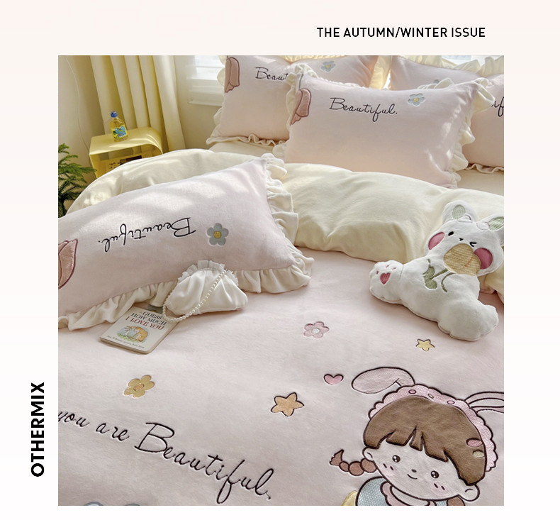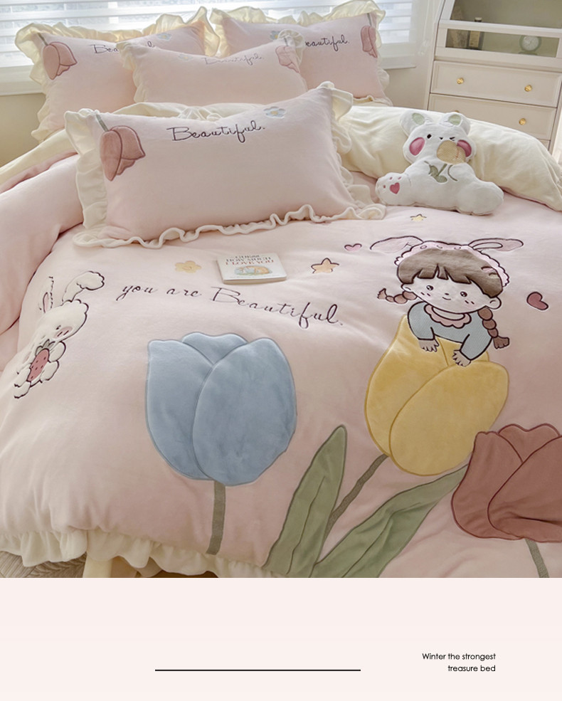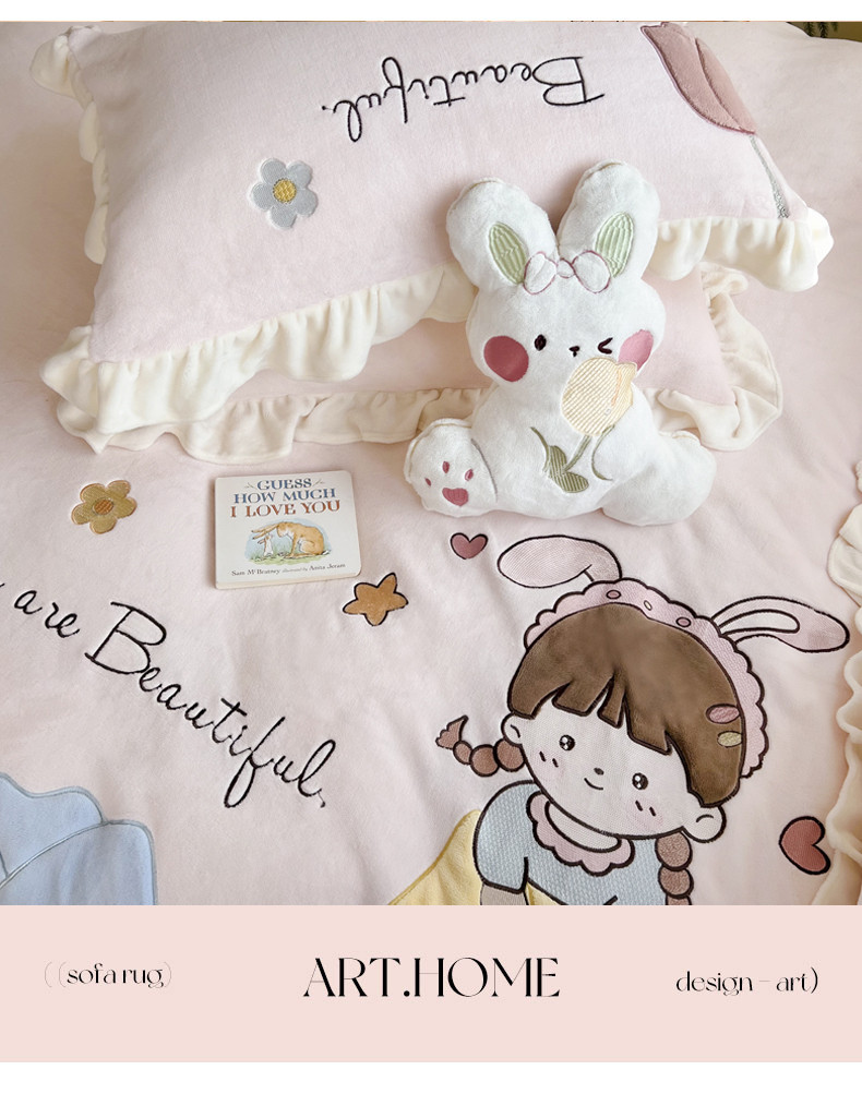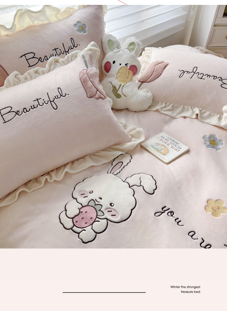 柠馨 2022新款230g牛奶绒贴布绣花可爱卡通四件套小甜心
