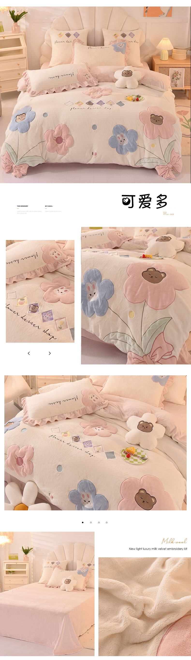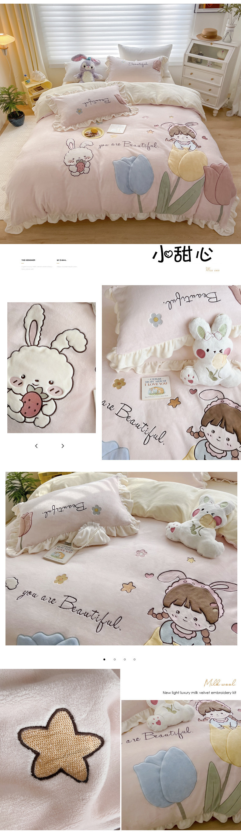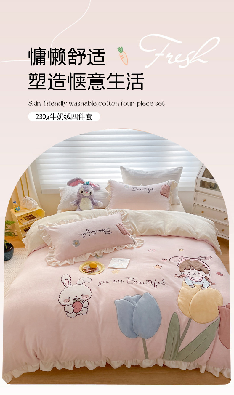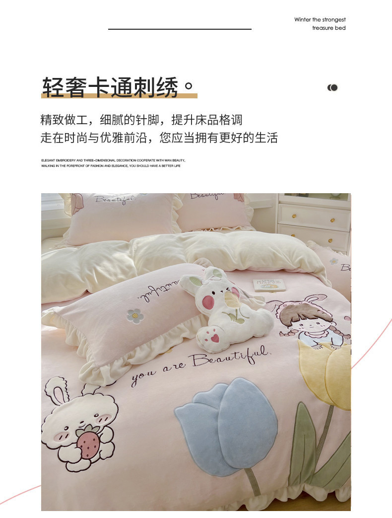 商品名称:柠馨 2022新款230g牛奶绒贴布绣花可爱卡通四件套小甜心