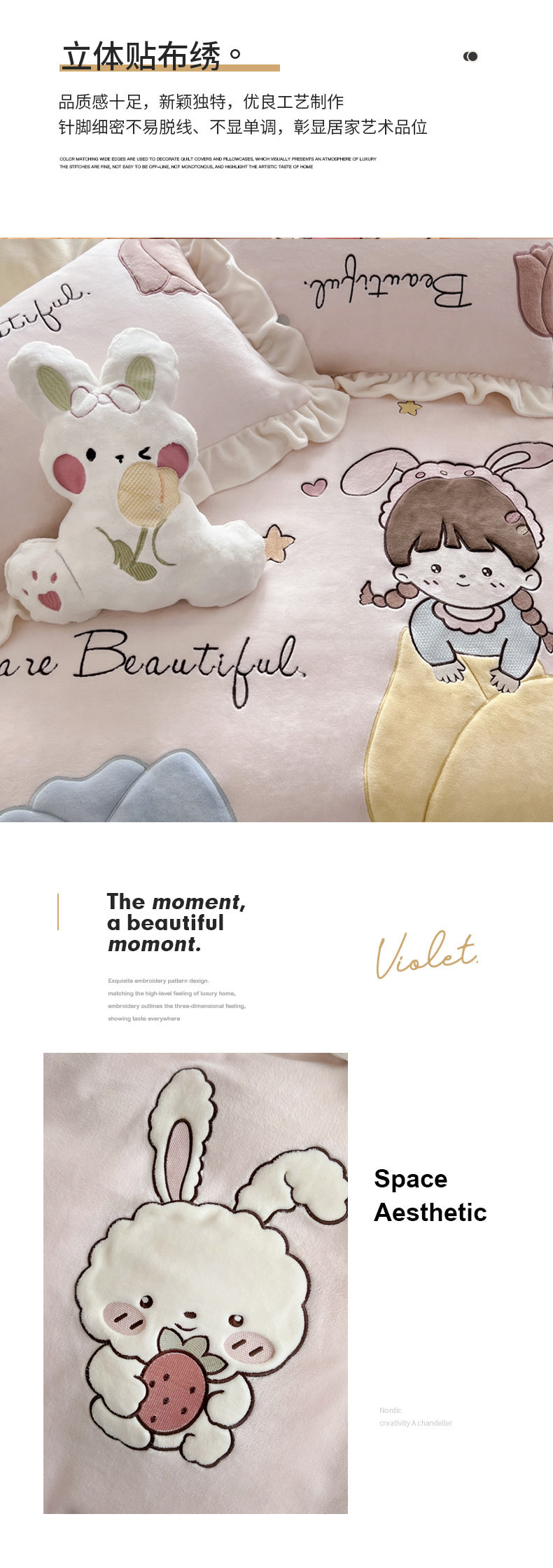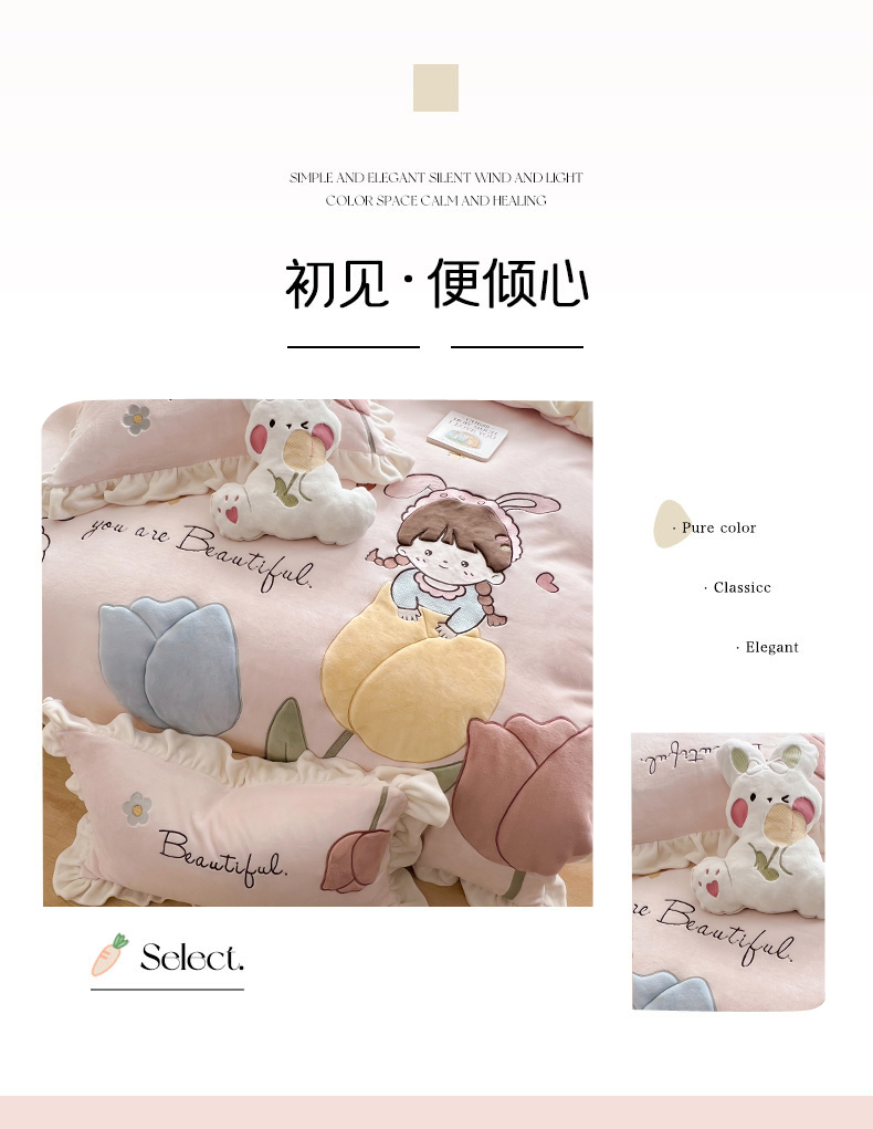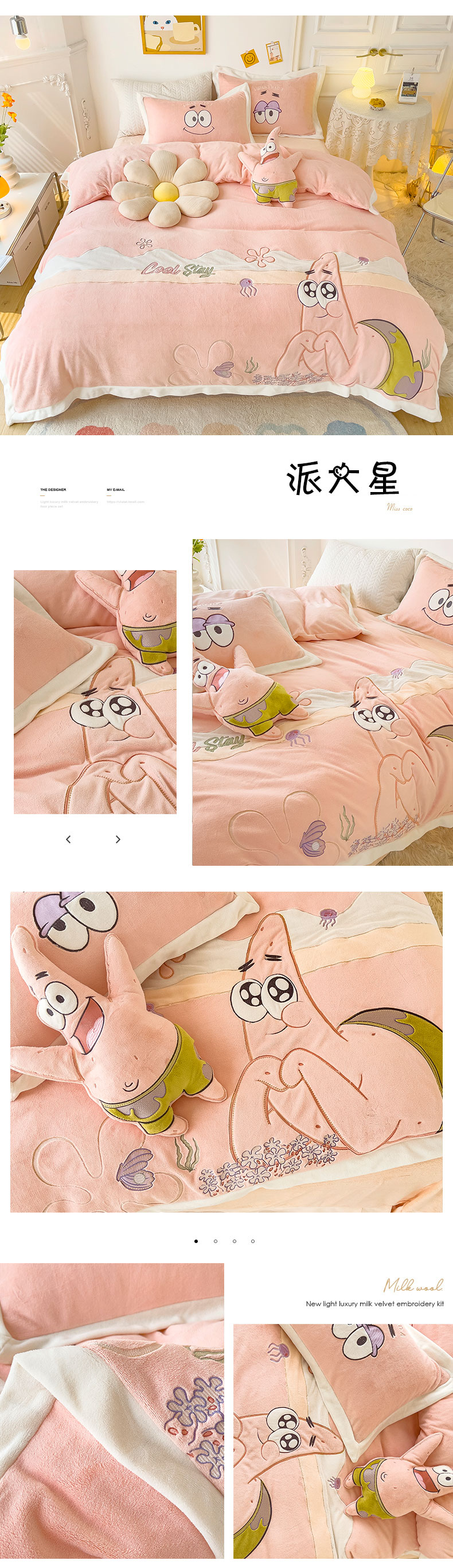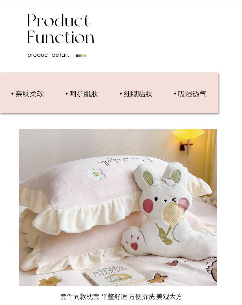 商品名称:柠馨 2022新款230g牛奶绒贴布绣花可爱卡通四件套小甜心