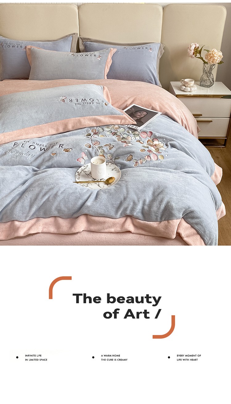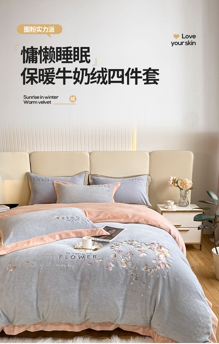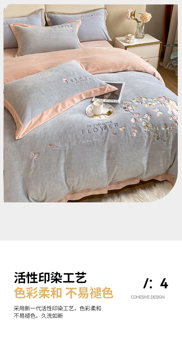 (总)七七家纺 2025新款刺绣款牛奶绒四件套-织梦系列,织梦-粉,织梦-豆沙,织梦-黄,织梦-水绿,织梦-天蓝,织梦-紫