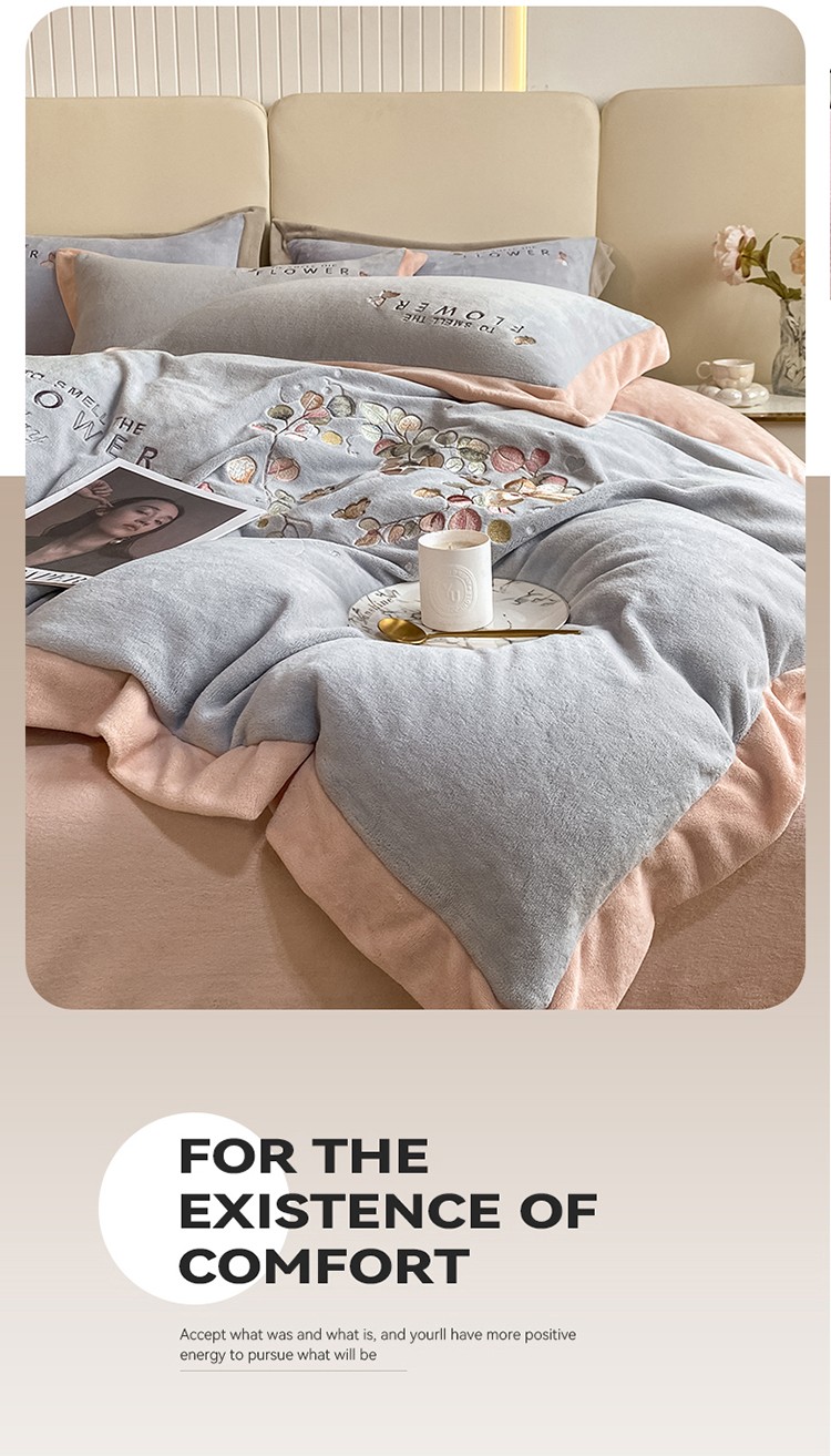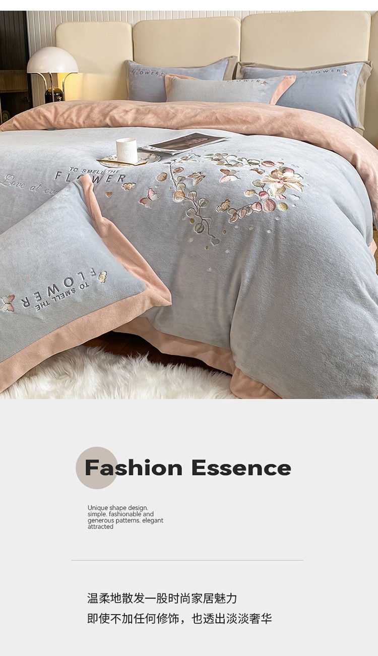 七七 2025绣花牛奶绒四件套尤加利系列 尤加利-银灰