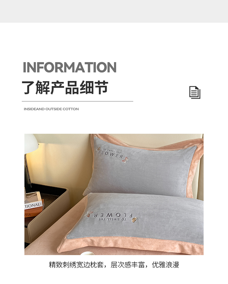 商品名称:七七 2025绣花牛奶绒四件套尤加利系列 尤加利-银灰