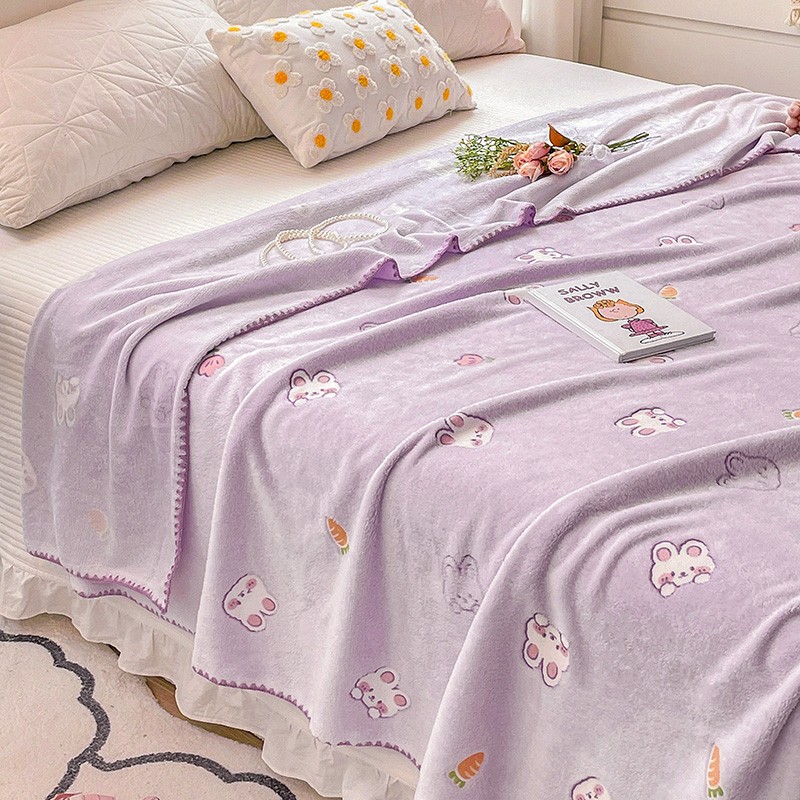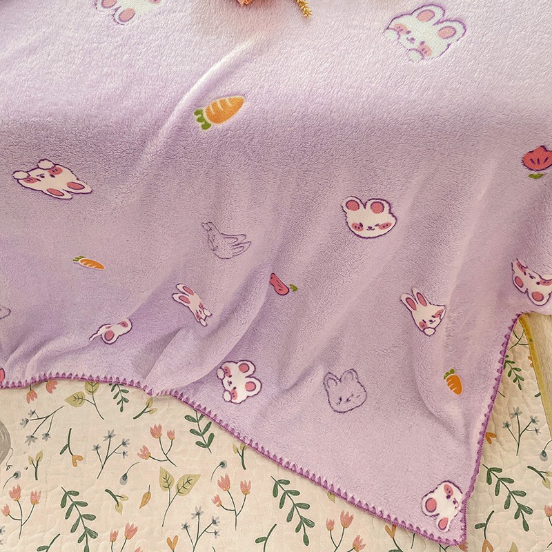 寐居 2022新款云朵绒卡通小毛毯盖毯 小白兔-紫