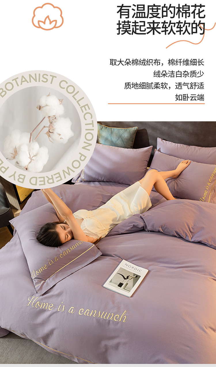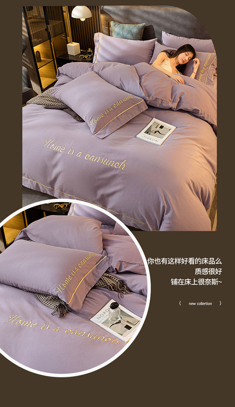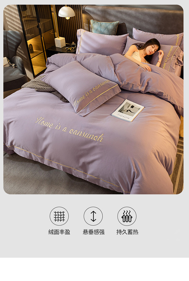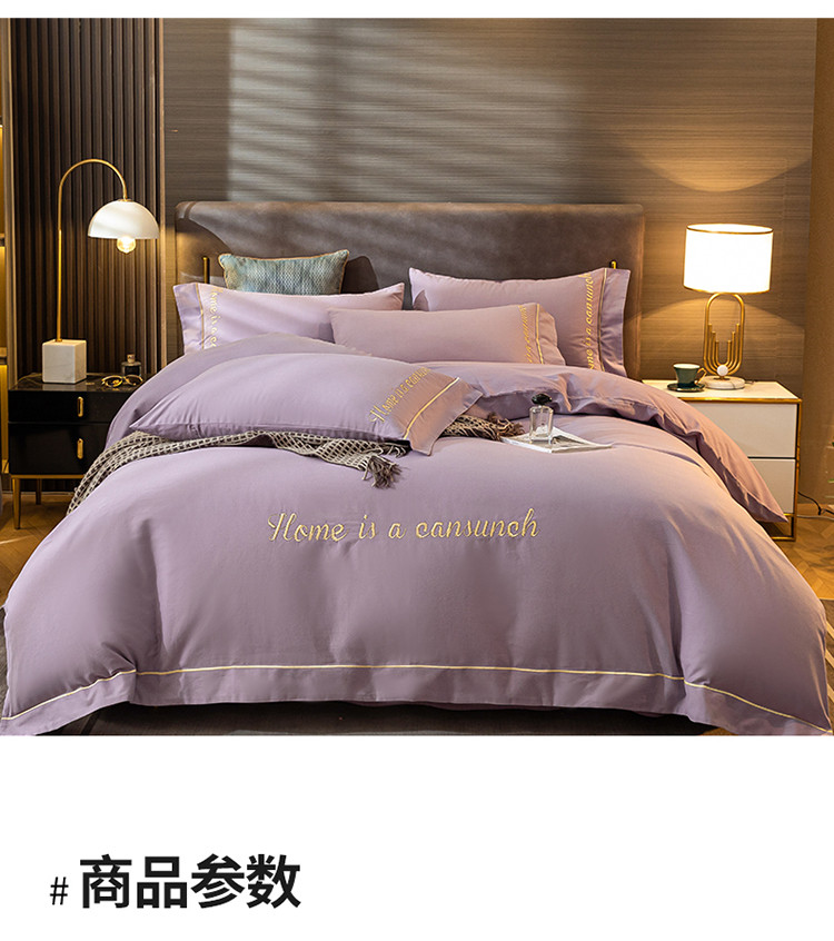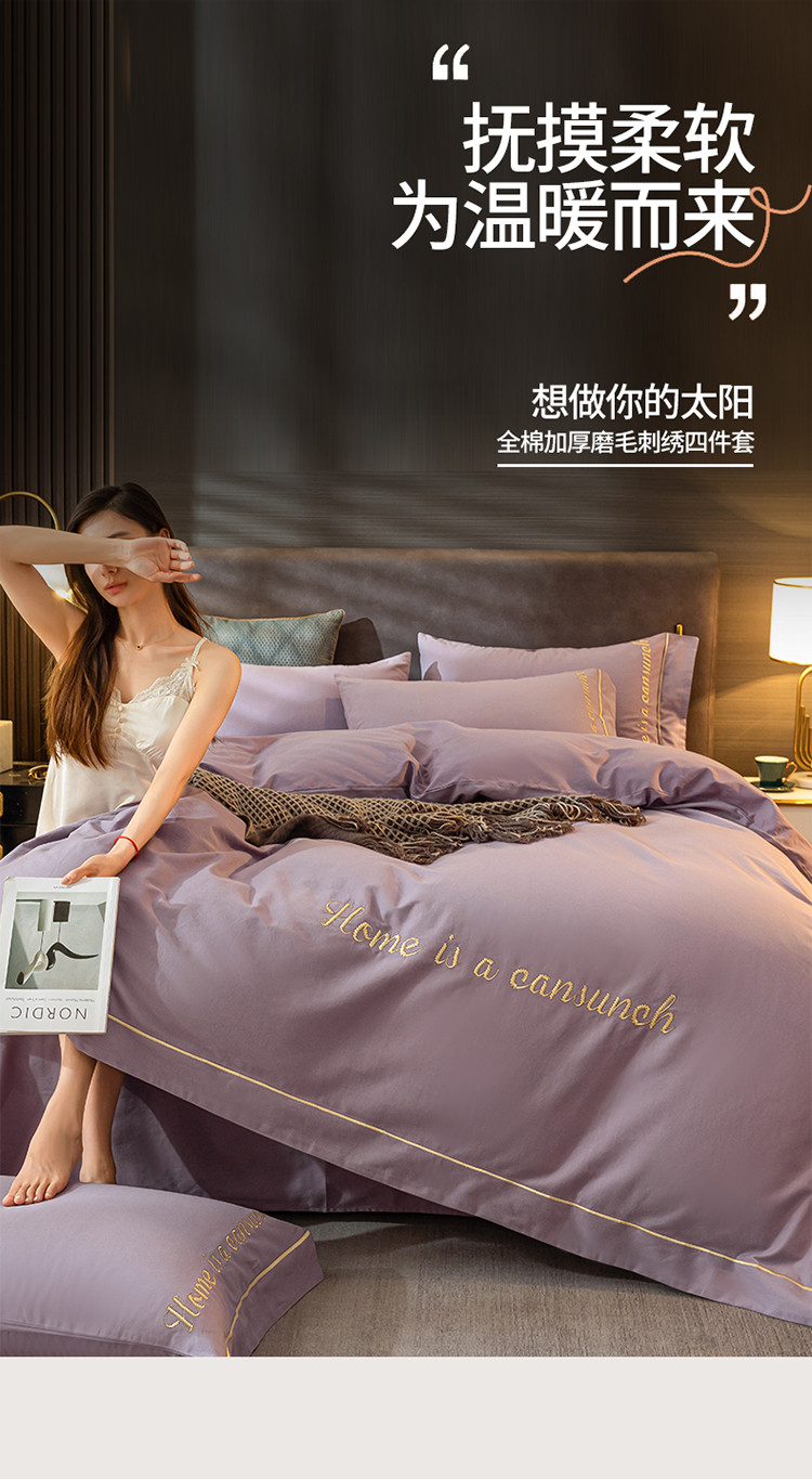 商品名称:蓝米卡夫 2024新款全棉加厚磨毛刺绣套件系列 丁香紫