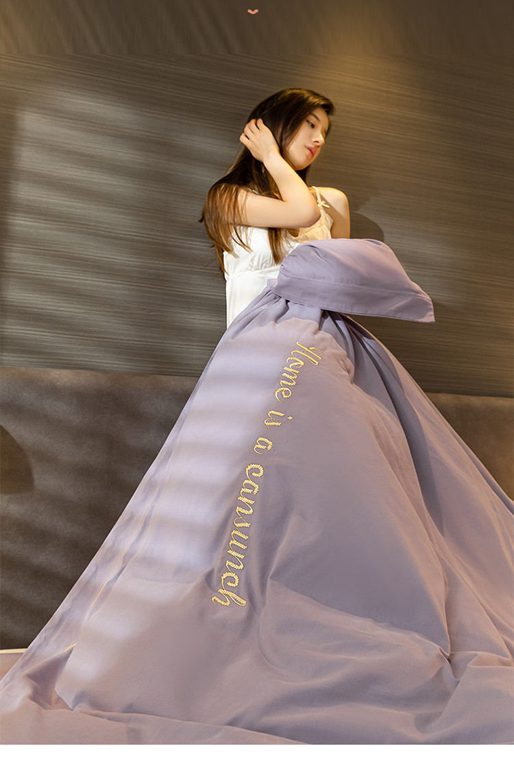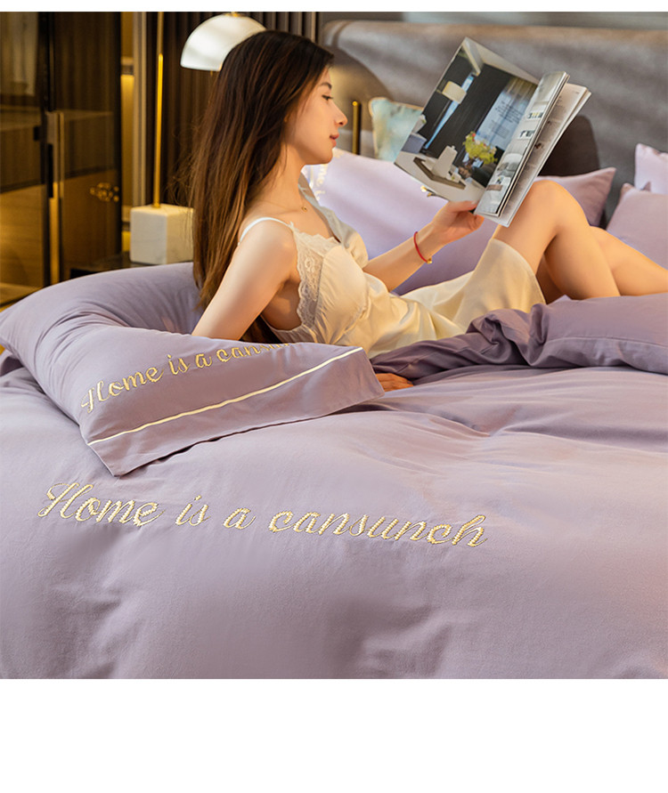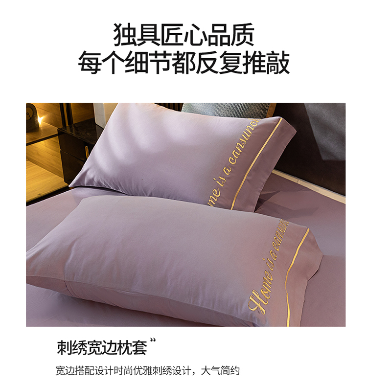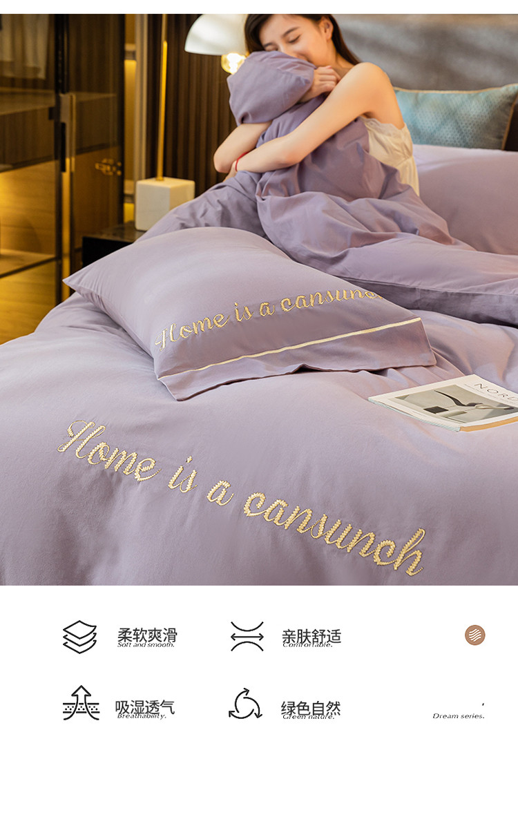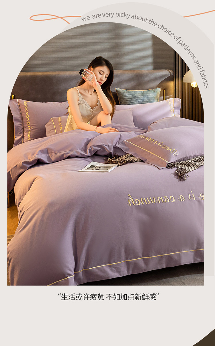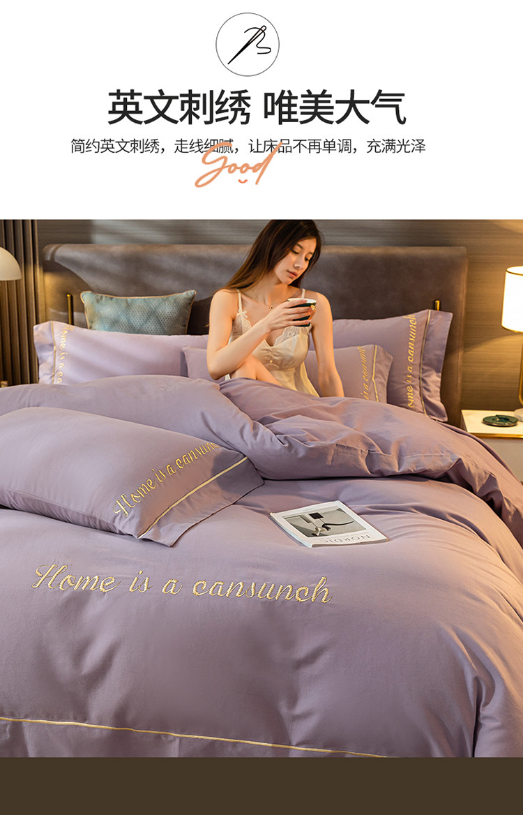 商品名称:蓝米卡夫 2024新款全棉加厚磨毛刺绣套件系列 丁香紫